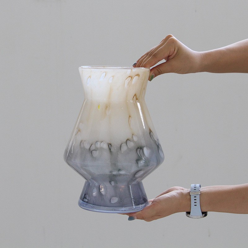 艺术法式奶油高脚手工玻璃花瓶中古风灯插花鲜花酒店样板房装饰瓶