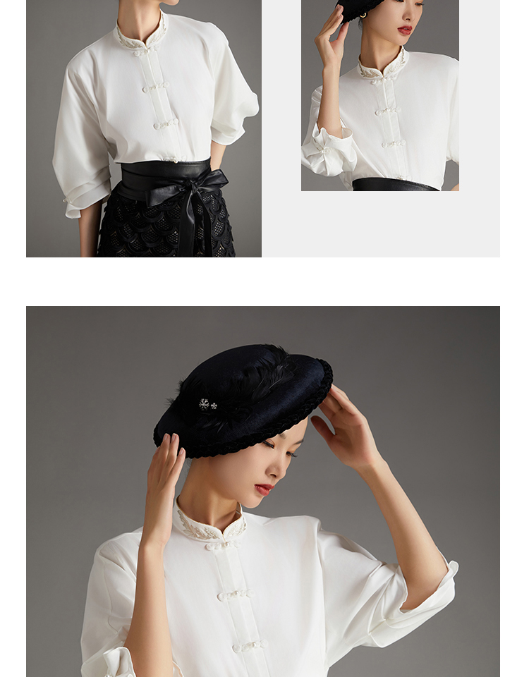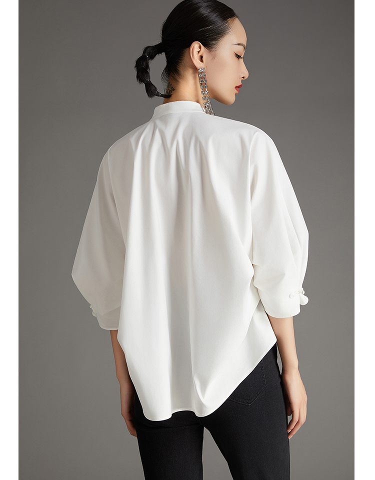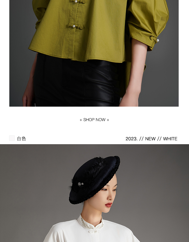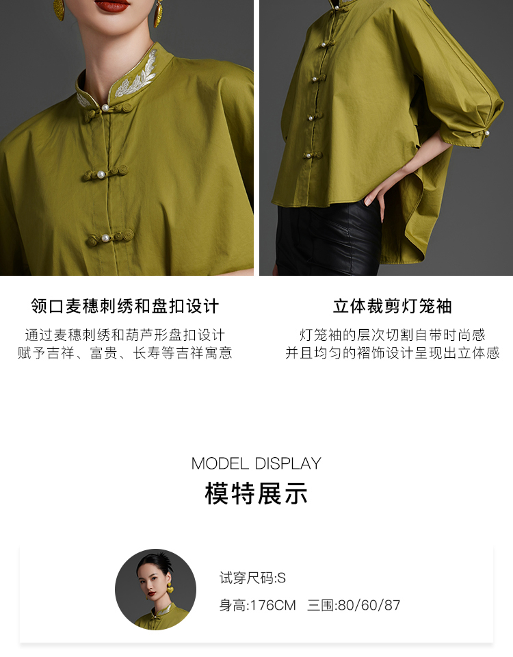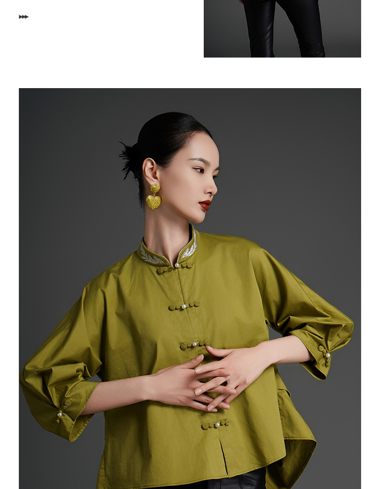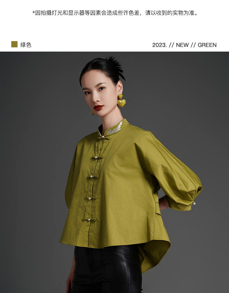 RSG2023甜美风新中式立领刺绣手工盘扣衬衫