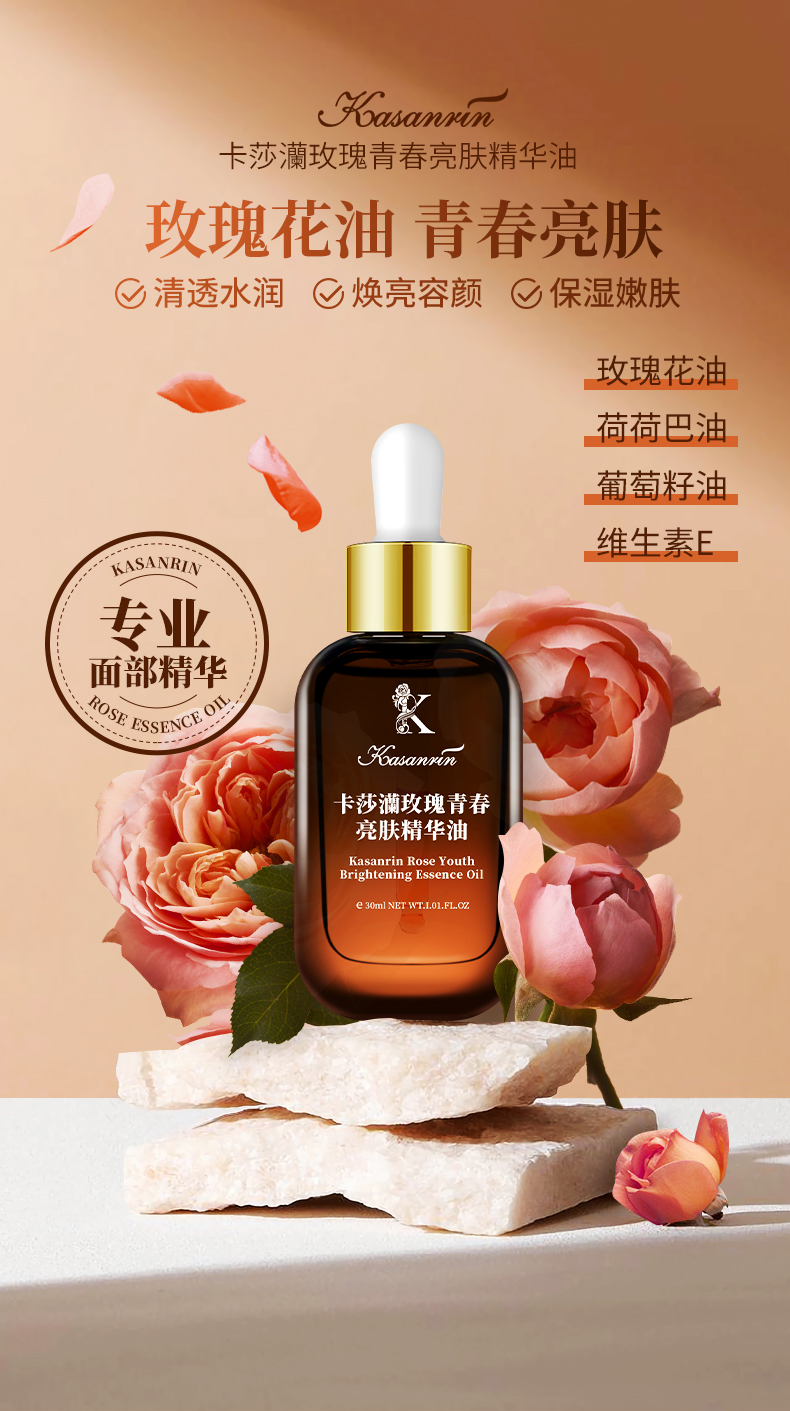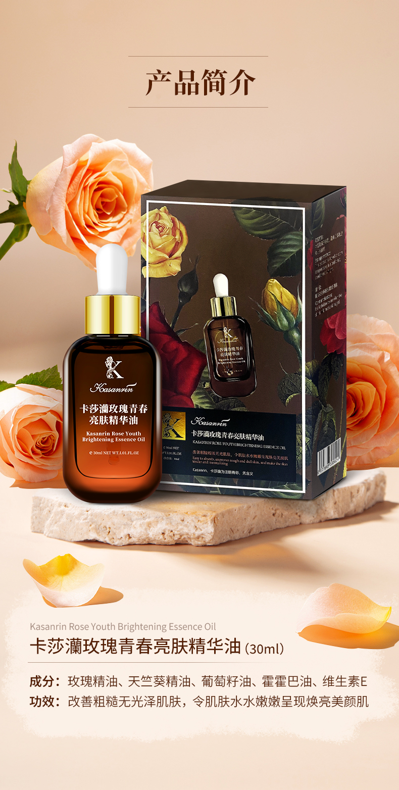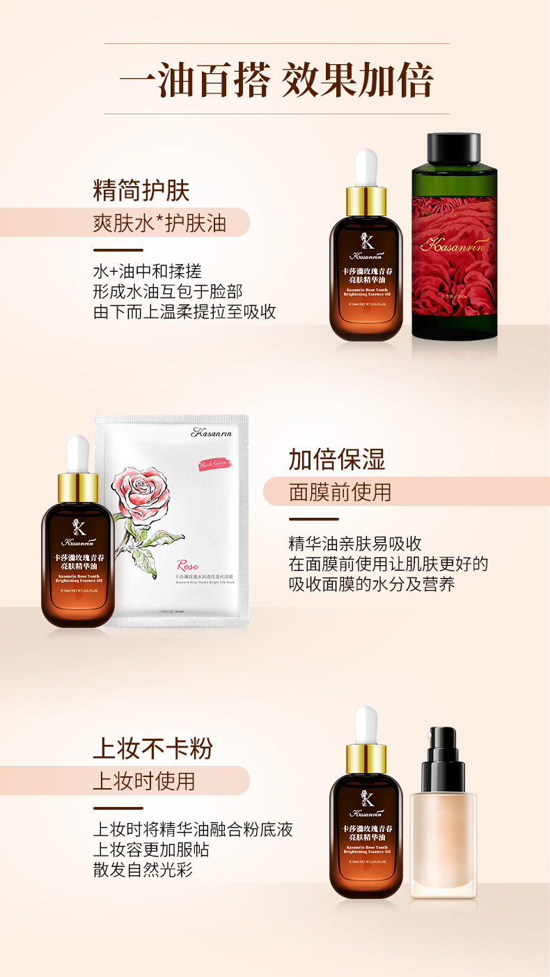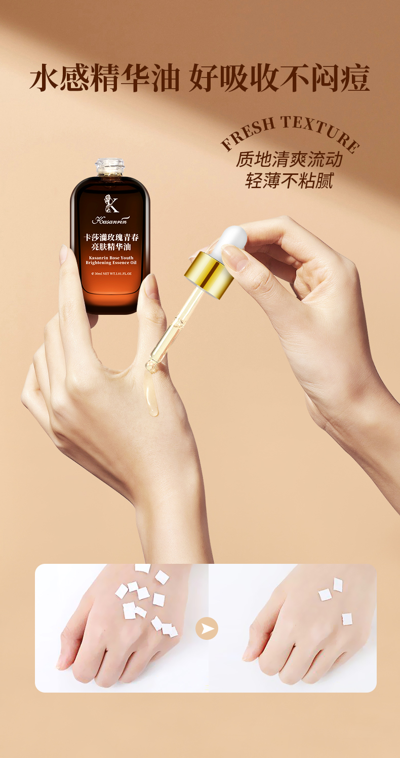 卡莎灡玫瑰青春亮肤精油,提亮肤色 补水嫩肤
