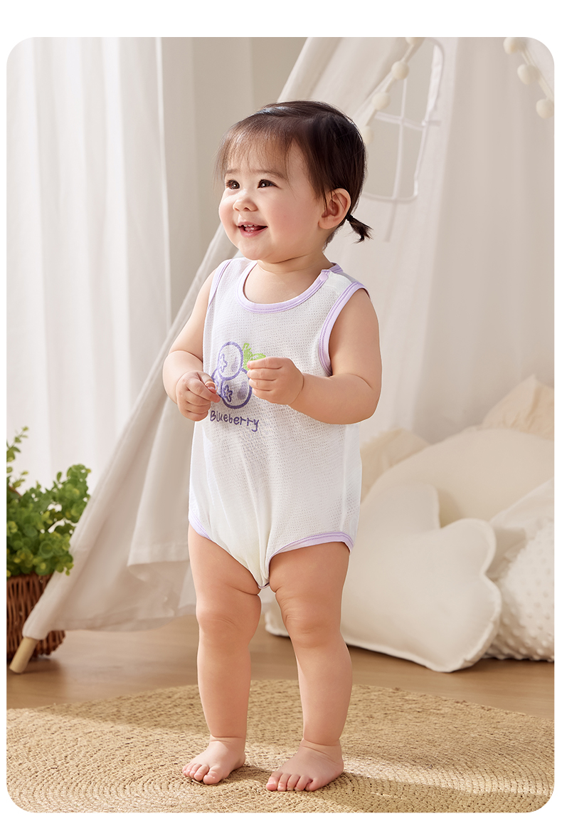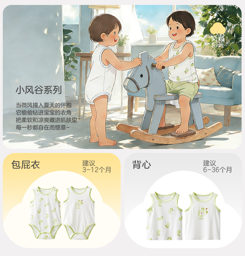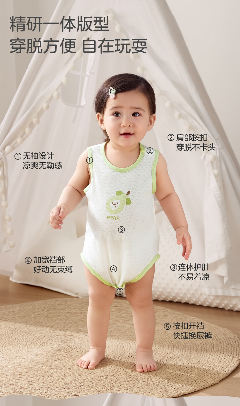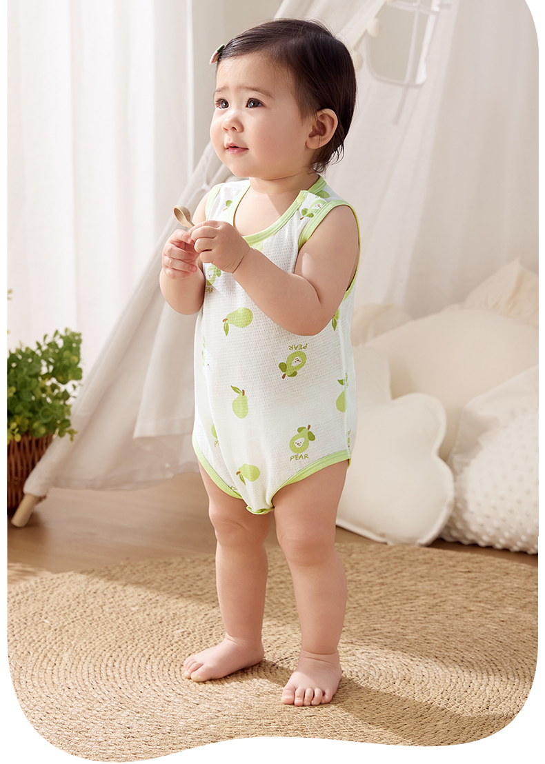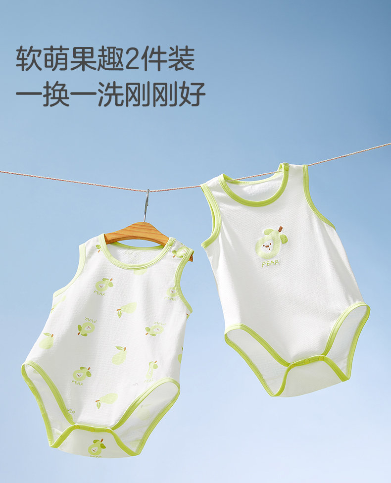粒粒阳光婴儿包屁衣纯棉夏宝宝无袖连体衣三角哈衣2件装
