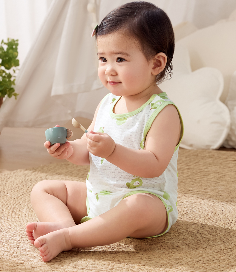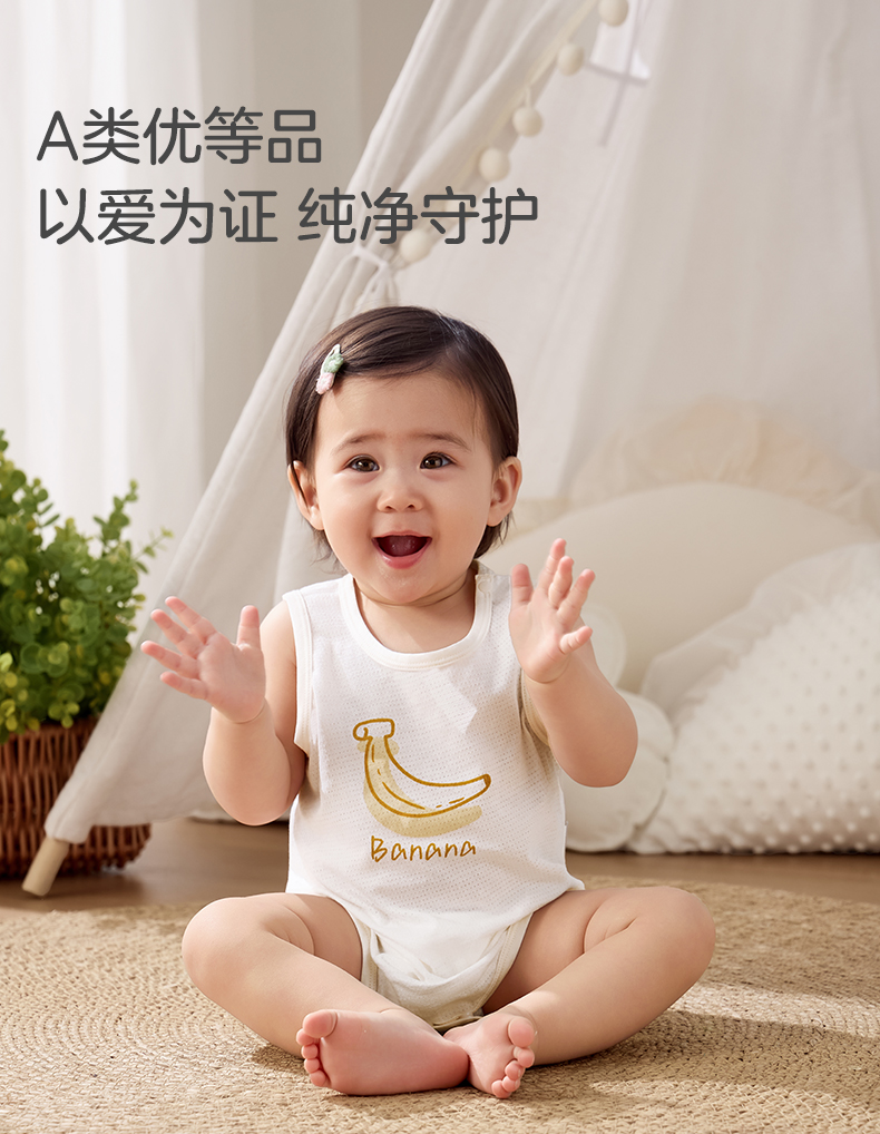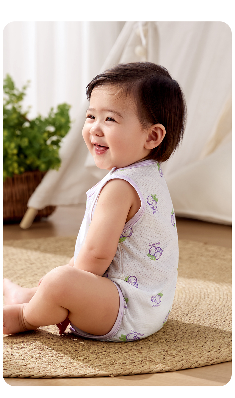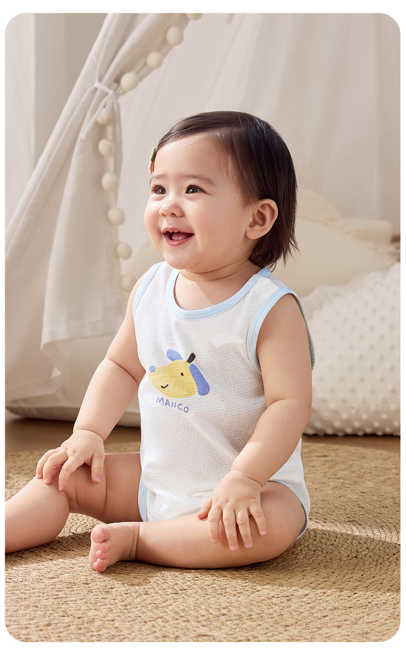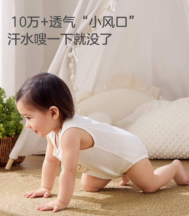 粒粒阳光婴儿包屁衣纯棉夏宝宝无袖连体衣三角哈衣2件装