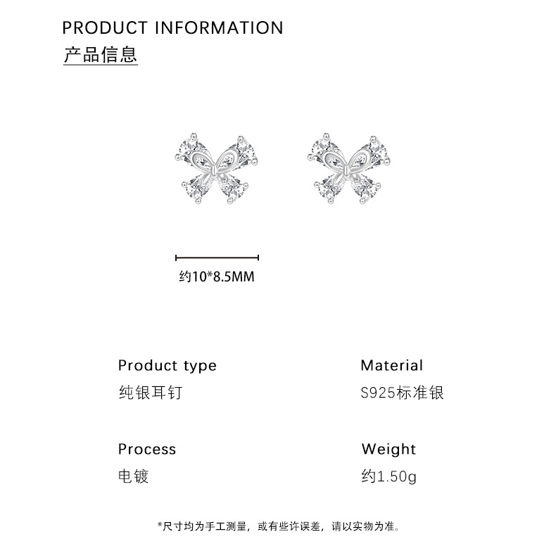 【蝴蝶越境】S925纯银镶锆石蝴蝶耳钉【YXS-E5723】 商品图4