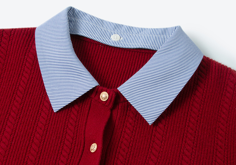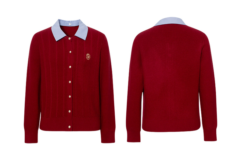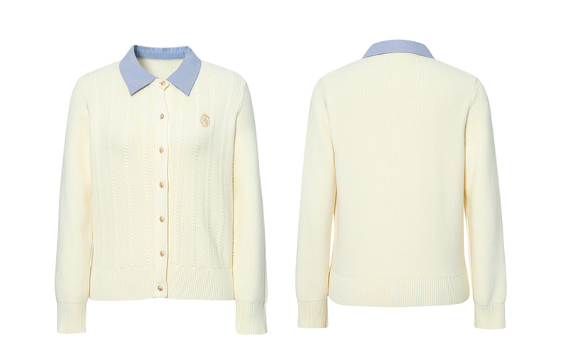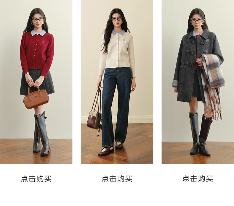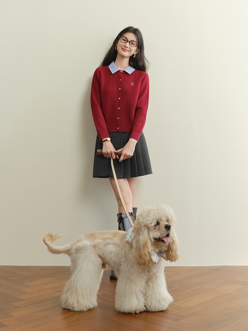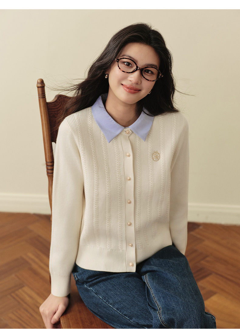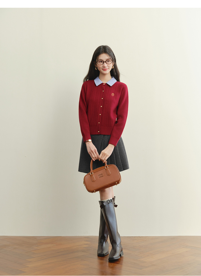 【严选】诗凡黎可脱卸领金扣麻花针织开衫2025冬新款学院风刺绣针梭拼毛衣7GC133411