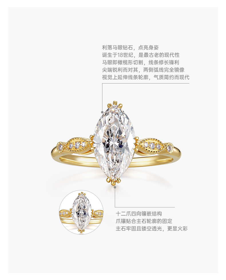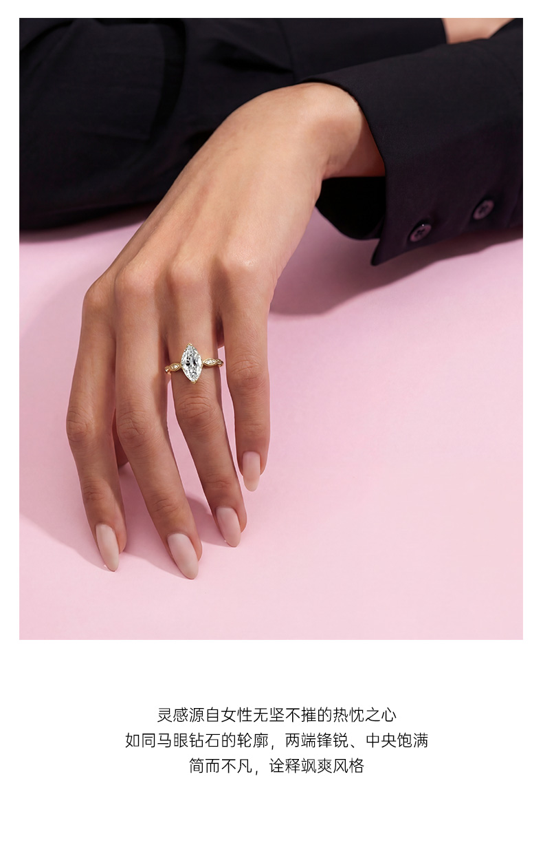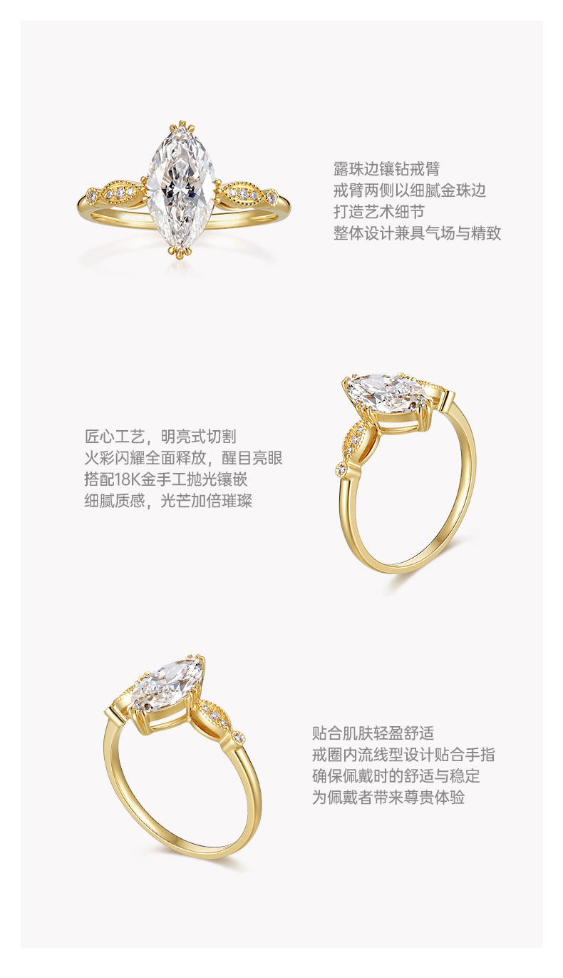 ShiningHouse[培育] 18k金钻石戒指 橄榄形1.5克拉钻人工真钻人造钻石K金戒指时尚钻石戒指悦己送礼臻选【此商品不支持7天无理由退货退款】预计3日发货