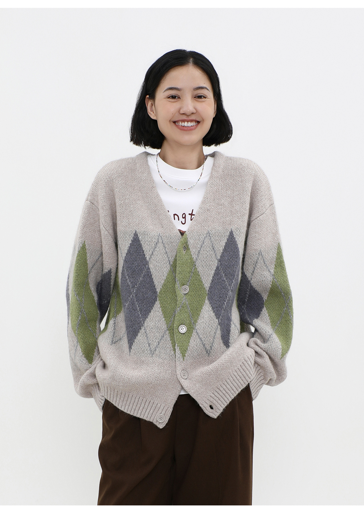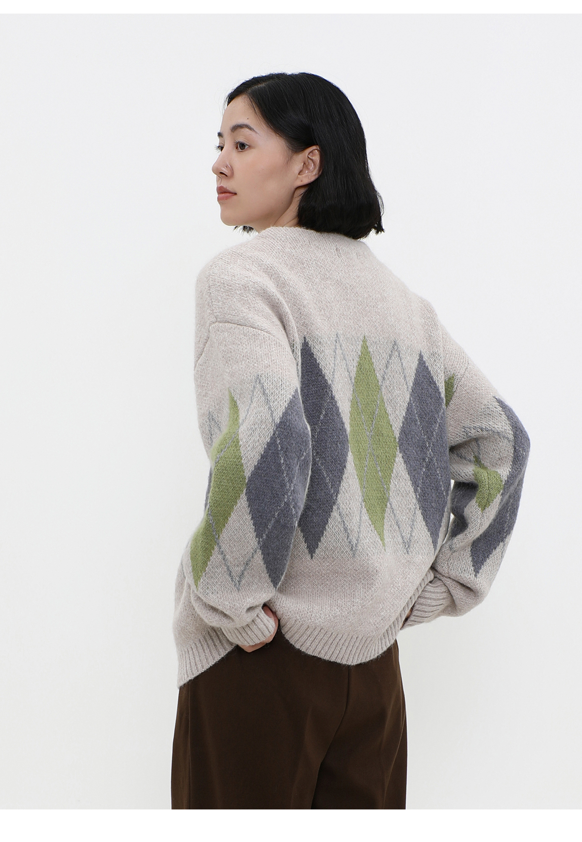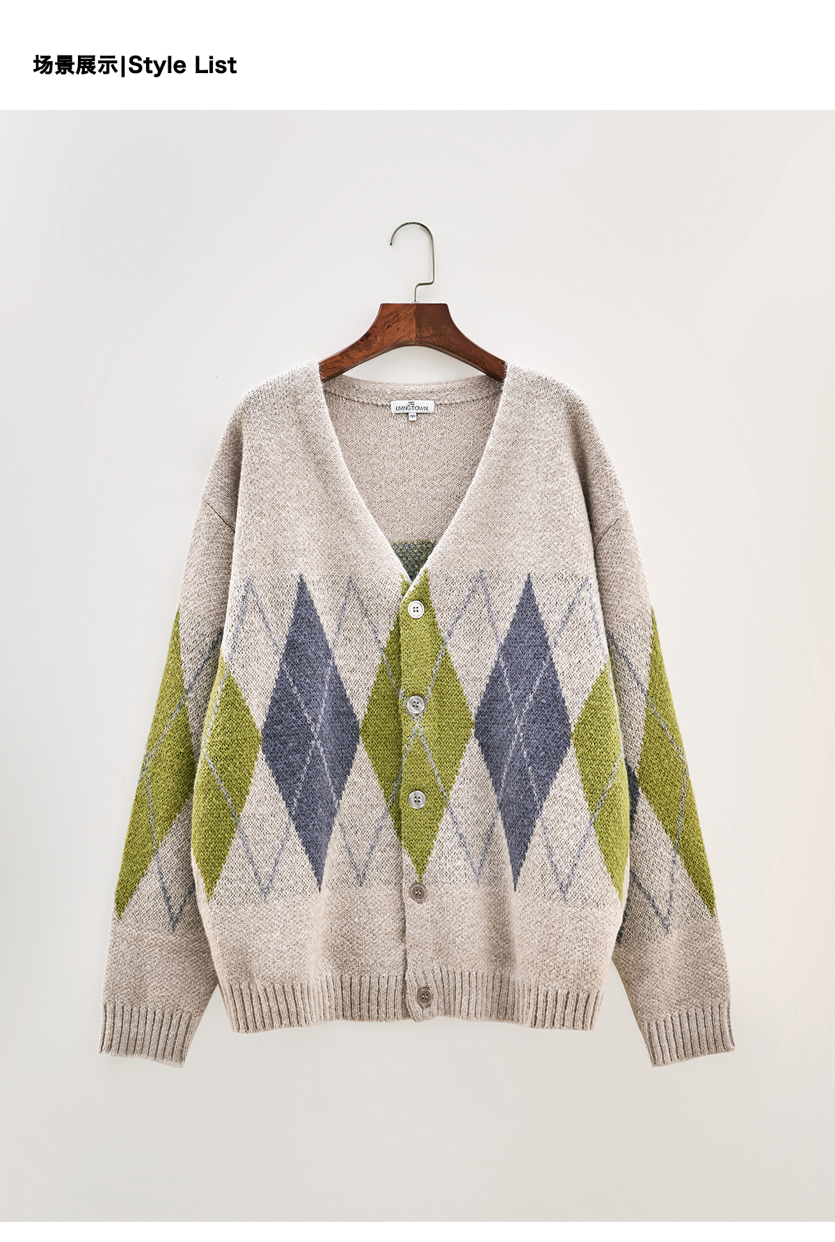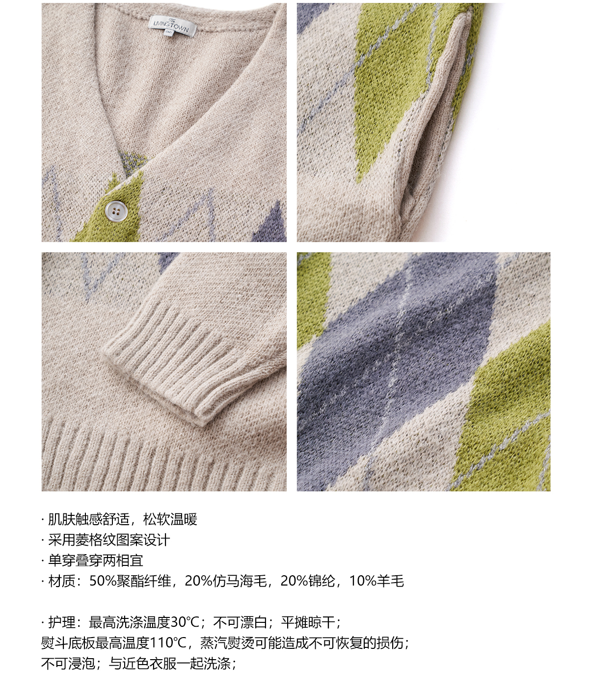 LIVINGTOWN/LT菱形格毛衣开衫