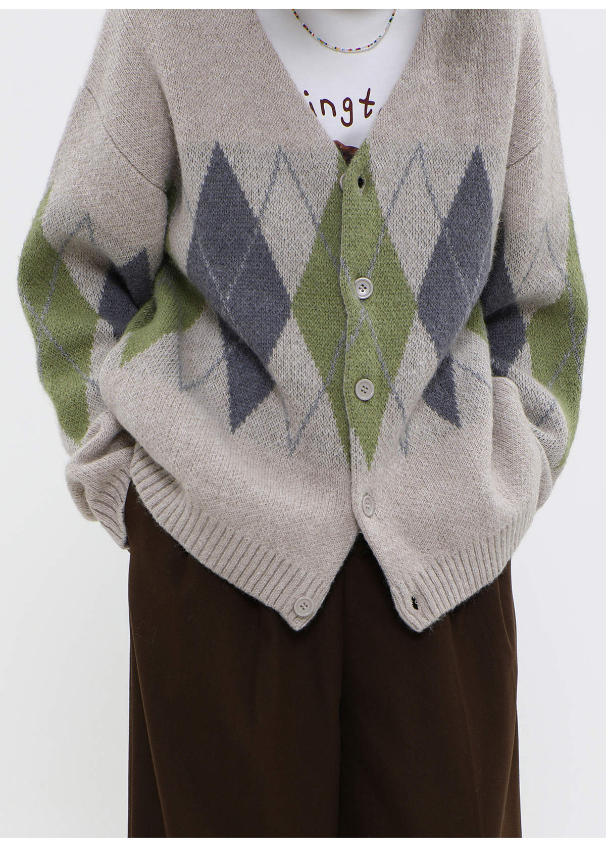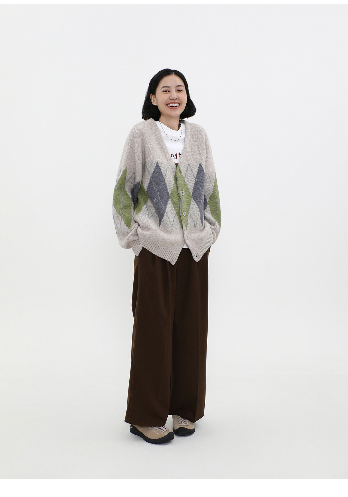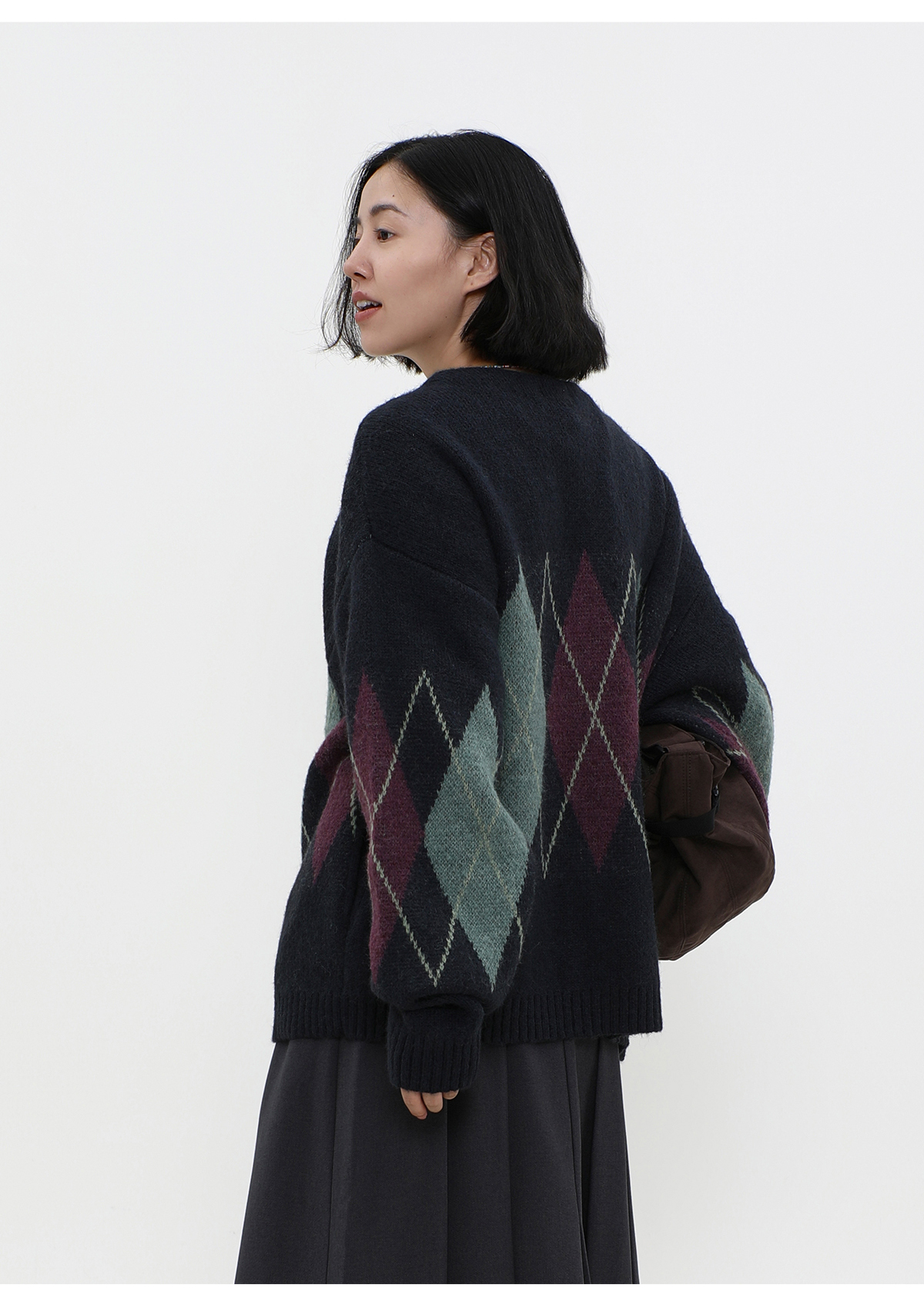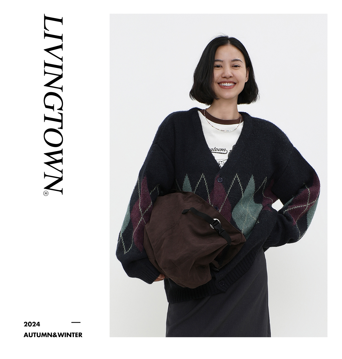LIVINGTOWN/LT菱形格毛衣开衫