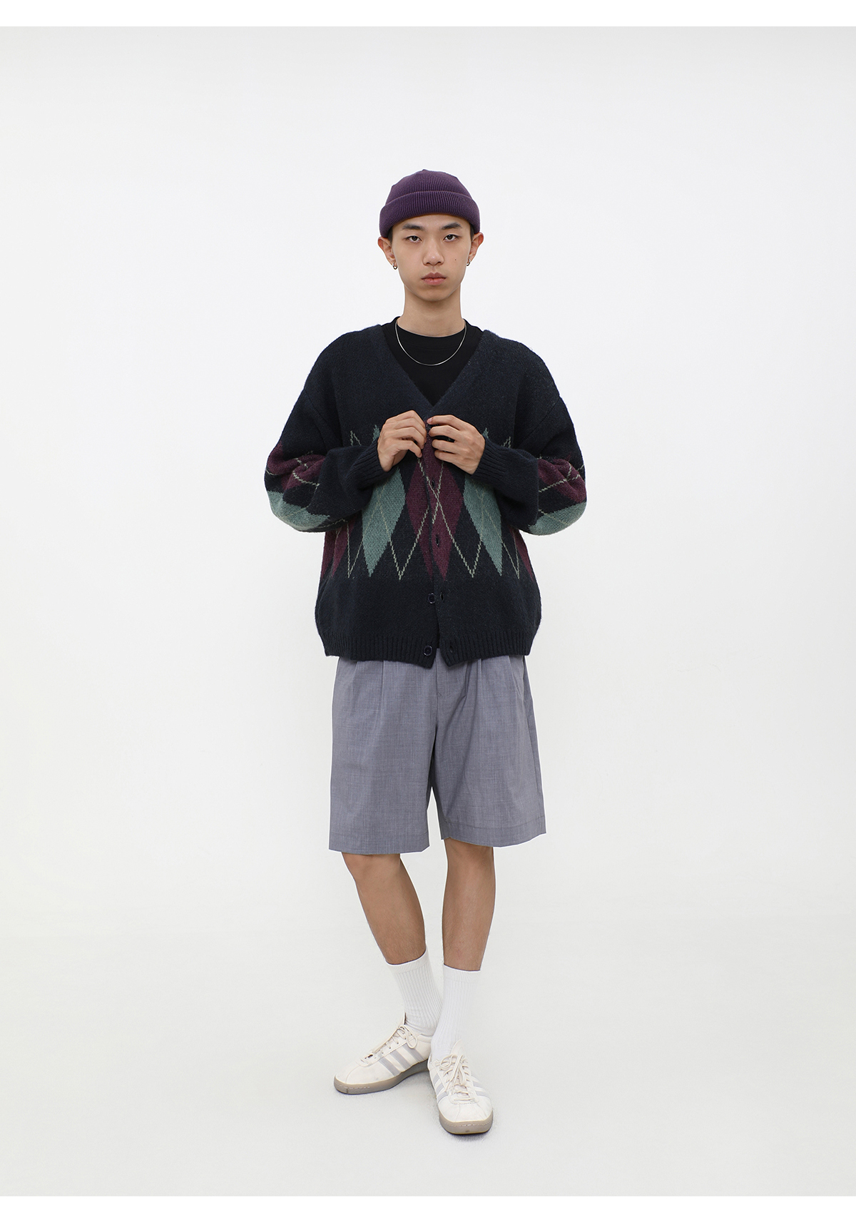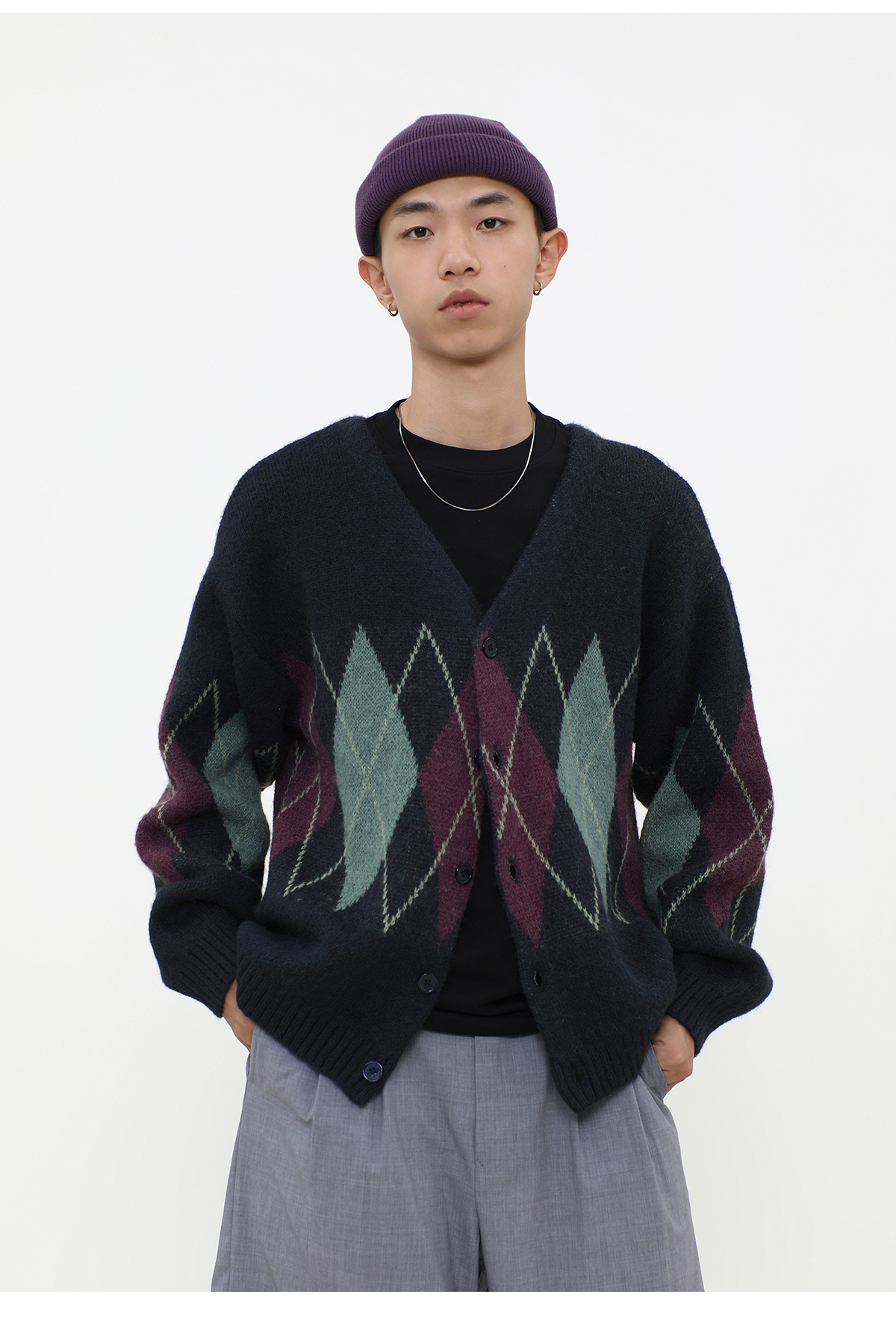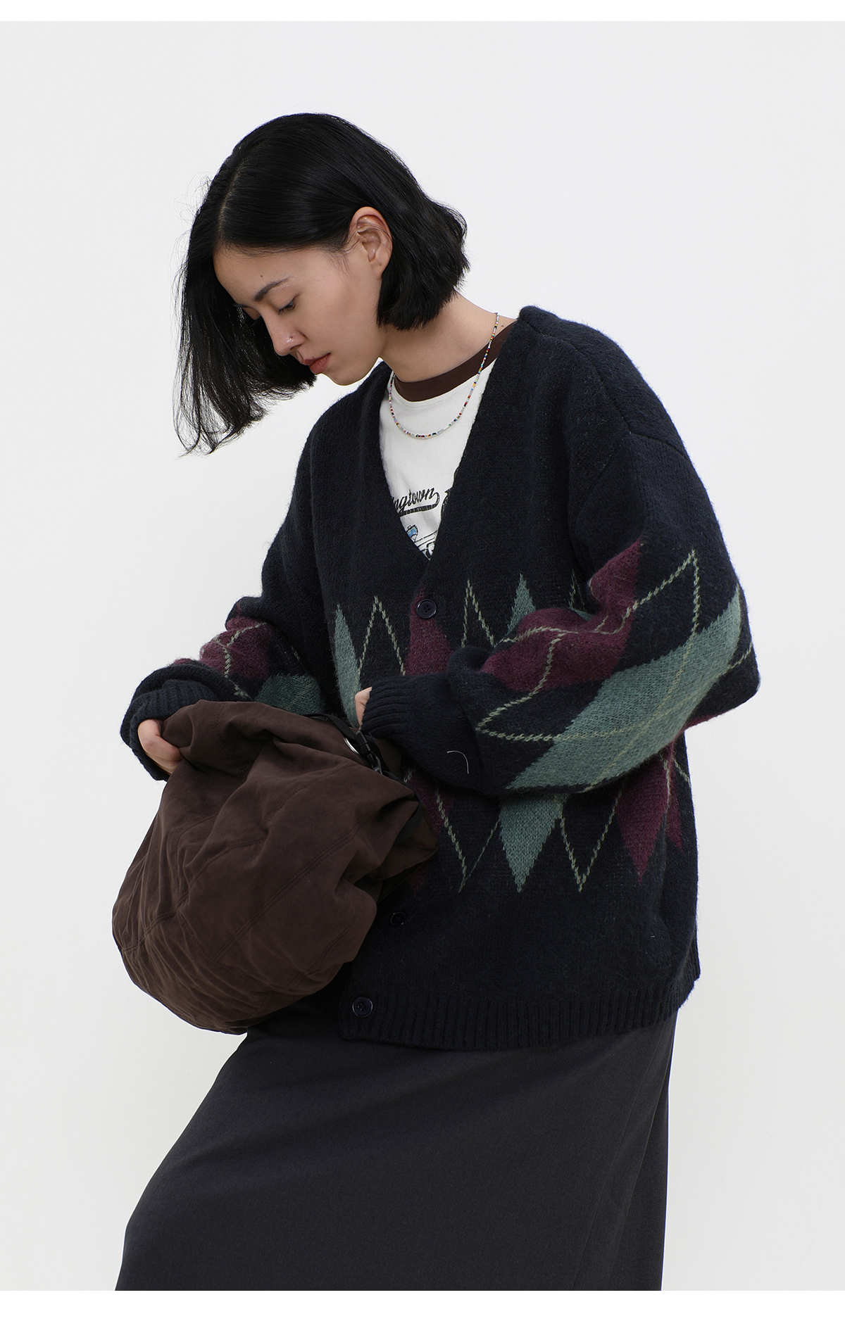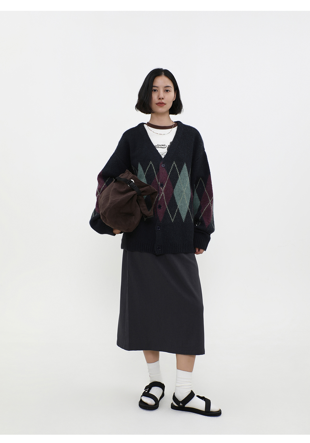 LIVINGTOWN/LT菱形格毛衣开衫
