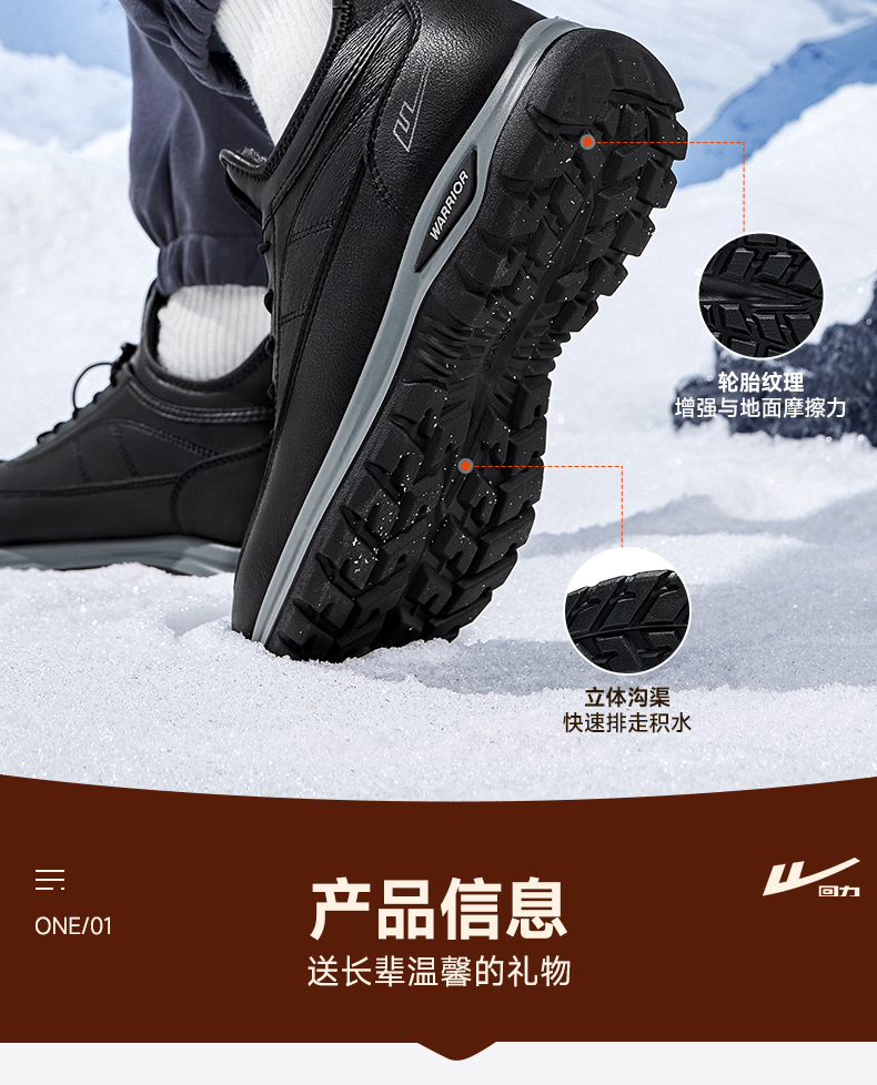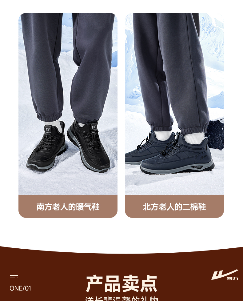 回力棉鞋男冬季老人鞋加绒防水爸爸鞋轻便保暖运动鞋中老年雪地靴