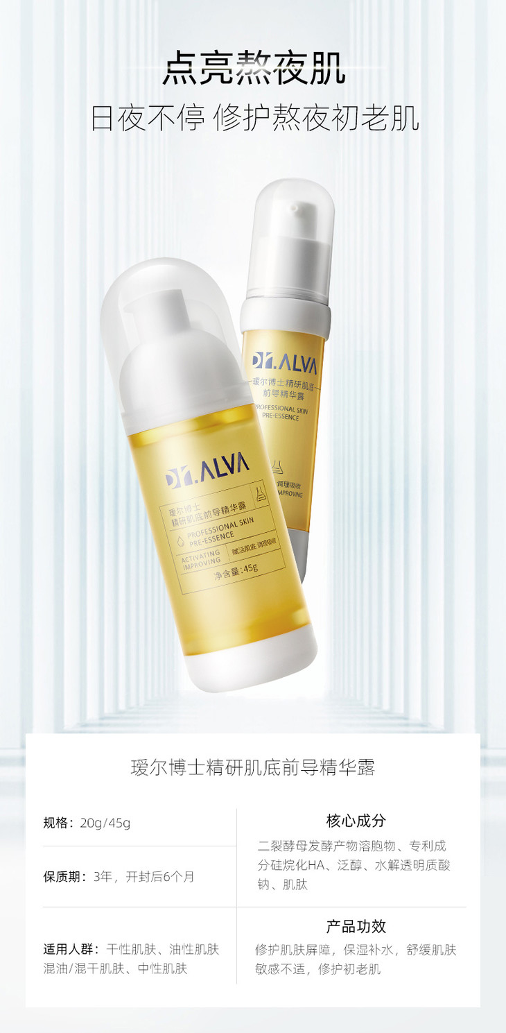 【福瑞达】Dr.Alva瑷尔博士玻尿酸前导精华液补水保湿收缩毛孔原液3%二裂酵母熬夜修护必备小黄管