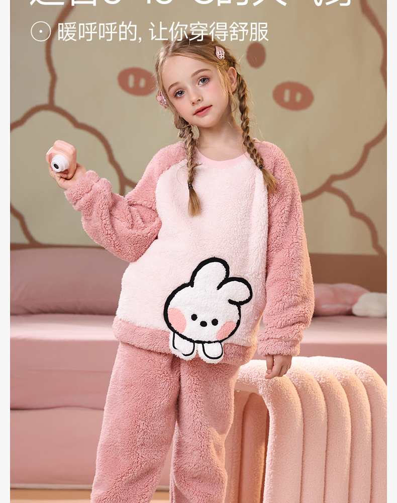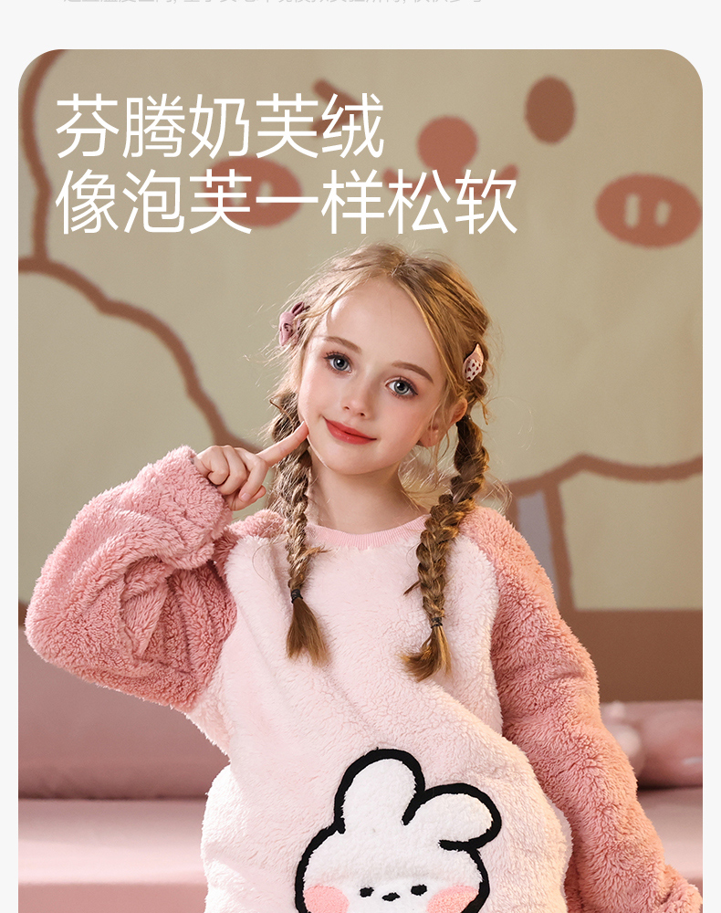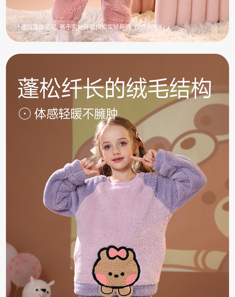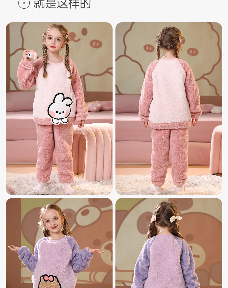 【品牌优选】芬腾布朗熊儿童睡衣珊瑚绒女童加绒加厚套装女孩宝宝中大童家居服