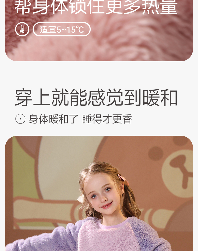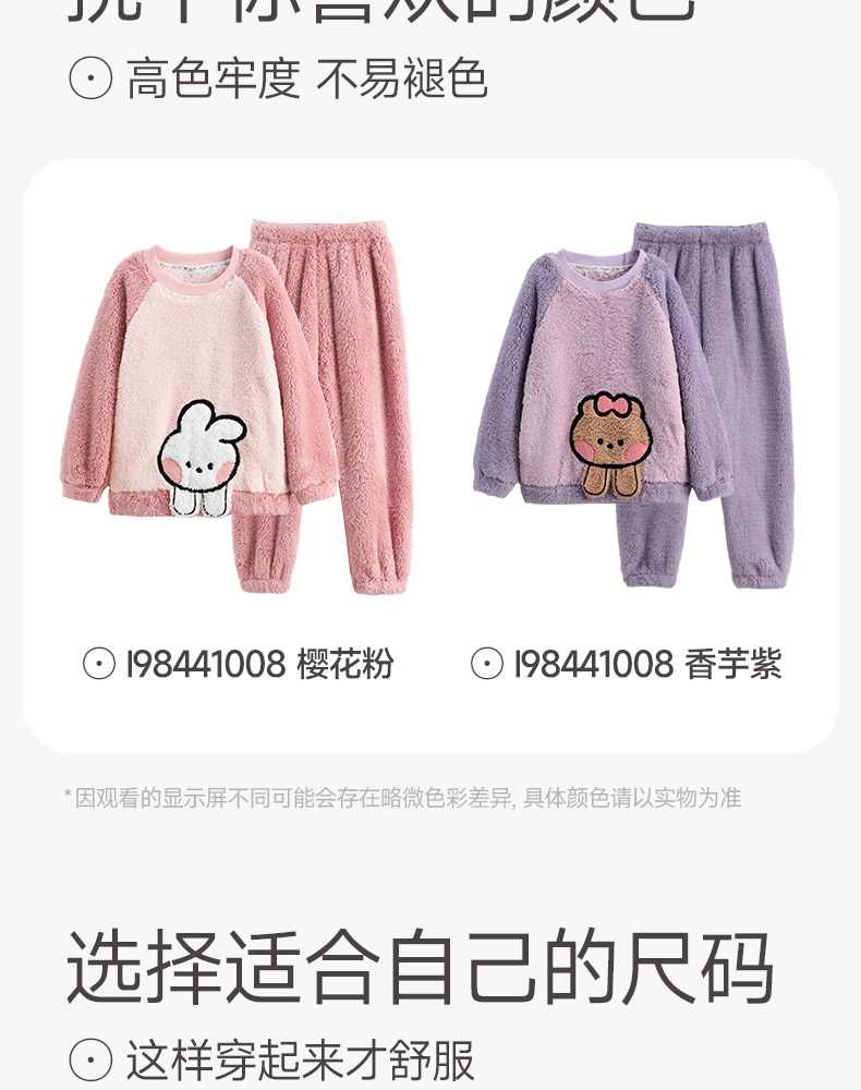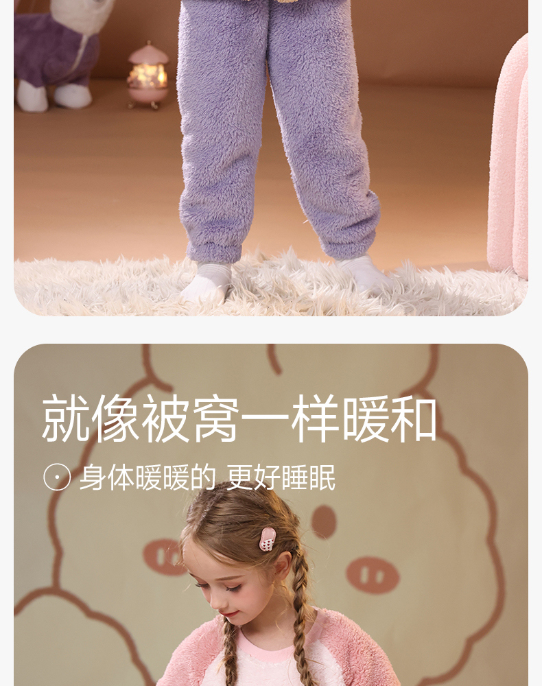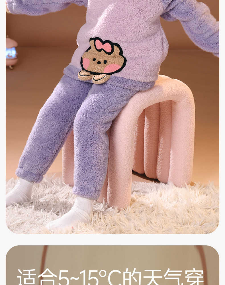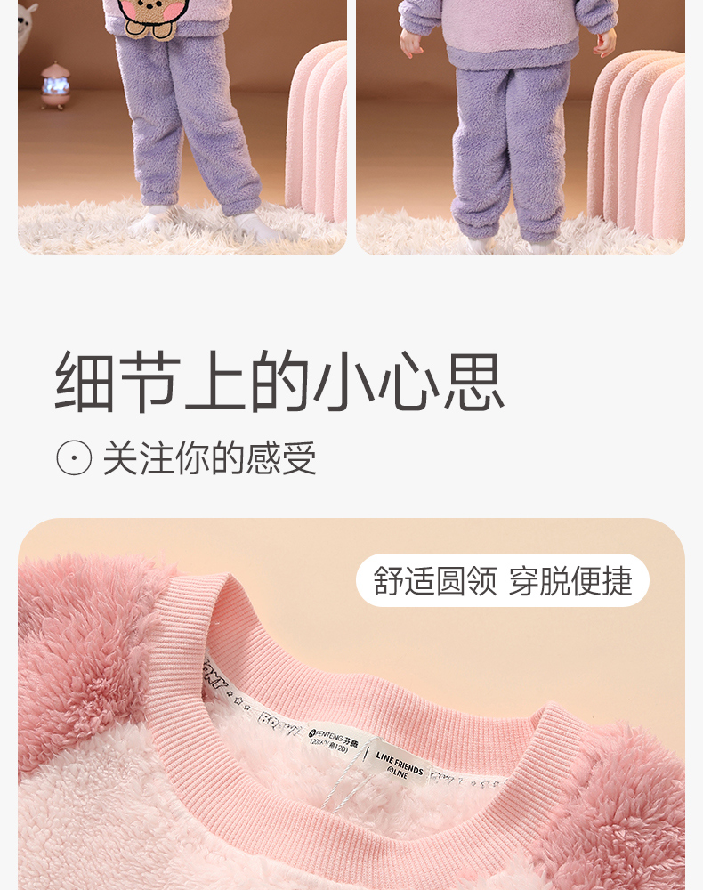 【品牌优选】芬腾布朗熊儿童睡衣珊瑚绒女童加绒加厚套装女孩宝宝中大童家居服