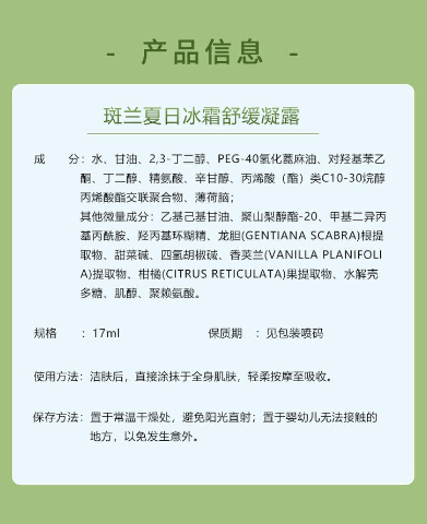 海南兴科·斑兰夏日冰爽舒缓凝露17ml/支/45元