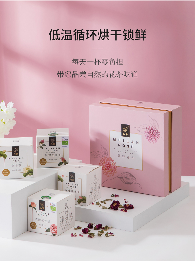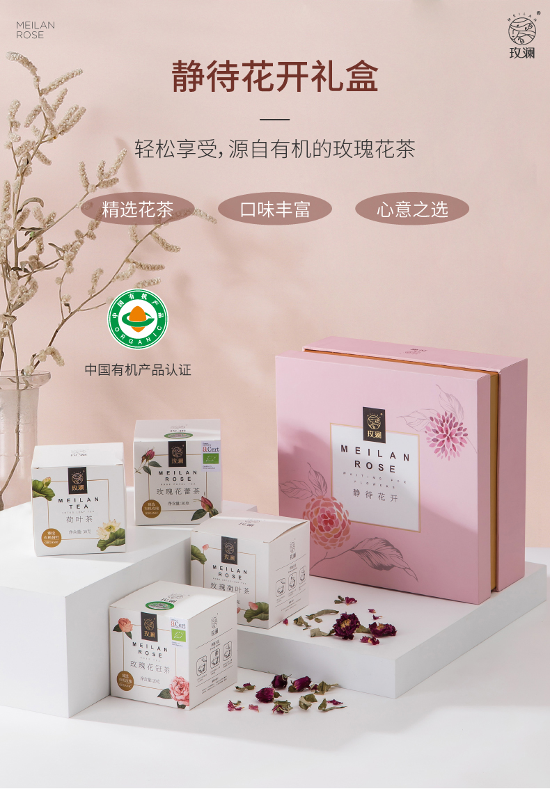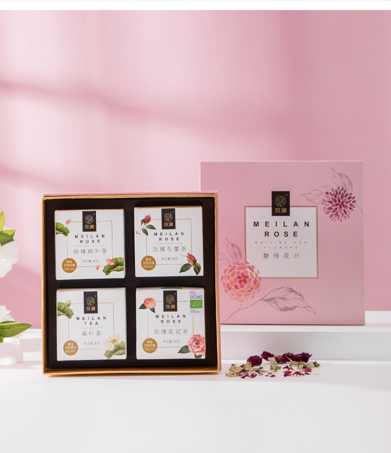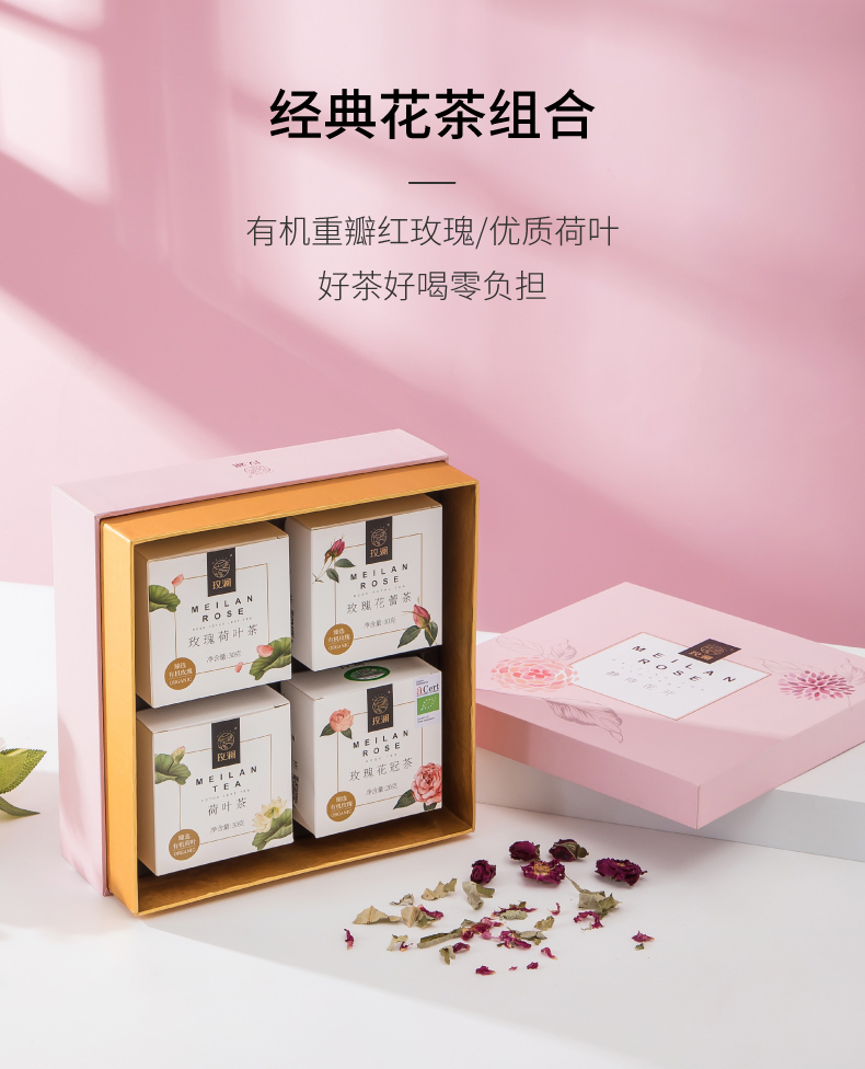 玫澜静待花开礼盒(玫瑰花冠茶20克 +玫瑰花蕾茶30克 +玫瑰荷叶茶30克 + 荷叶茶30克)
