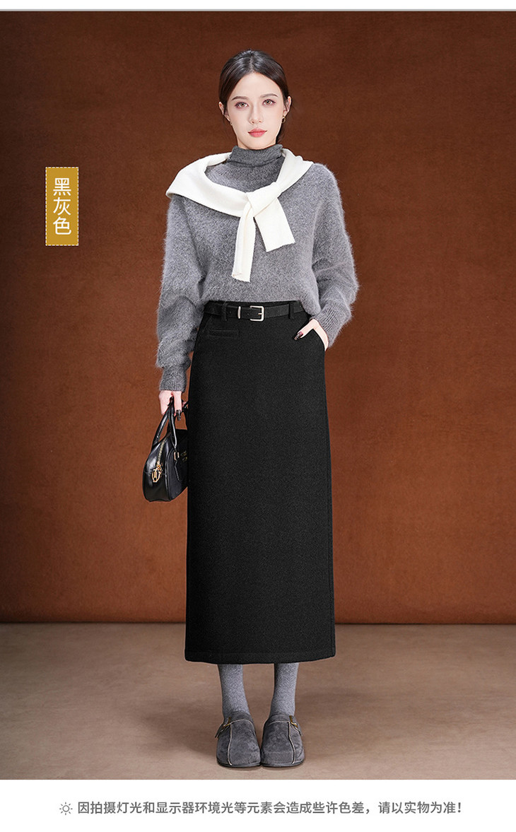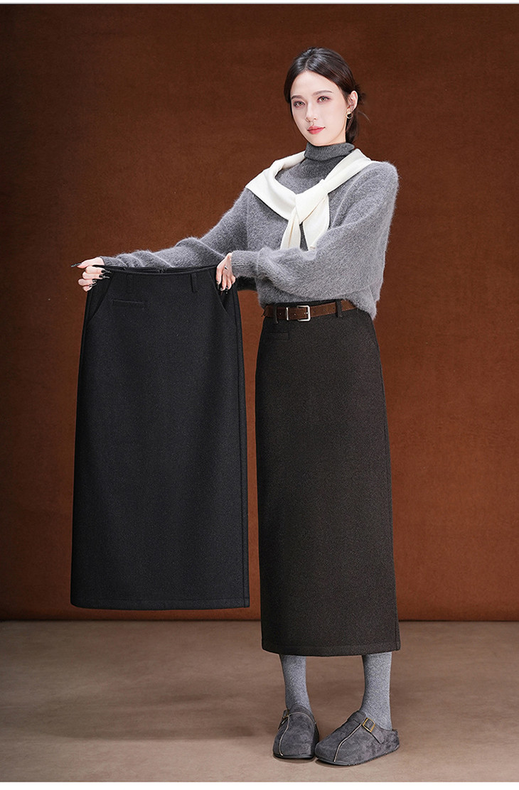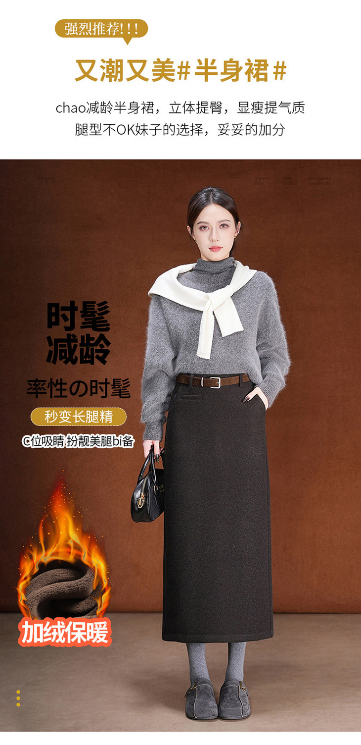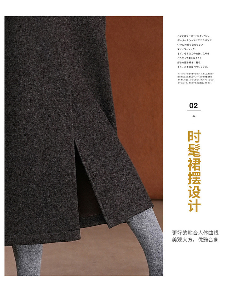 毛呢加绒直筒裙,中长款高腰开叉包臀一步裙MYX-KDFY-01259-L
