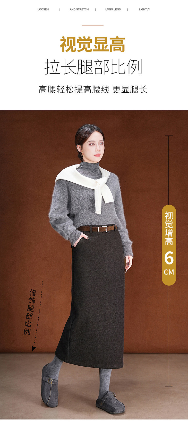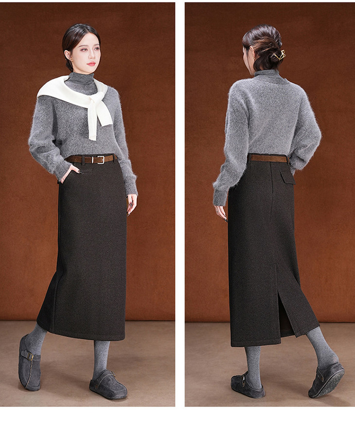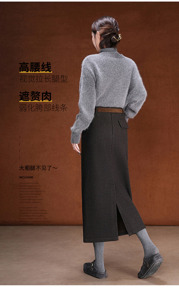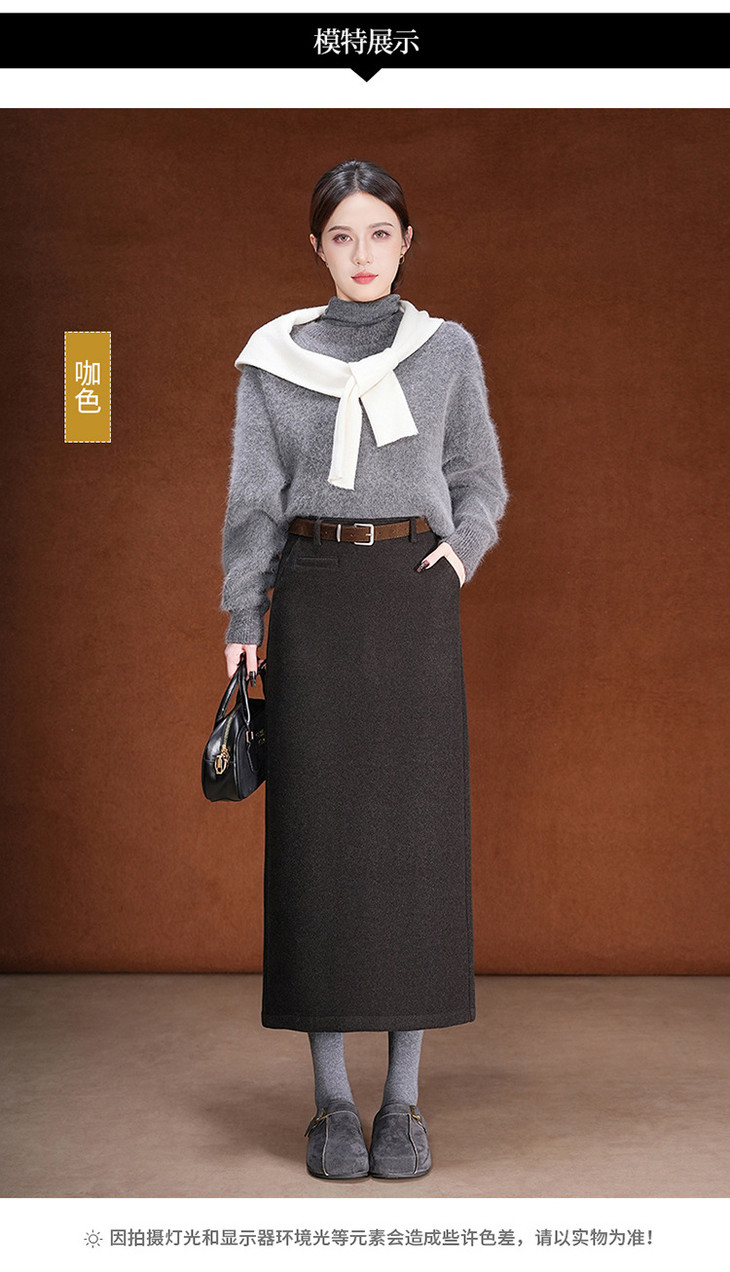 毛呢加绒直筒裙,中长款高腰开叉包臀一步裙MYX-KDFY-01259-L