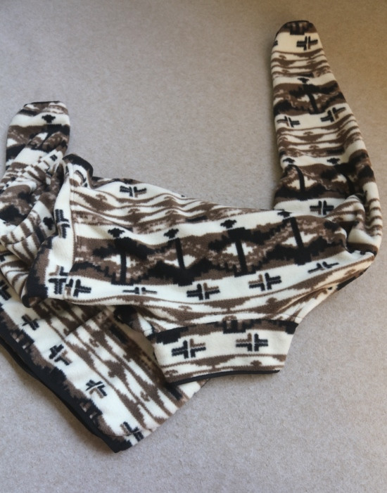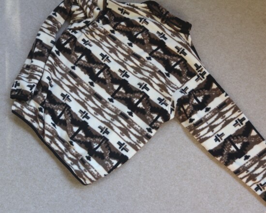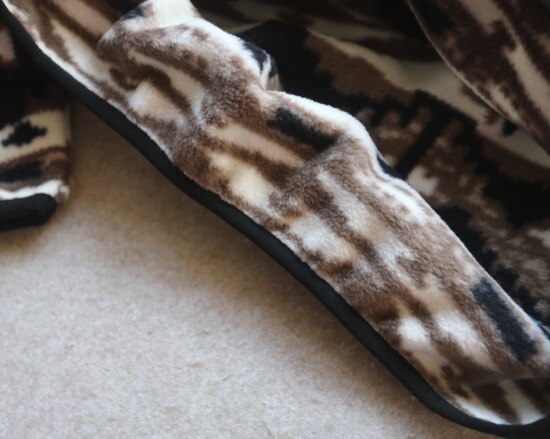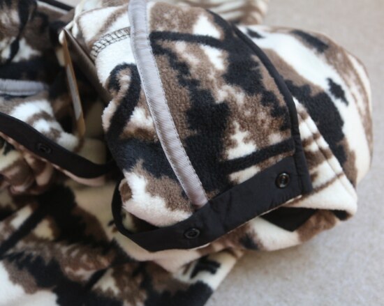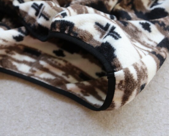 面料是聚酯纤维 双面绒的 有小厚度 不是精薄的那种