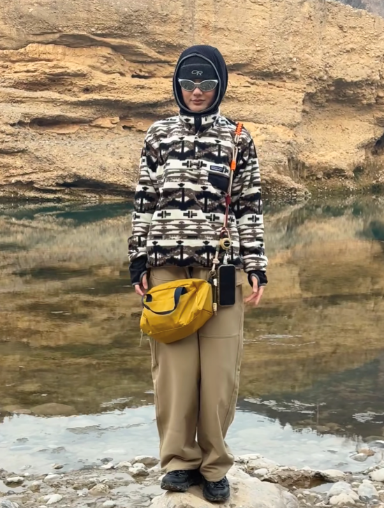L码 明显小廓感 袖长过手 衣长的弹力边 刚好能把屁屁兜进去 但容易往上窜