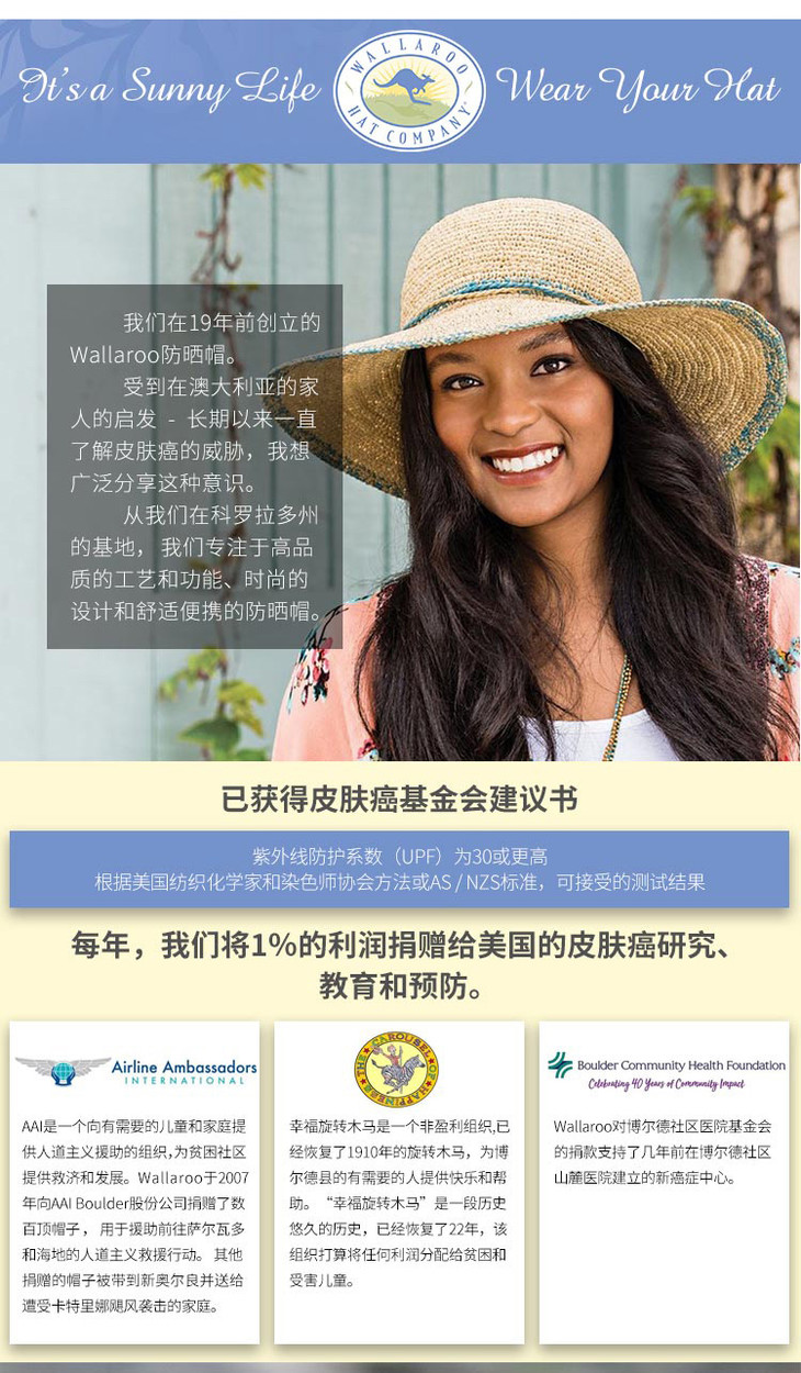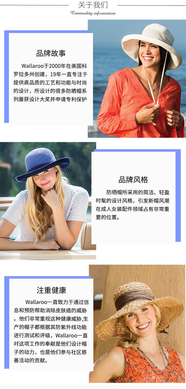 wallaroo女士美国户外遮阳超轻太阳帽度假休闲防晒帽多款UPF50
