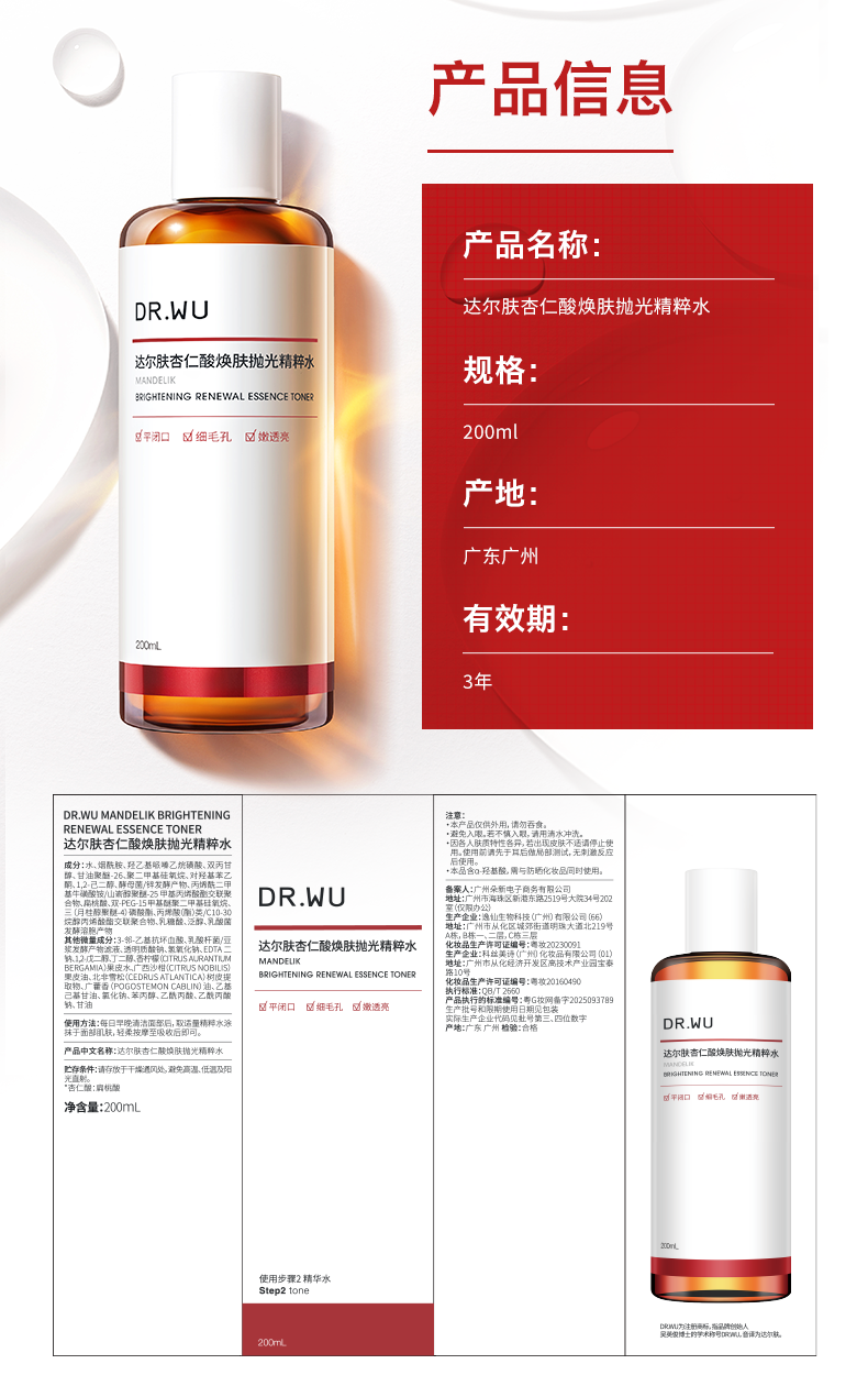 [一瓶三用 抛光水] DR.WU达尔肤杏仁酸抛光水爽肤水湿敷保湿补水喷雾平闭口细毛孔去黑头暗沉提亮