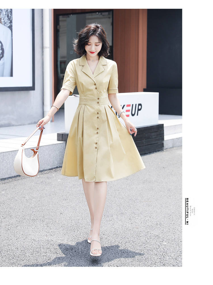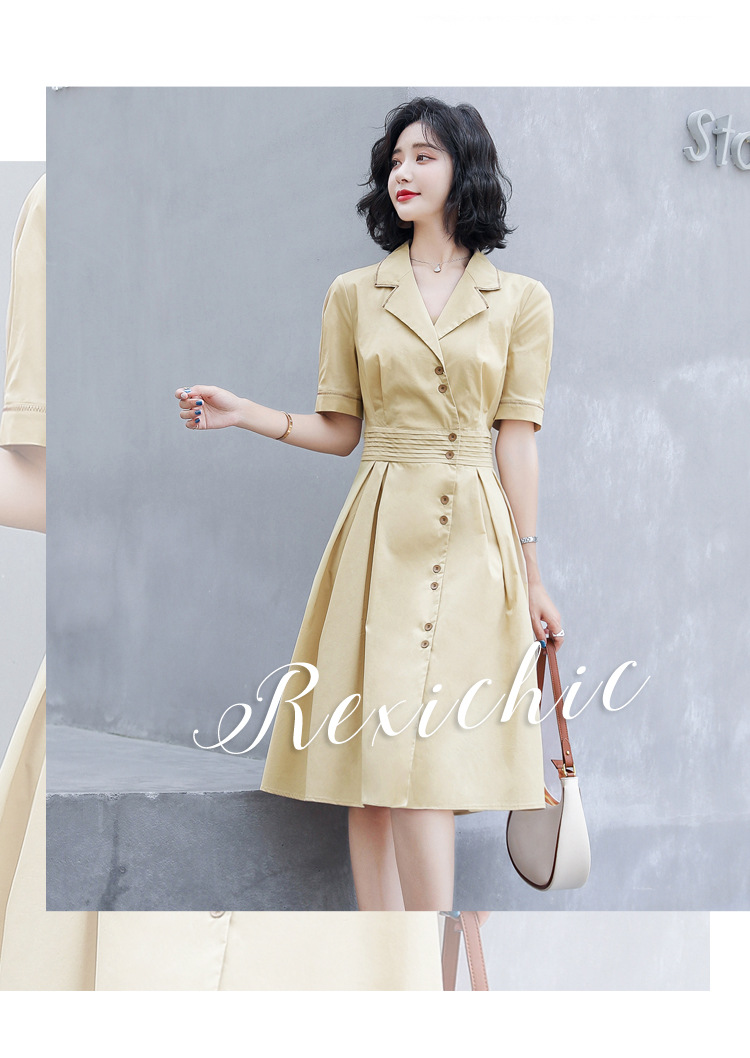 气质优雅,夏收腰显瘦气质西装领连衣裙HR-WS13699