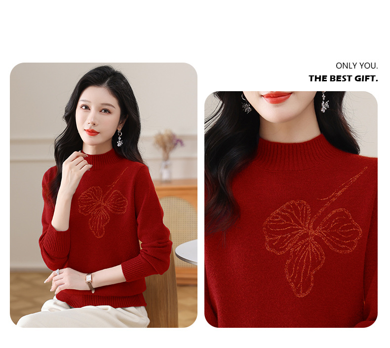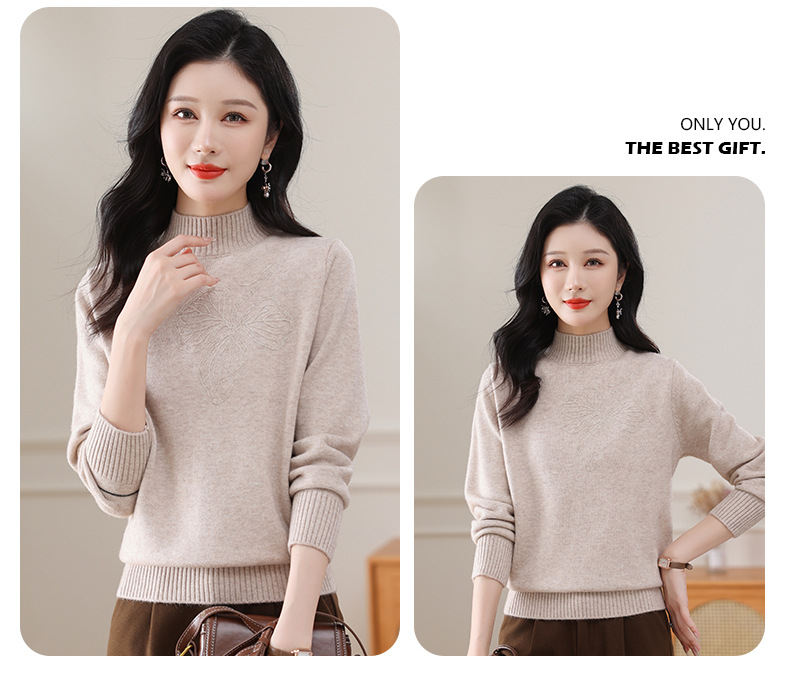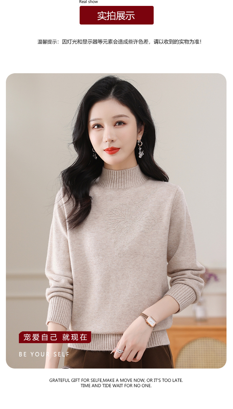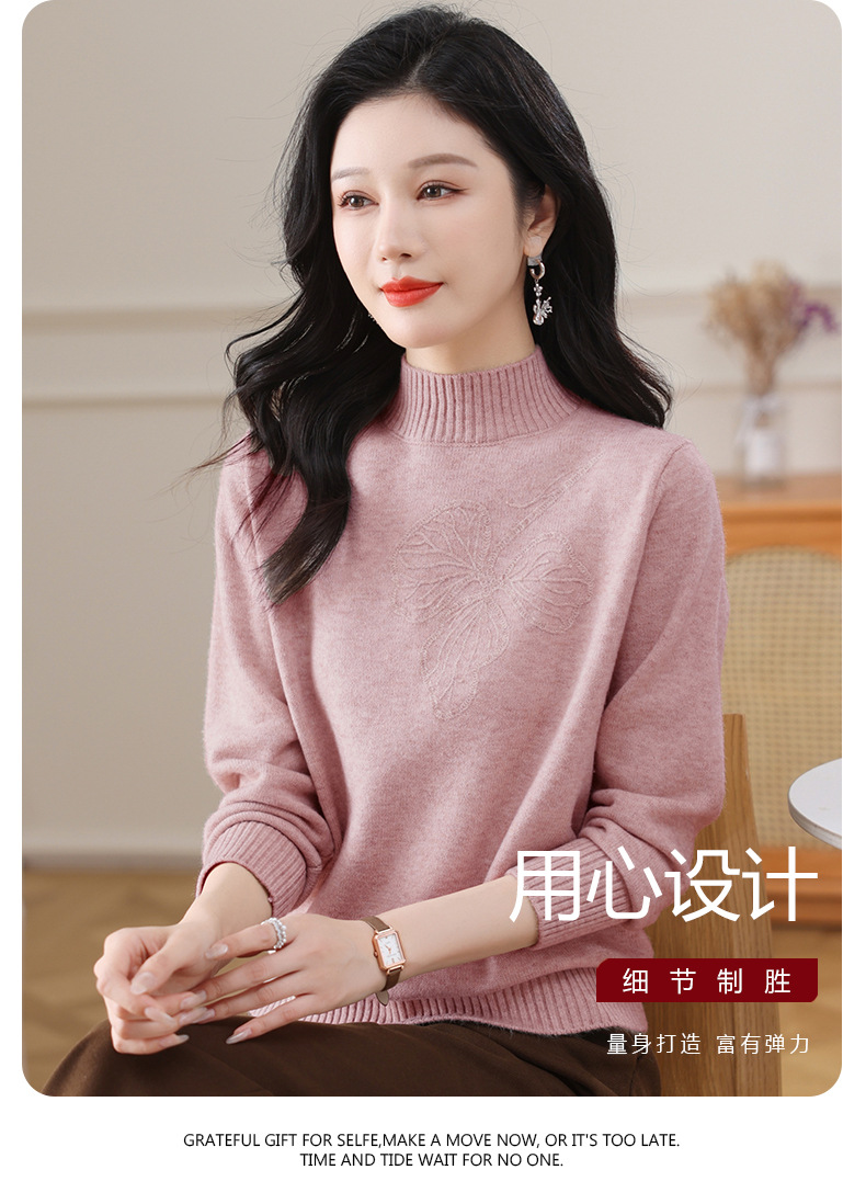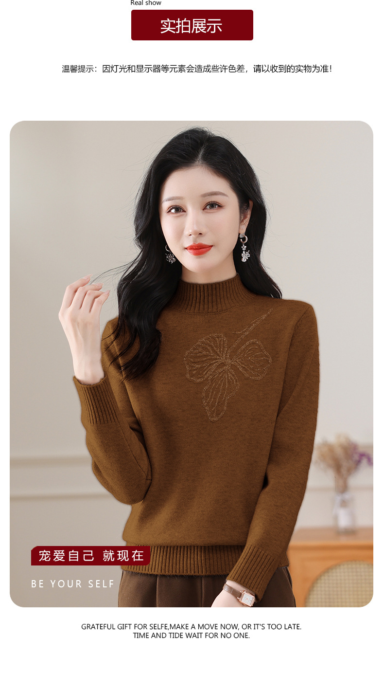 半高领毛衣宽松纯色,短款厚款套头针织衫CC-108-1279
