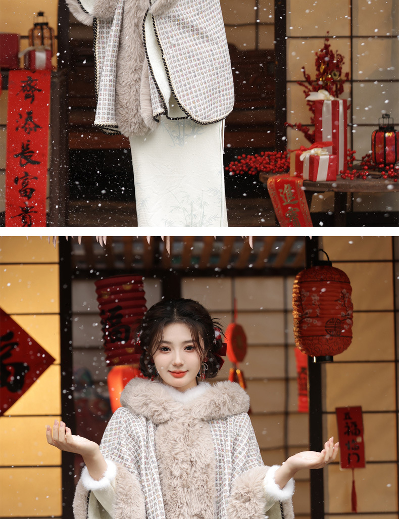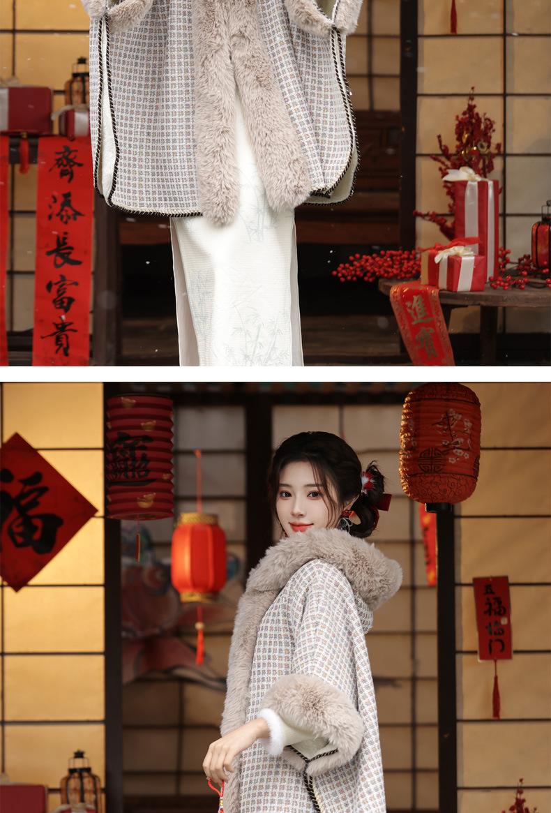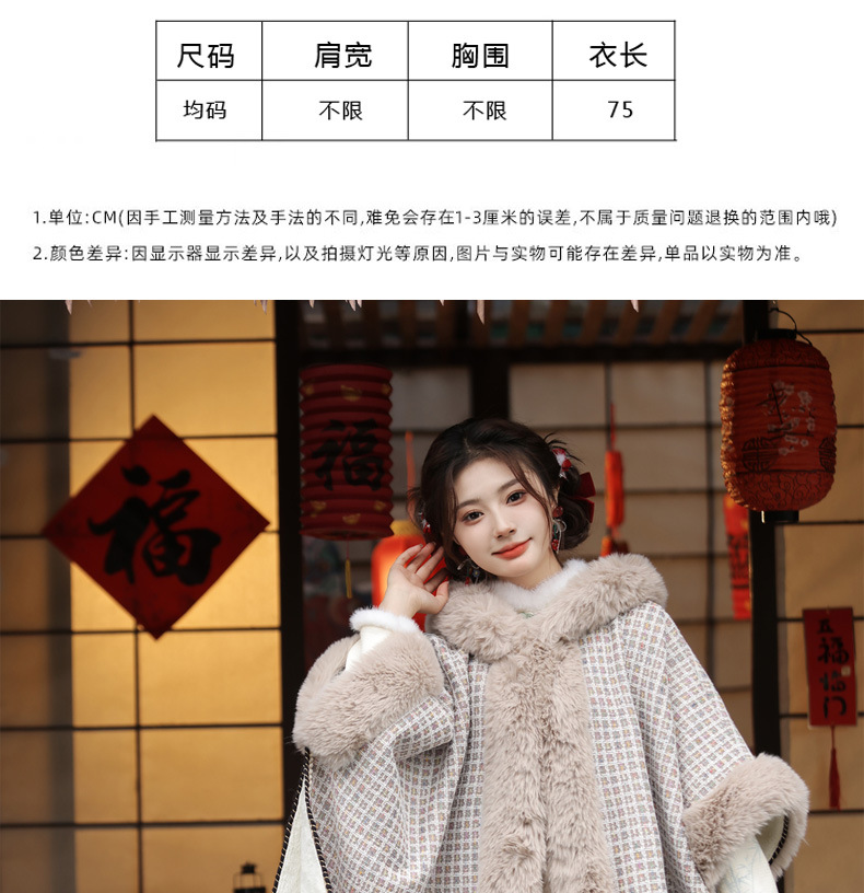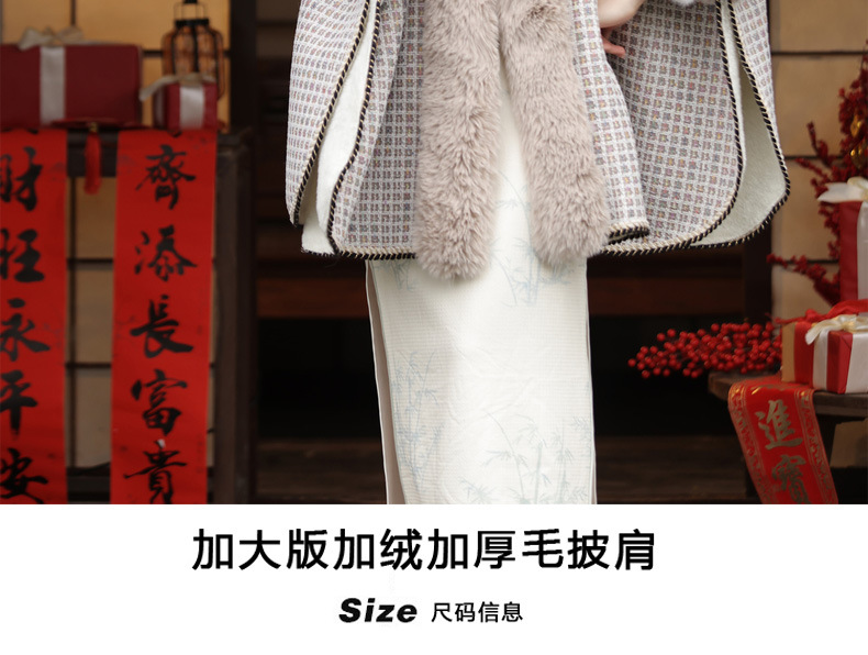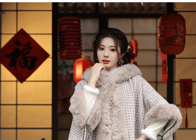 冬款古风披肩,大毛领格纹加厚保暖水貂绒斗篷外搭MLS-127