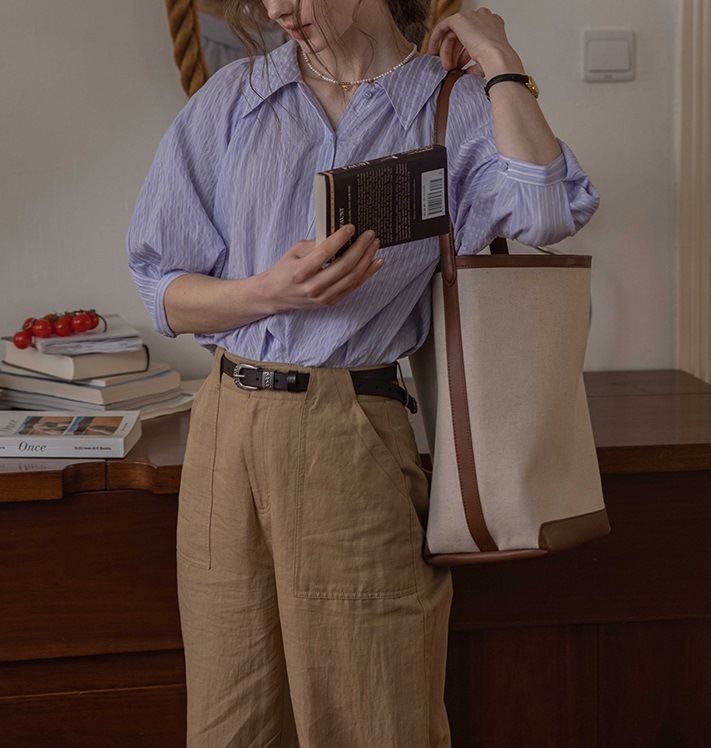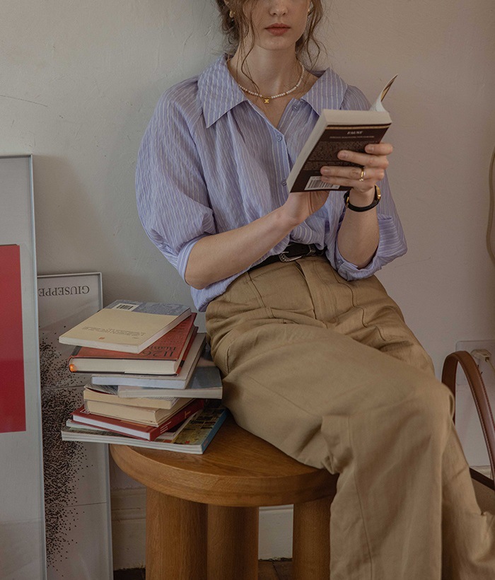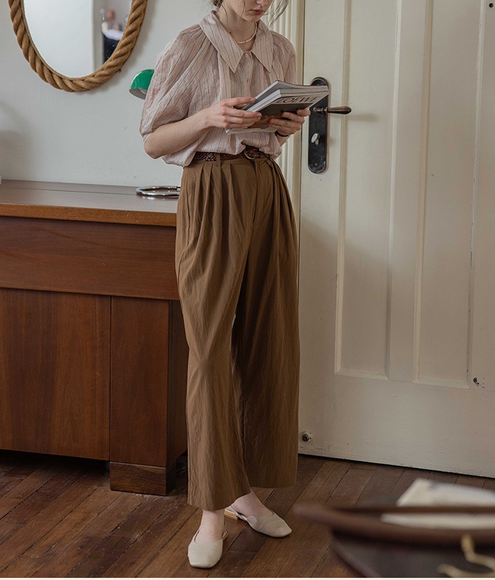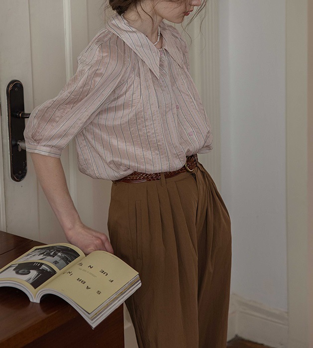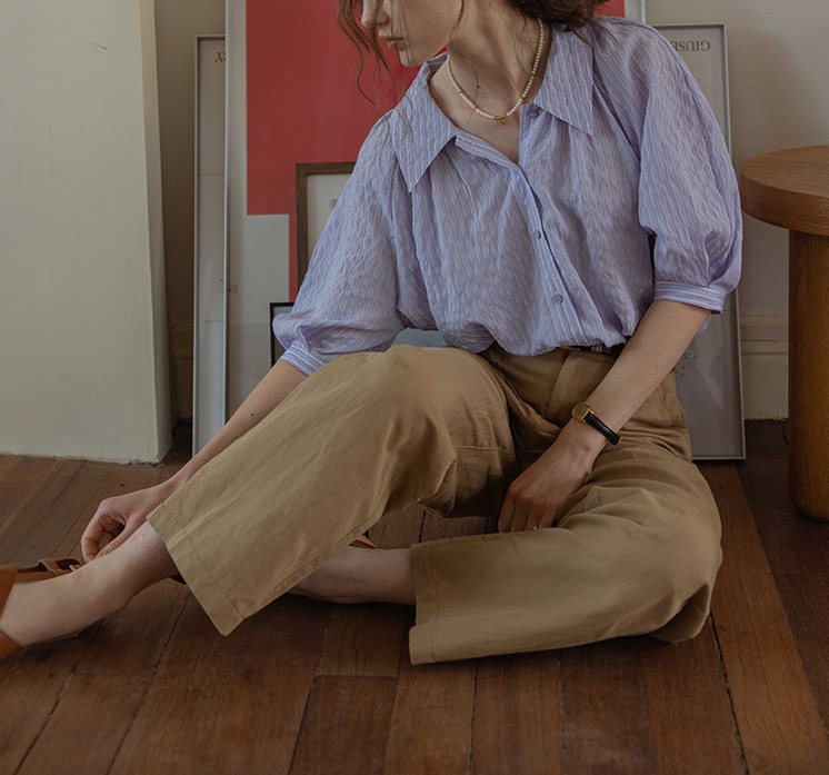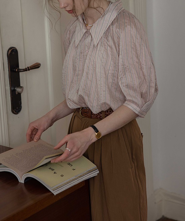 【小众设计!出门不撞衫系列】夏季日系复古宽松条纹衬衫,衫法式肌理感抽皱中袖,轻奢小衫上衣女L