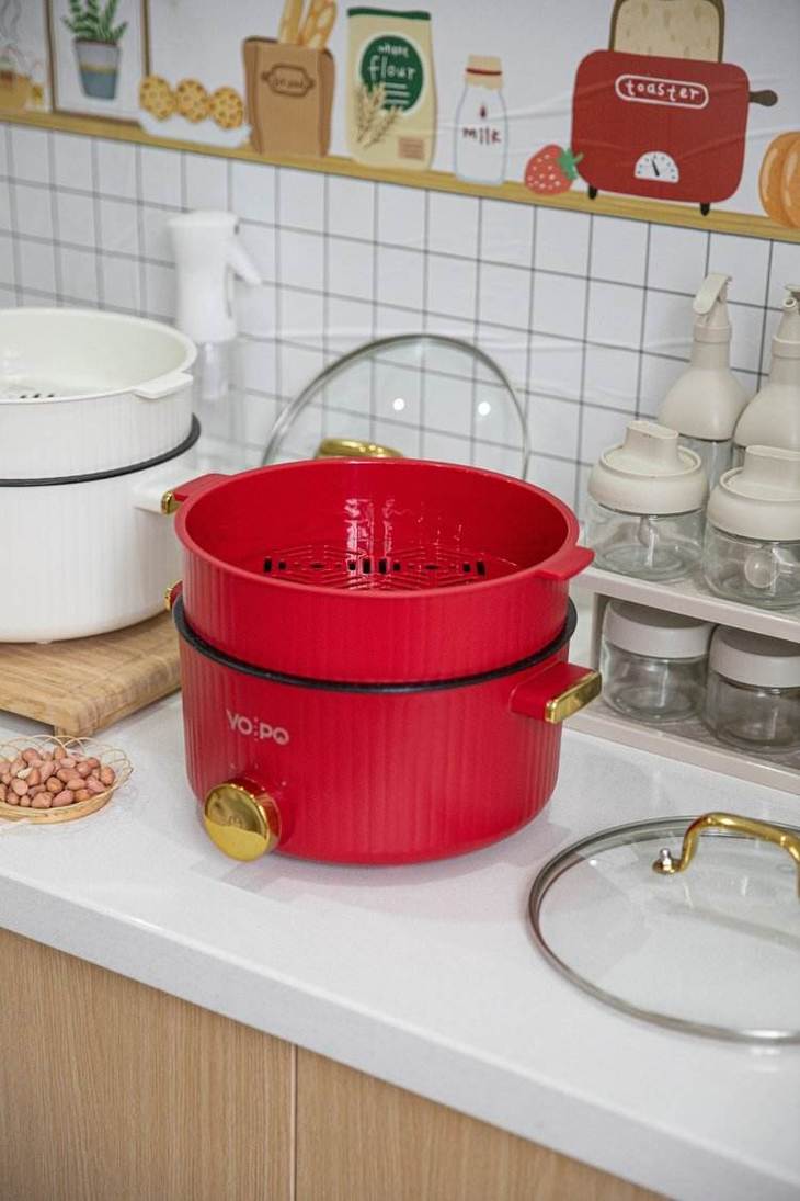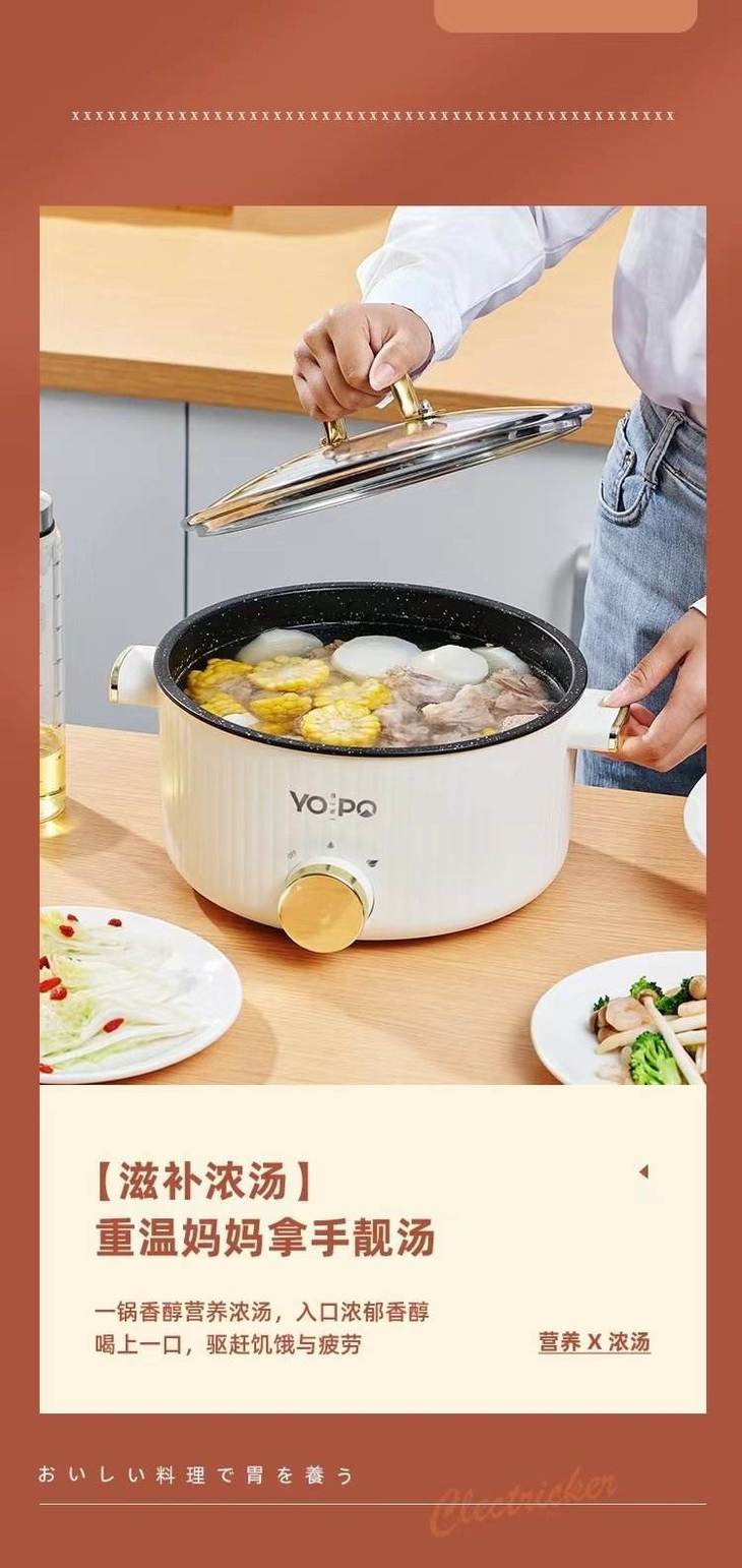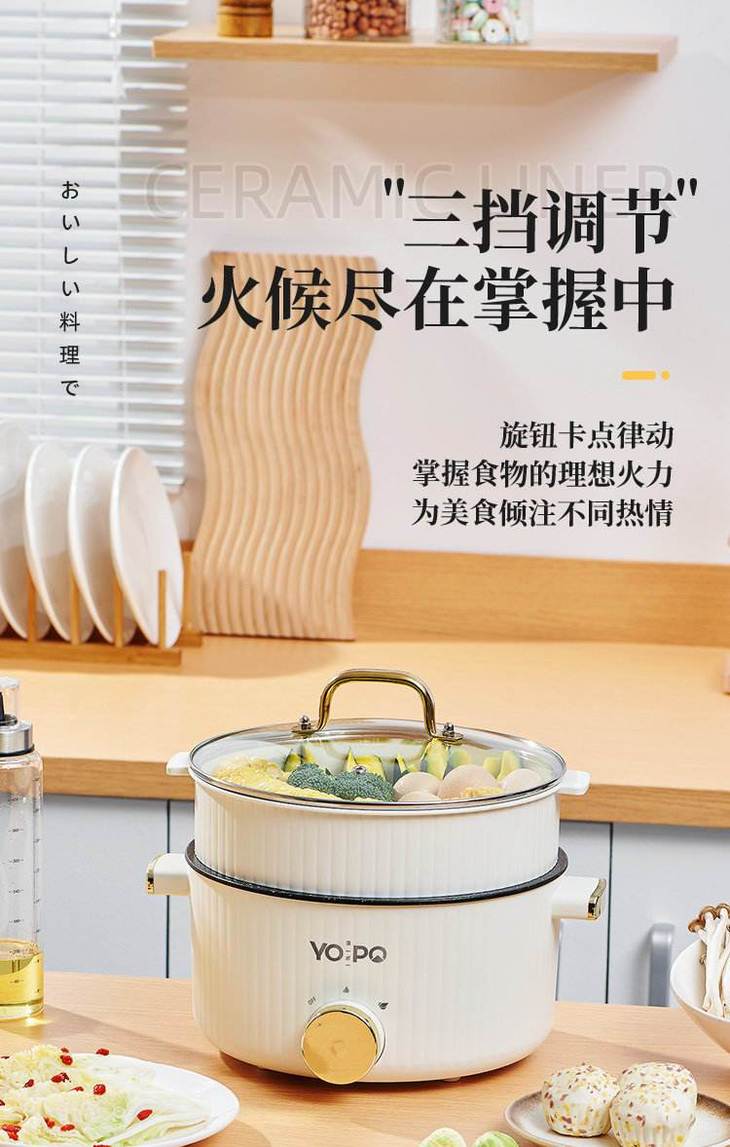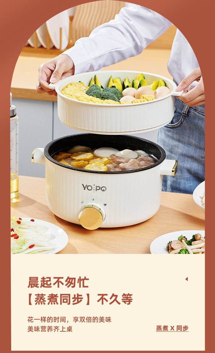 秋冬打火锅必备【YOPOヨ一ポ-多功能料理锅3.5L】 ✅旋钮式两档控温,0使用门槛 ✅一锅=电火锅+电煮锅+电蒸锅+电炒锅 ✅3.5L大容量,满足一家三口的需求 全机防烫设计