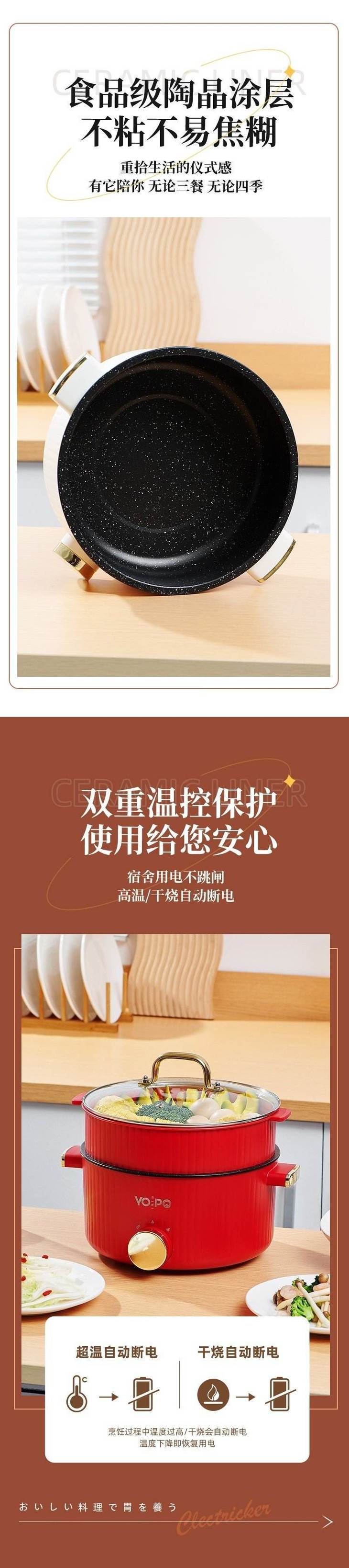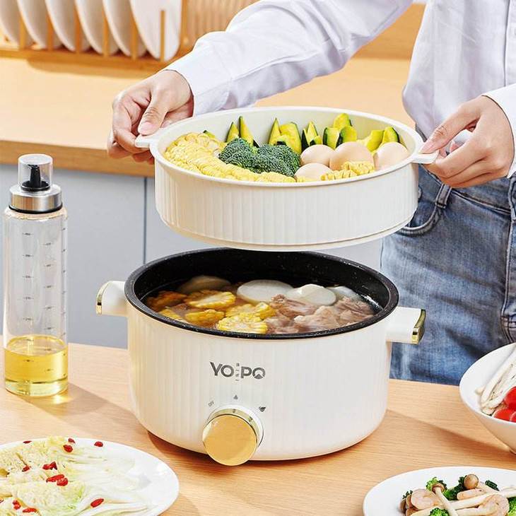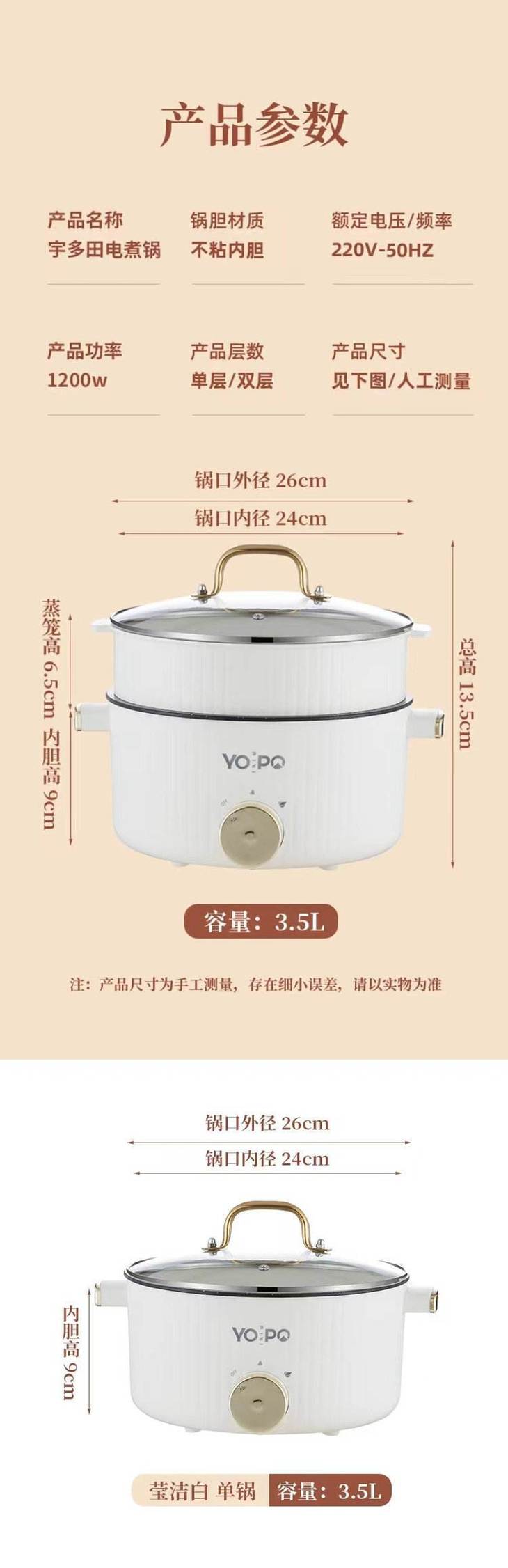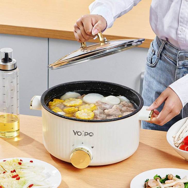 秋冬打火锅必备【YOPOヨ一ポ-多功能料理锅3.5L】 ✅旋钮式两档控温,0使用门槛 ✅一锅=电火锅+电煮锅+电蒸锅+电炒锅 ✅3.5L大容量,满足一家三口的需求 全机防烫设计