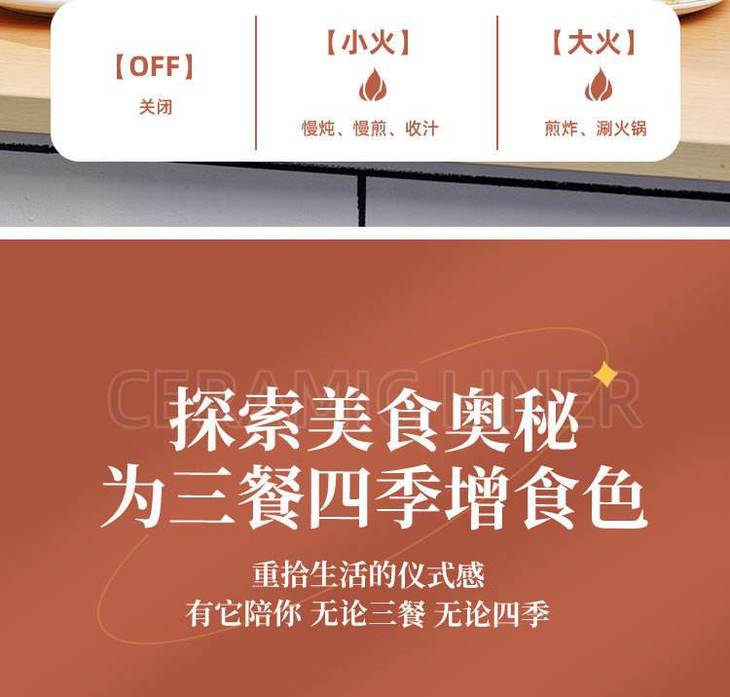 食品级陶晶涂层 不粘不易焦糊,耐高温,耐摩擦,超实用耐用。 おいしい料理で胃を養う 再强调一下,没有什么比安全更重要了, 超温自动断电! 干烧自动断电! 烹饪过程中温度过高/干烧会自动断电, 非常智能,温度下降即恢复用电。