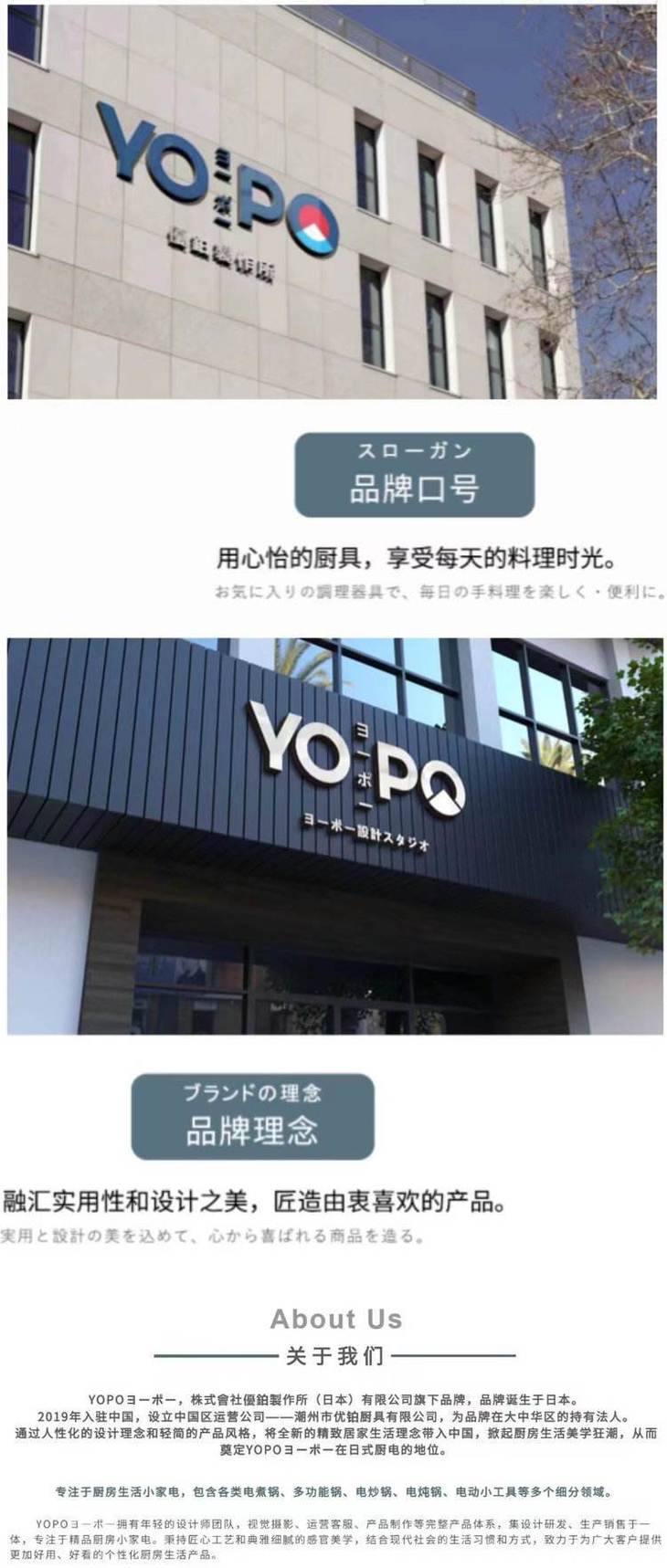 YOPOヨ一ポ- 株式會社優鉑製作所(日本)有限公司旗下品牌 诞生于日本,2019年入驻中国 アイリス*マ),レコル*等大牌指定代工厂 专注于厨房生活小家电、家务伴侣等 从厨具到保鲜容器一应俱全 引导国内外厨房生活美学狂潮