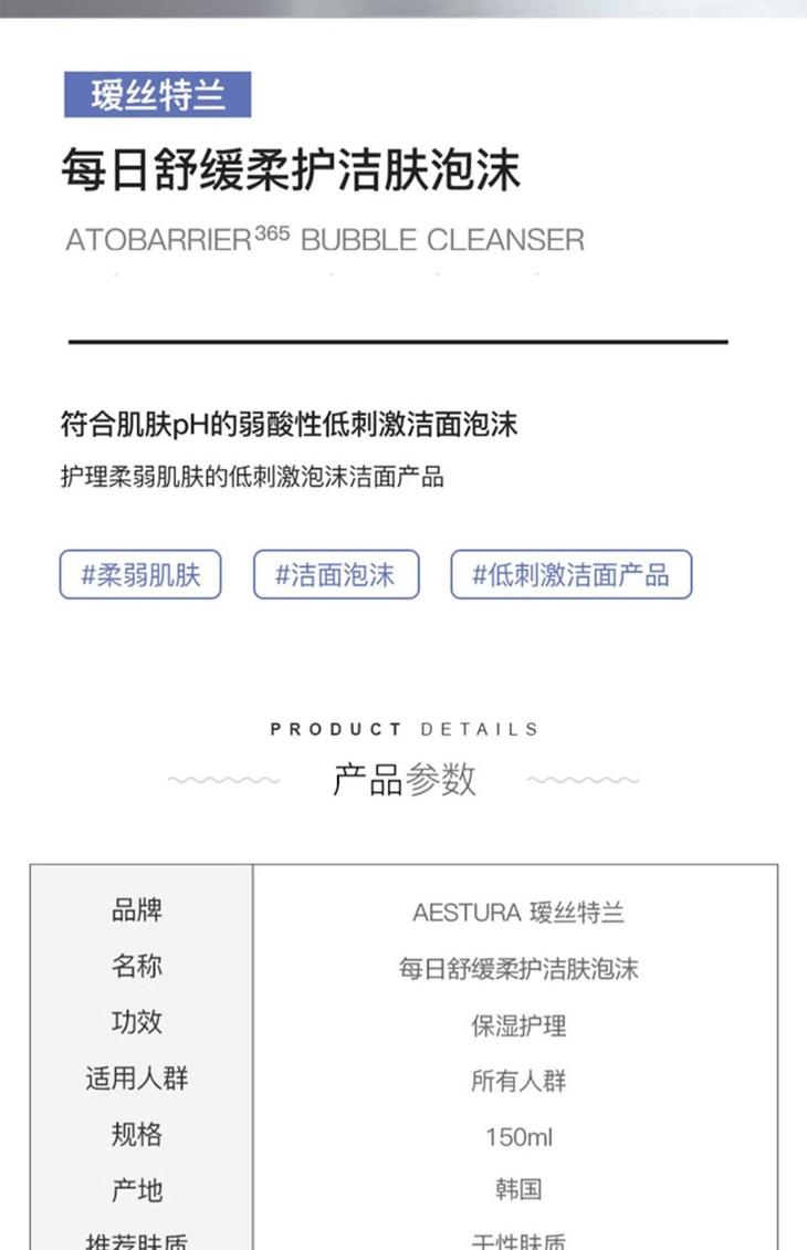 【韩国进口】瑷丝特兰 每日保湿柔护洁肤泡沫 150ml【龙泉仓】【有效期至26年2月23号】