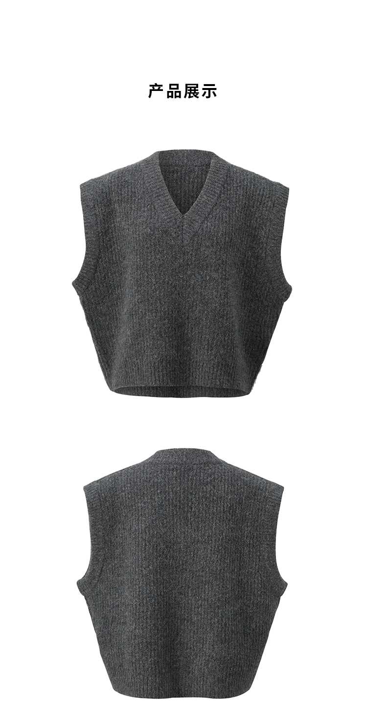 HIDEMI 甄选羊驼毛系列进口羊驼毛加厚款V领大廓形极简宽松马甲背心