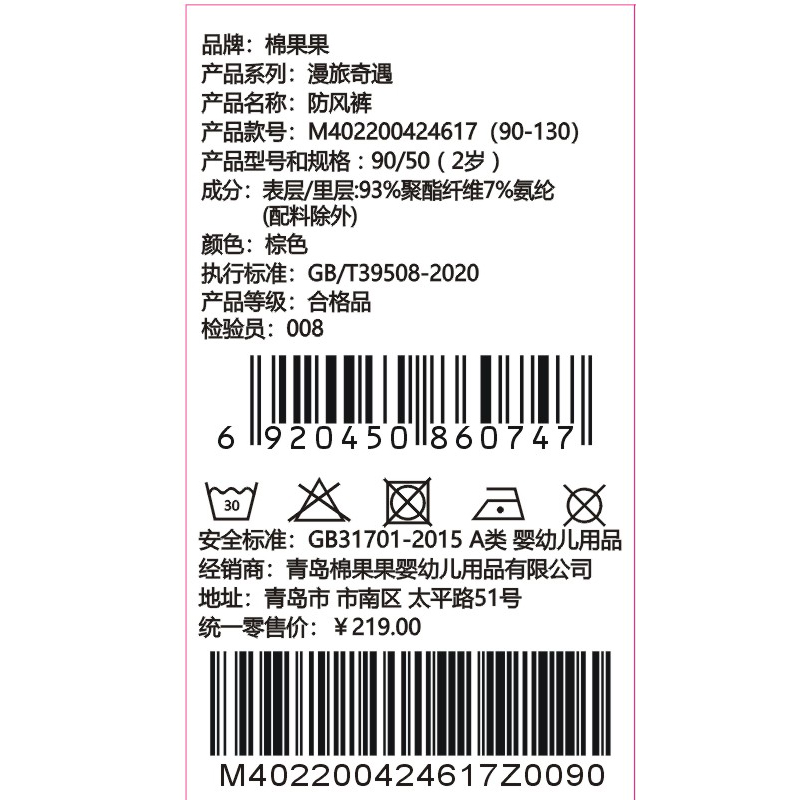| 总裤长 | 51 | 56.5 | 62.5 | 68.5 | 75 |