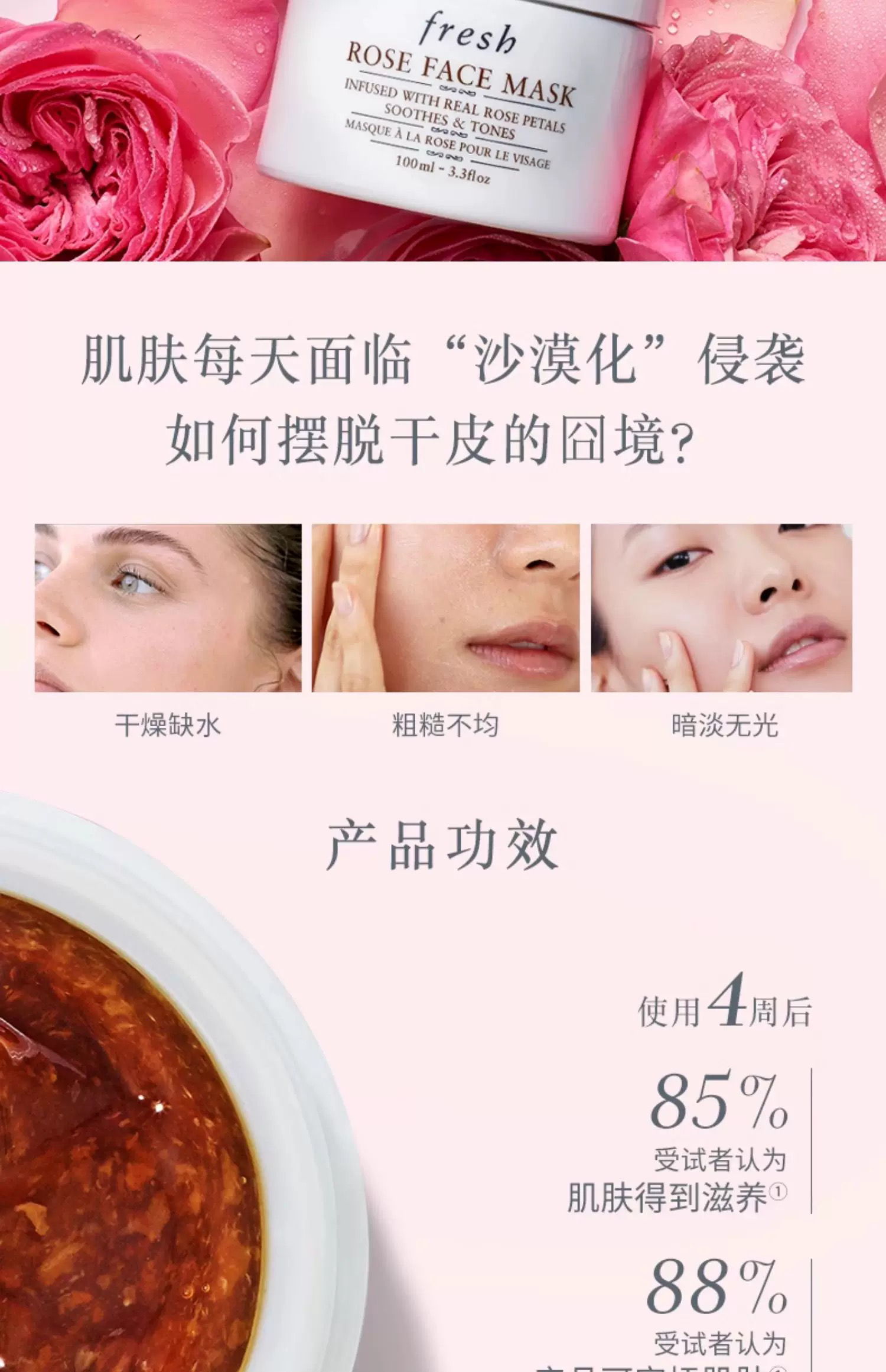 【专柜小样】法国 Fresh馥蕾诗 玫瑰润泽涂抹面膜 15ml