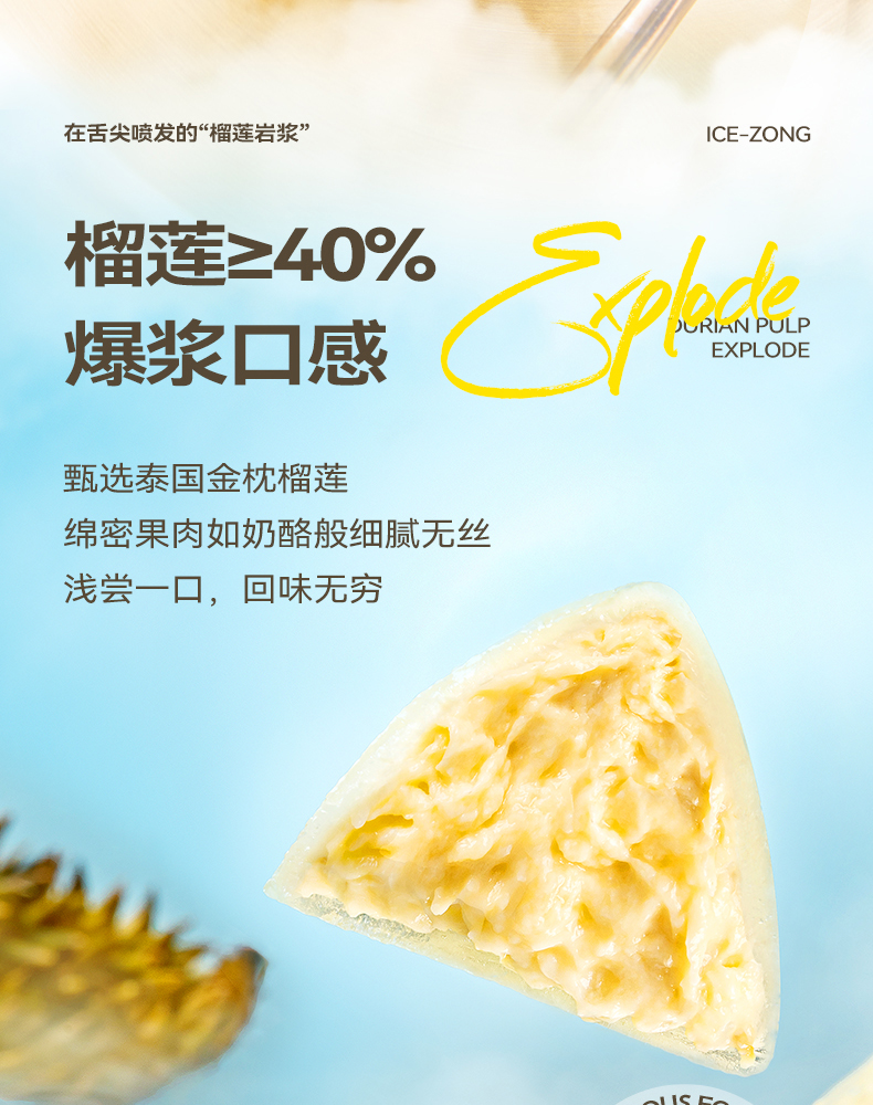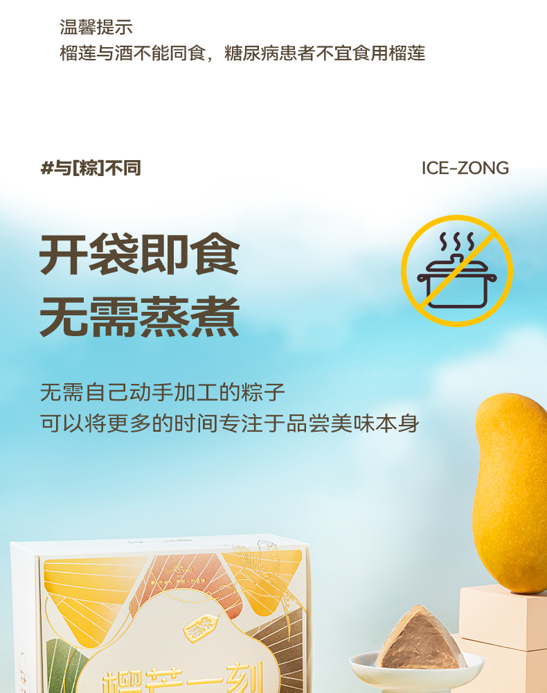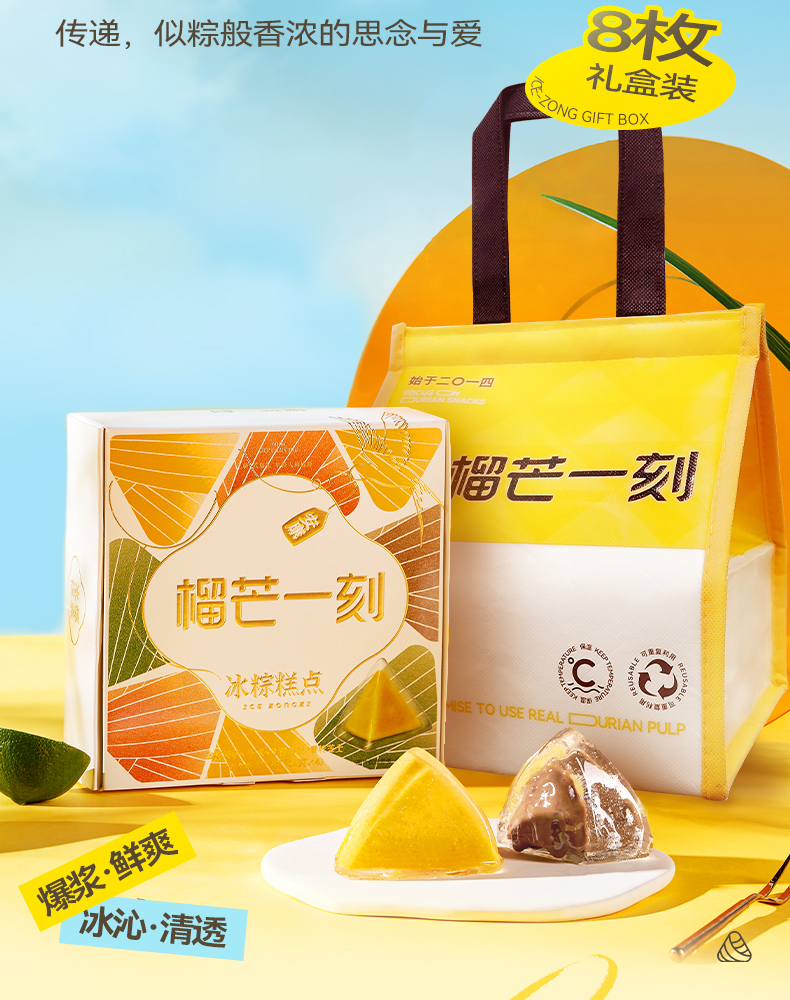 【外运冷链】榴芒一刻 端午节粽子 榴莲冰粽多口味水晶粽礼盒装提货券 免煮即食54g*8个/盒
