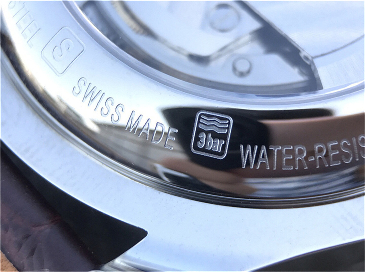 1、字面:每个字丁都单独抄写开模,文字位置、字体大小、月份星期月相窗口和原装完全吻合。采用和原装一样的高端填油镀釉工艺,以确保字面的光泽色度一致,坚持字面就是门面理念,效果比原装有过而无不及。