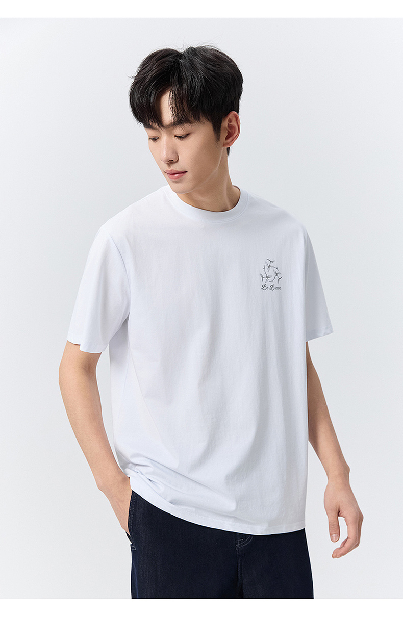 GXG男装 白色肌理面料短袖T恤 舒适简约休闲夏季热卖G24X442083