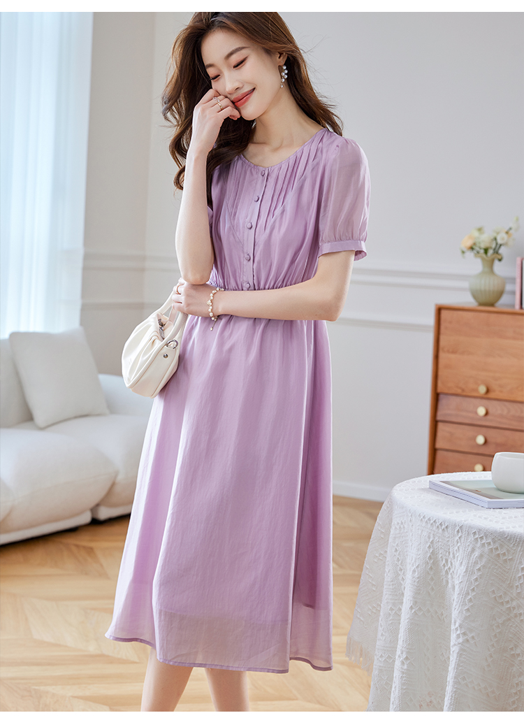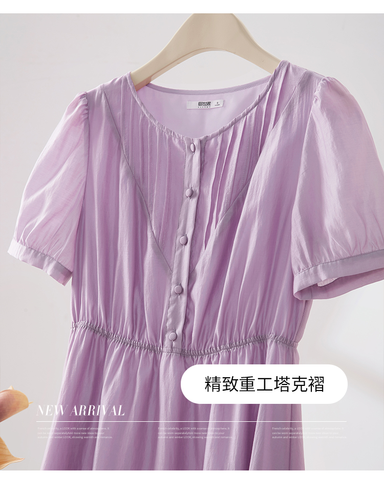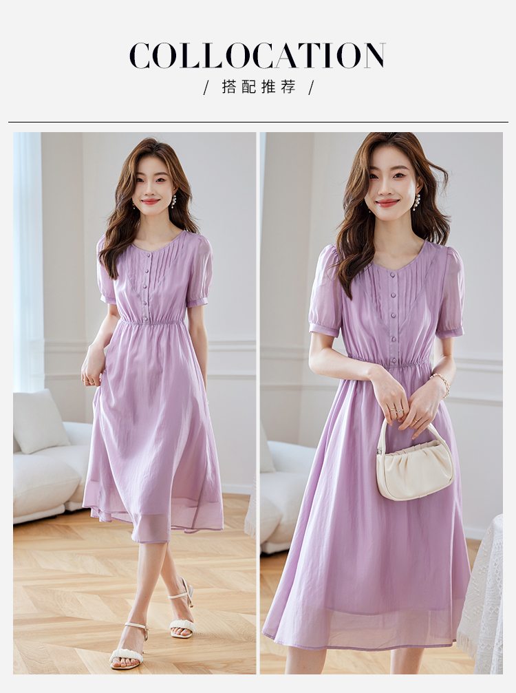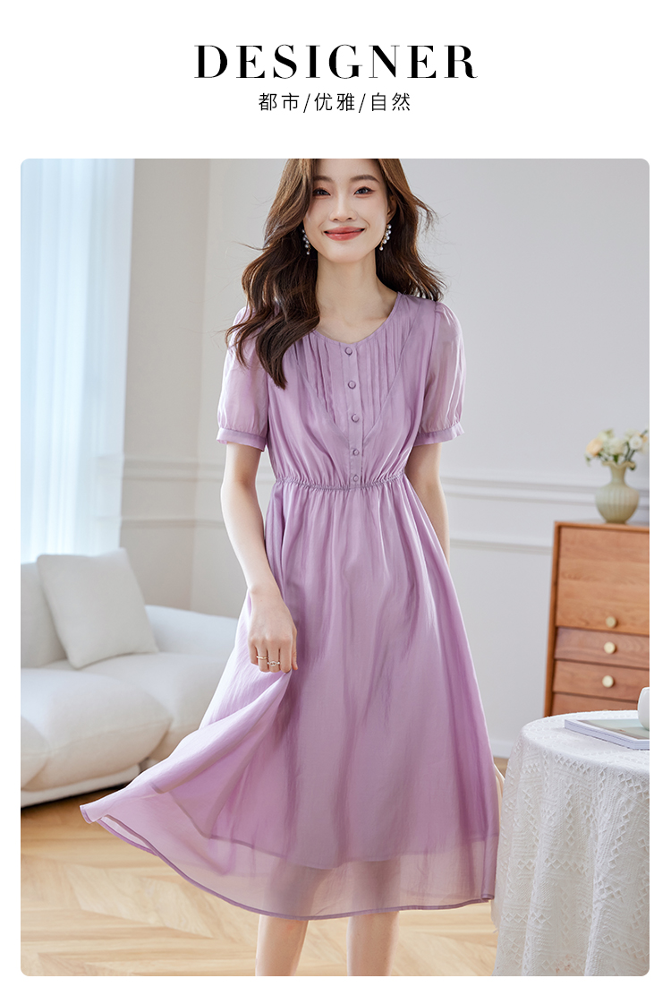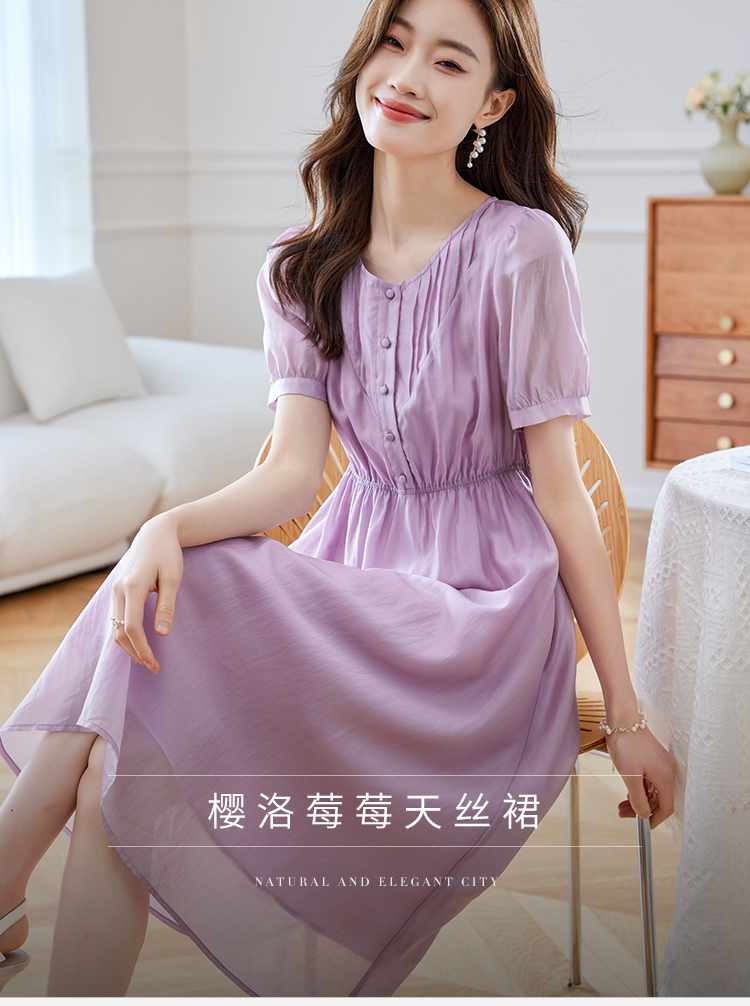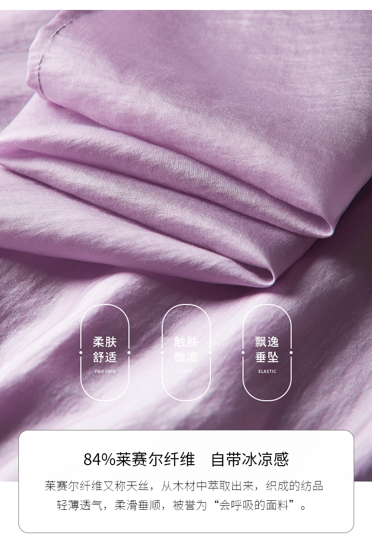 【五折购】熙世界高端气质天丝连衣裙女2025夏新款收腰显瘦温柔风莱赛尔裙子