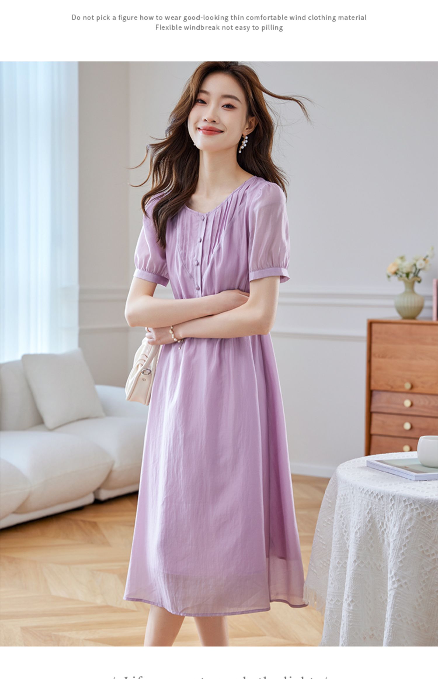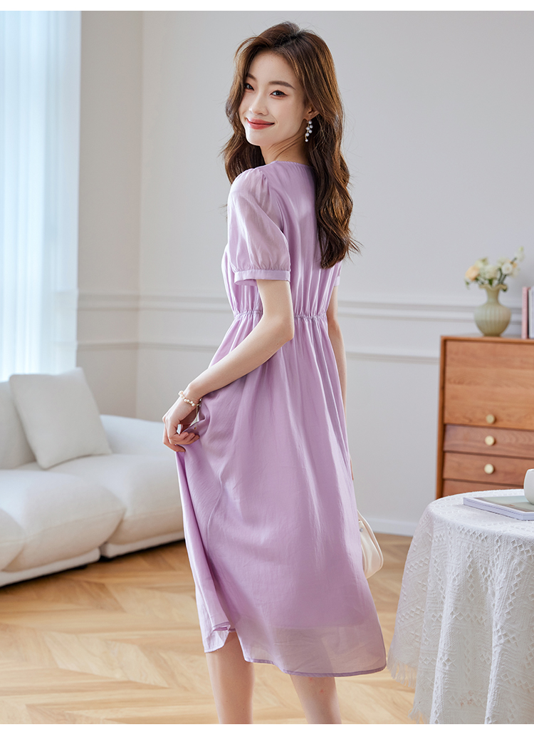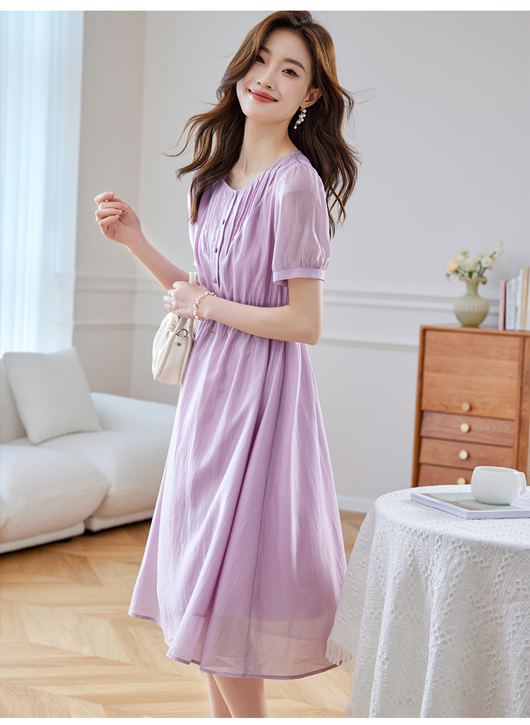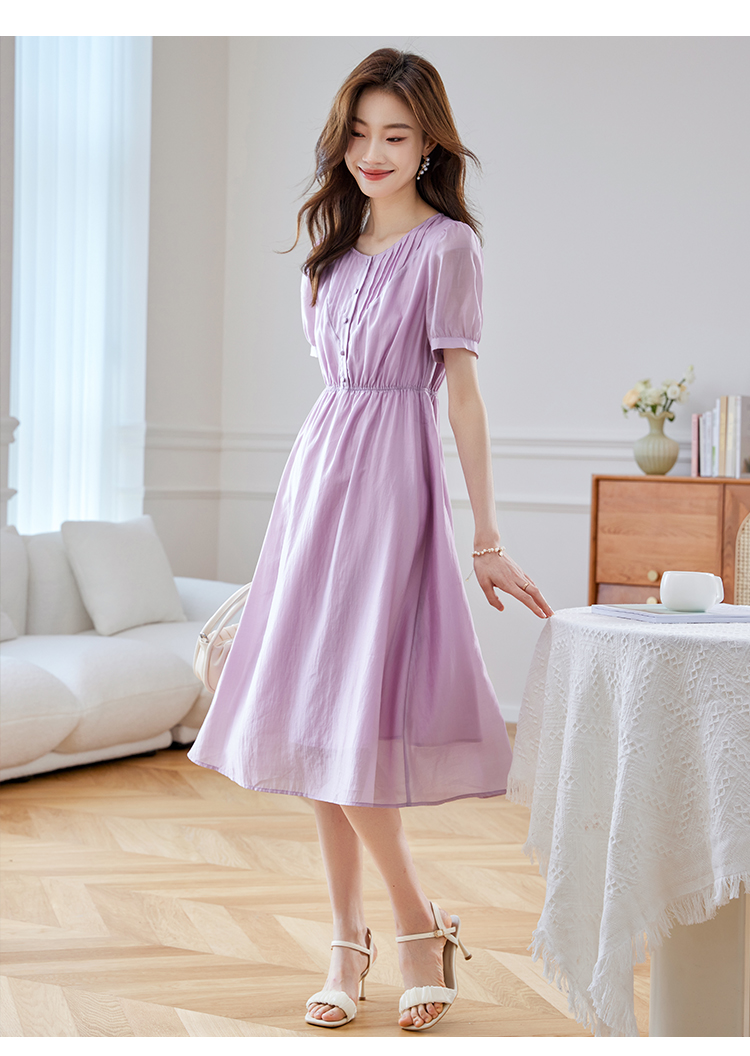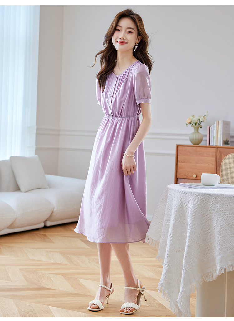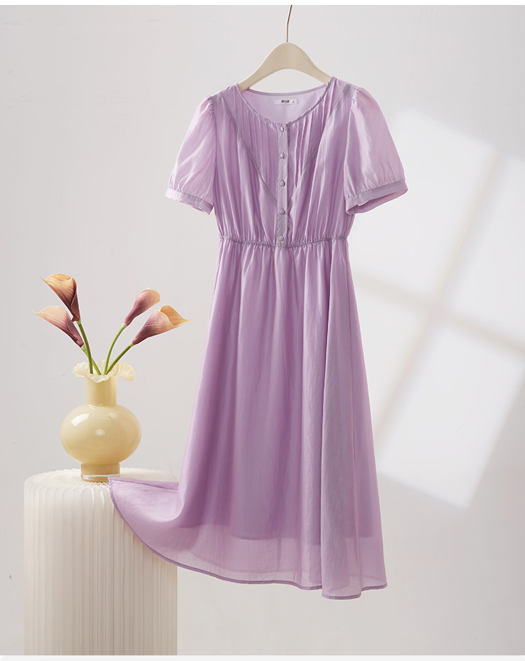 【五折购】熙世界高端气质天丝连衣裙女2025夏新款收腰显瘦温柔风莱赛尔裙子