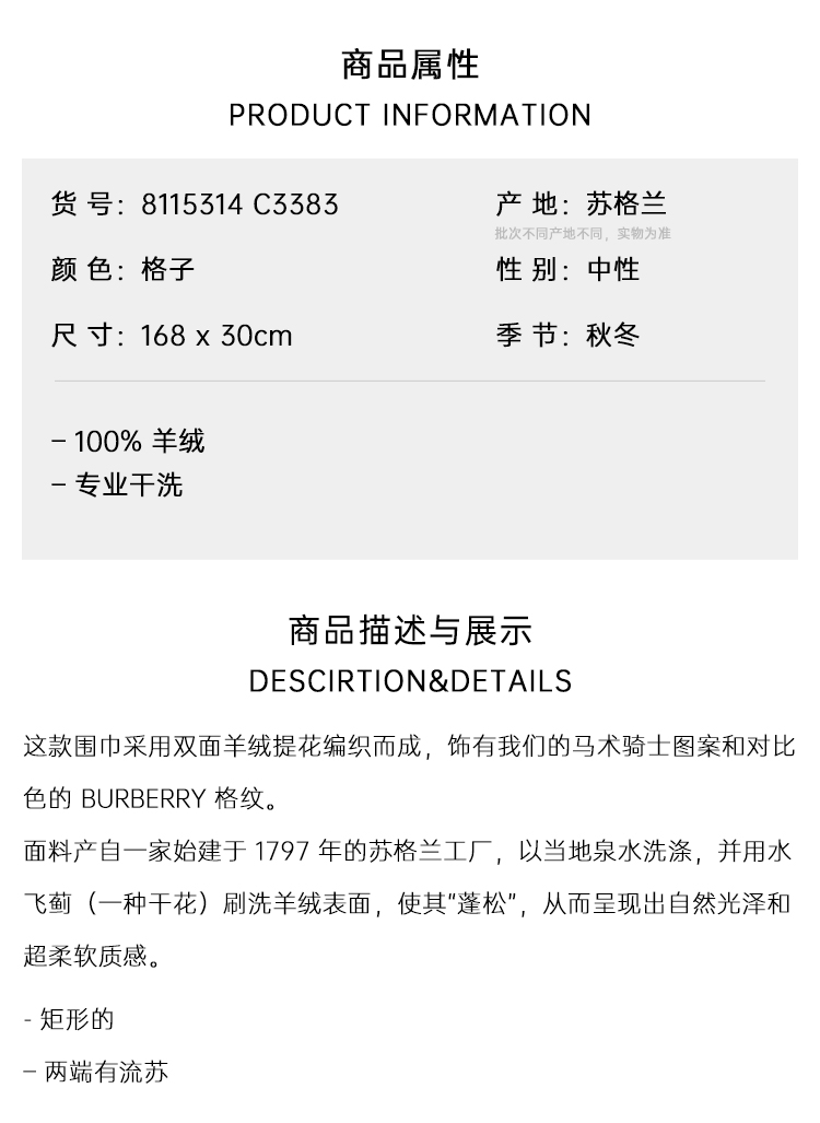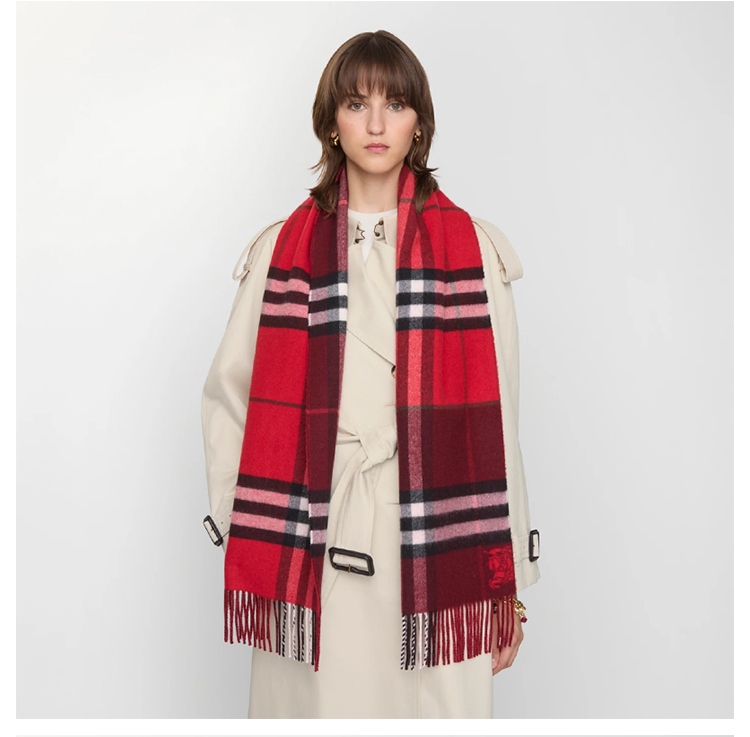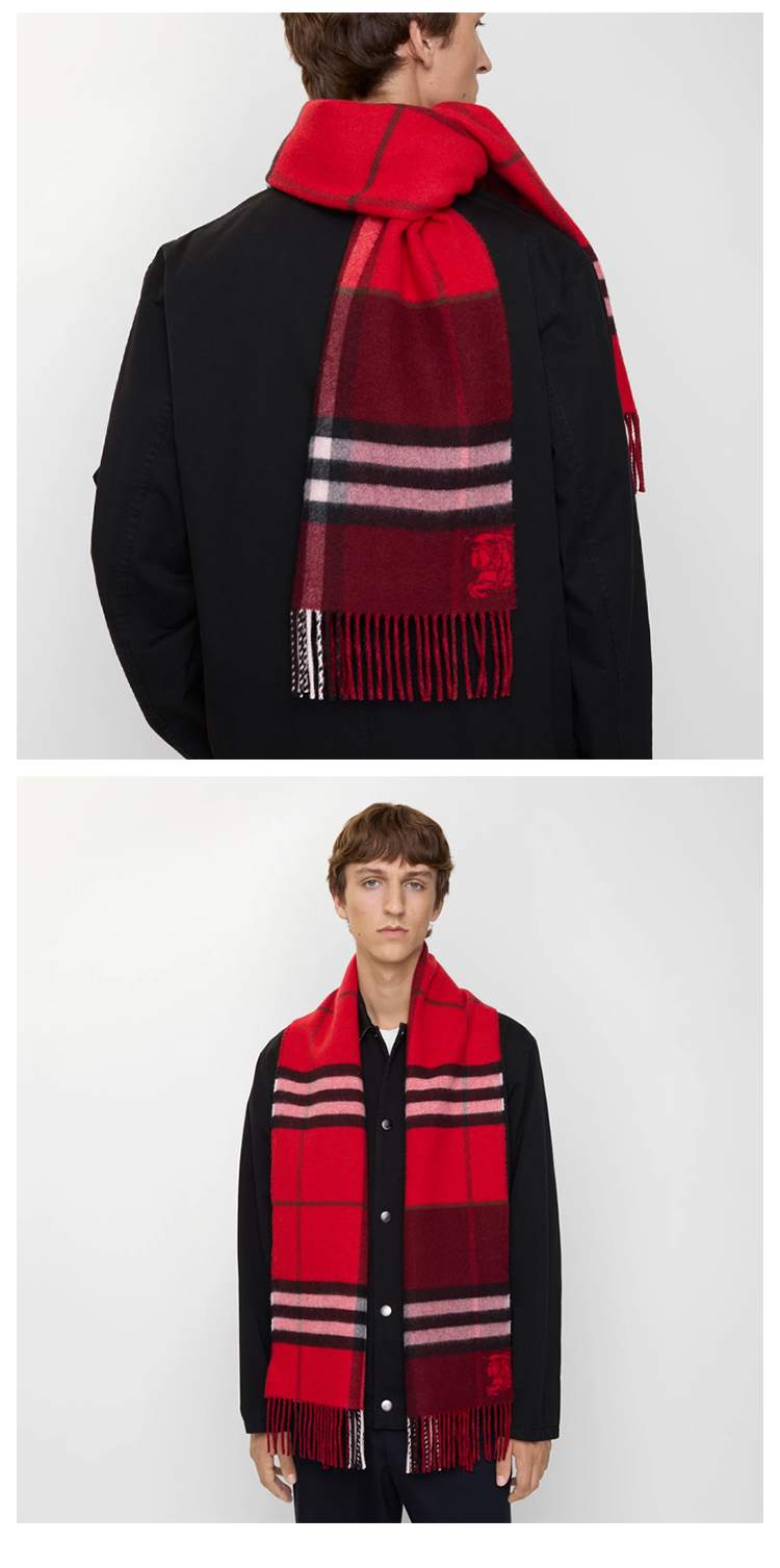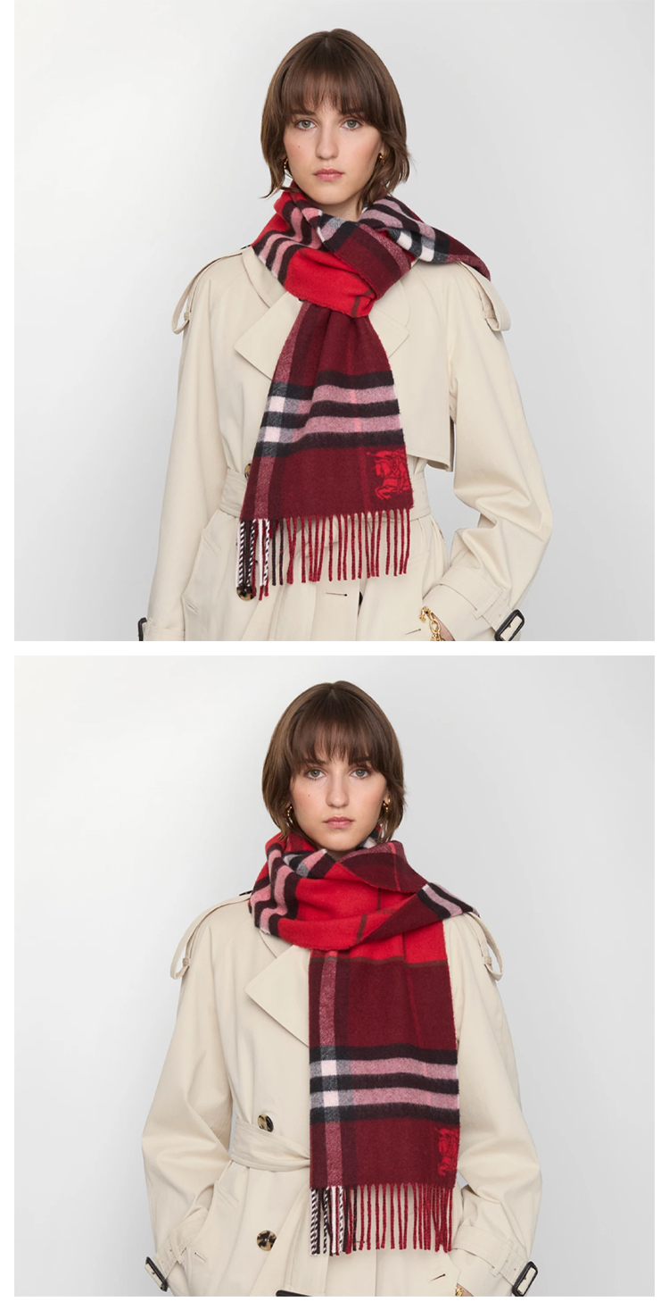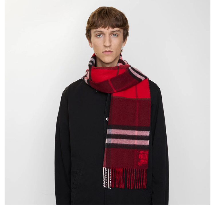 BURBERRY 巴宝莉 中性马术骑士徽标对比色格纹羊绒围巾 格子 8115314 C3383