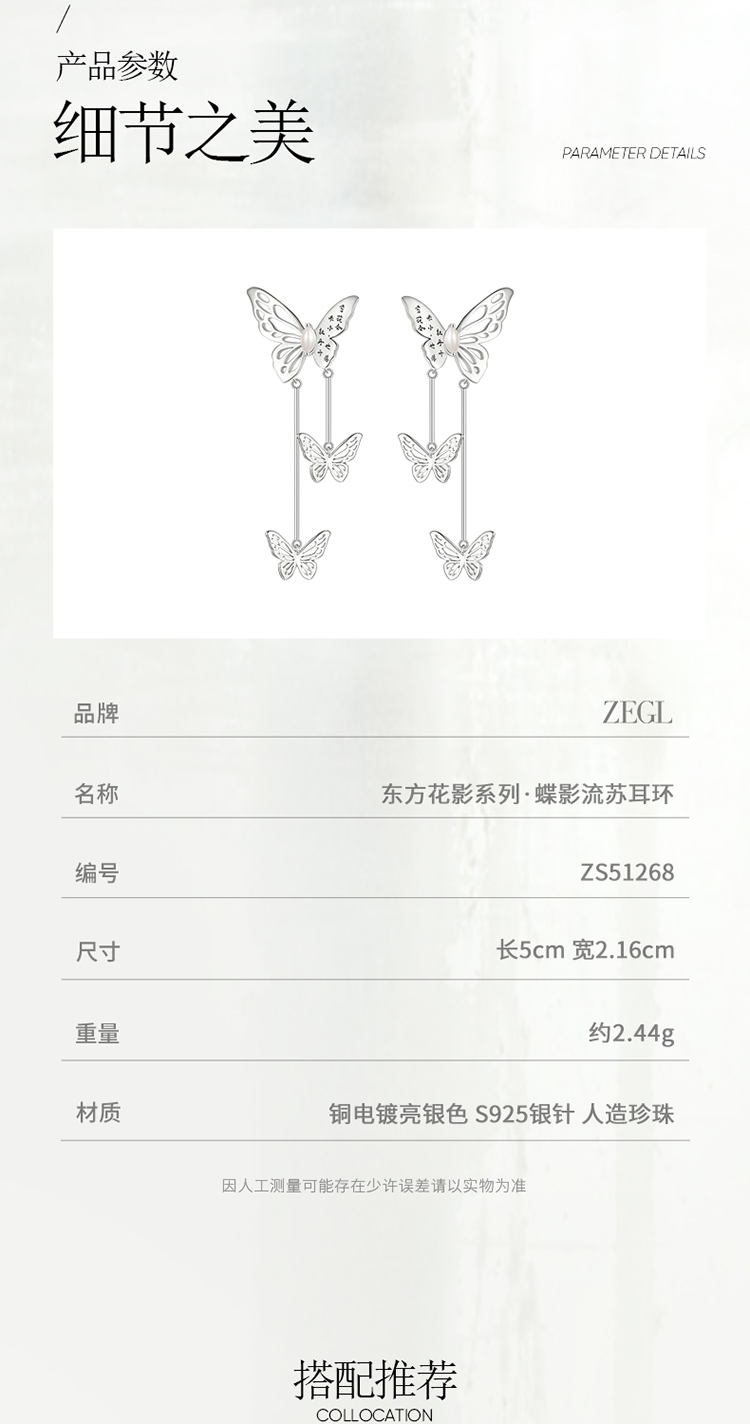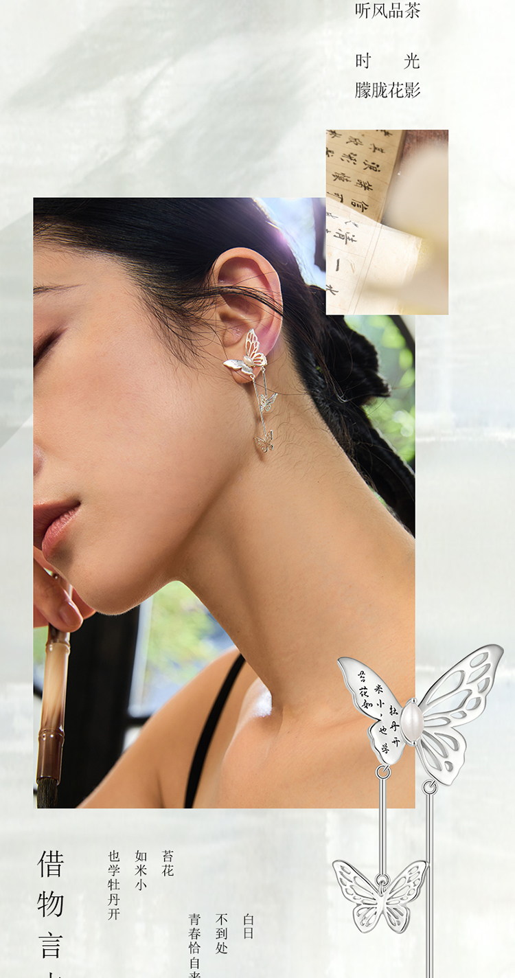 ZEGL设计师东方花影系列蝴蝶耳环女2024新款爆款新中式民族风耳饰