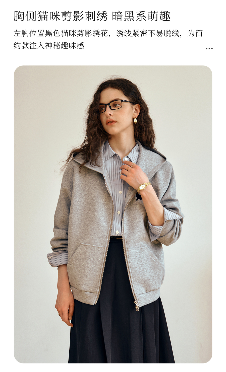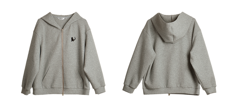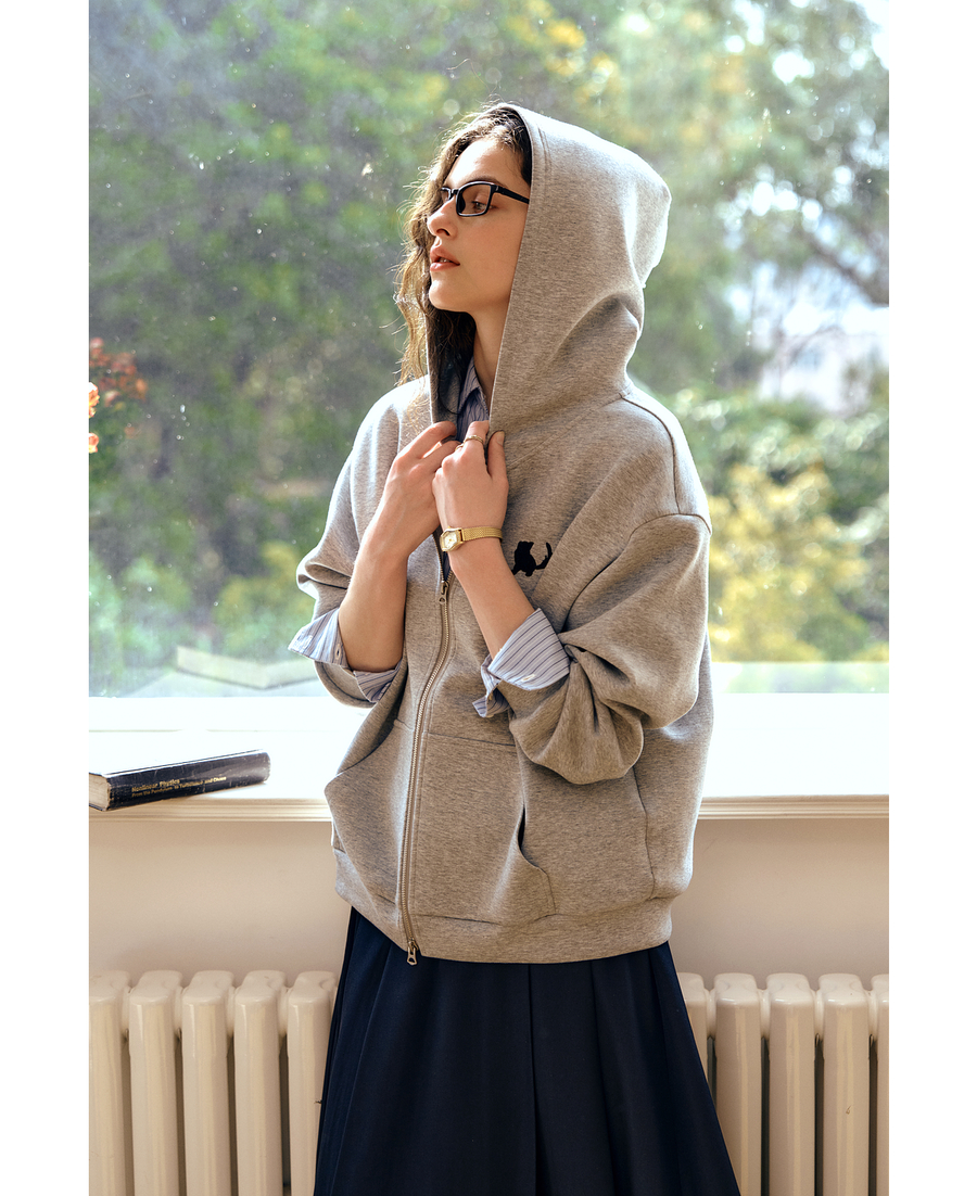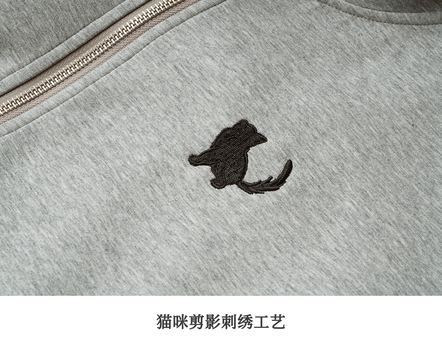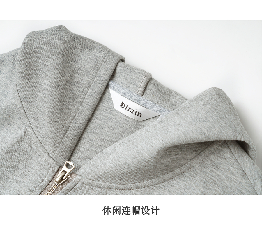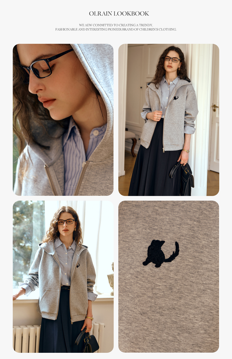 OLrain欧芮儿灰色休闲连帽猫咪刺绣显瘦卫衣外套女秋季2025新款