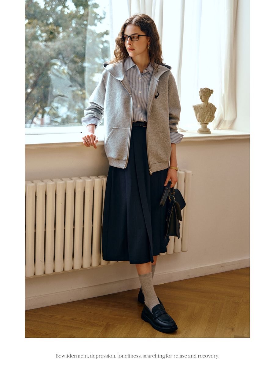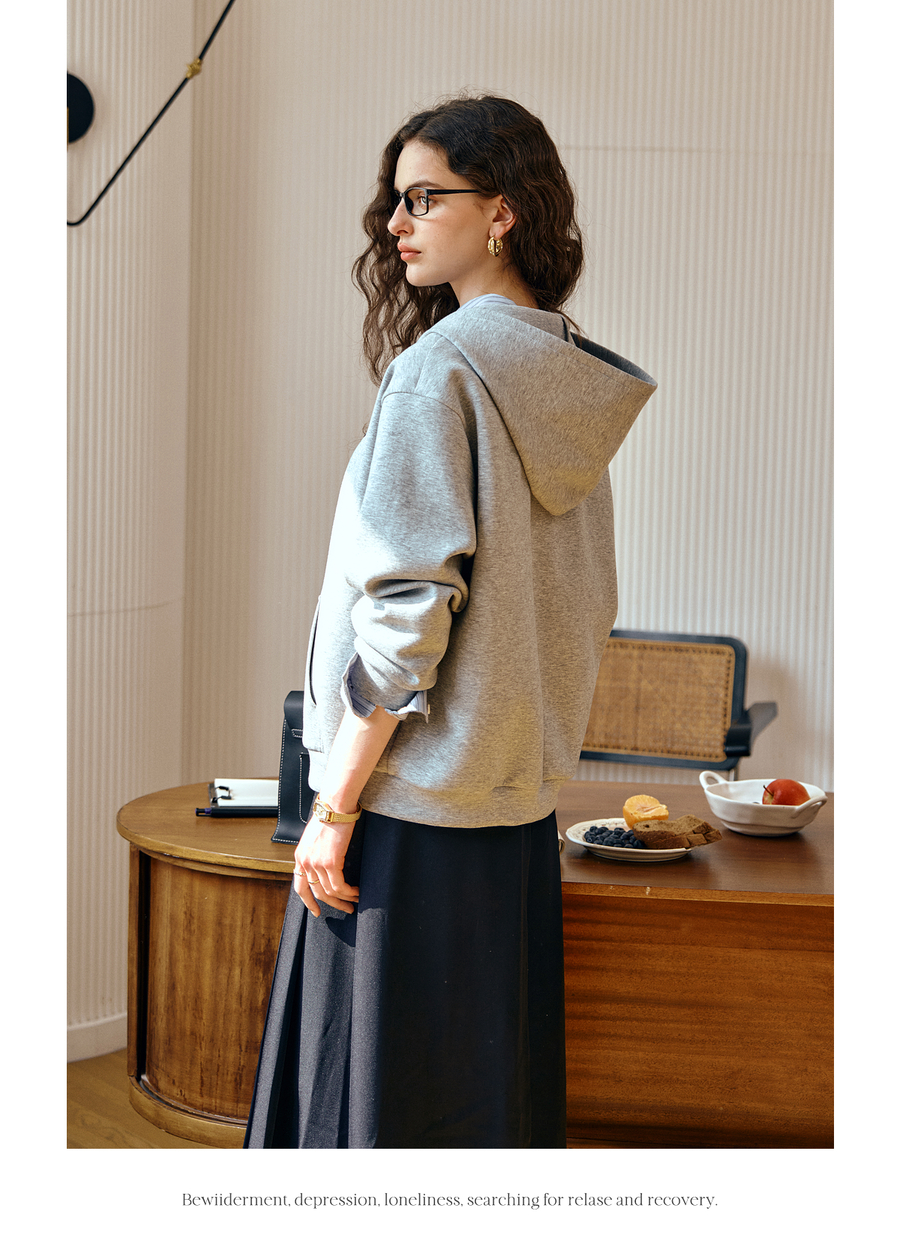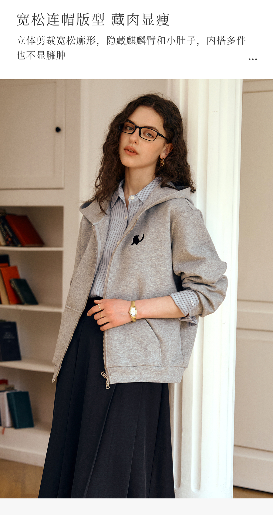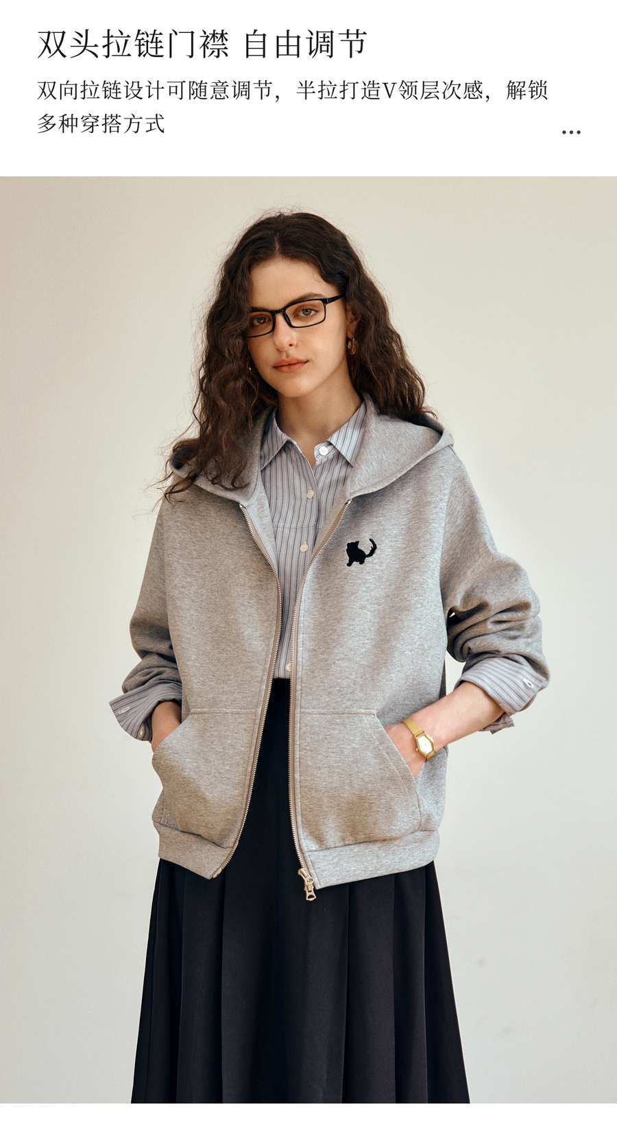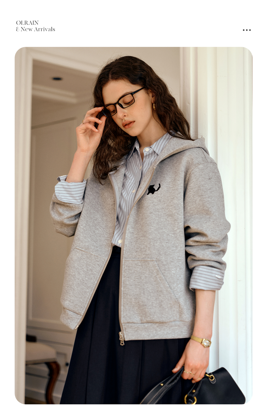 OLrain欧芮儿灰色休闲连帽猫咪刺绣显瘦卫衣外套女秋季2025新款
