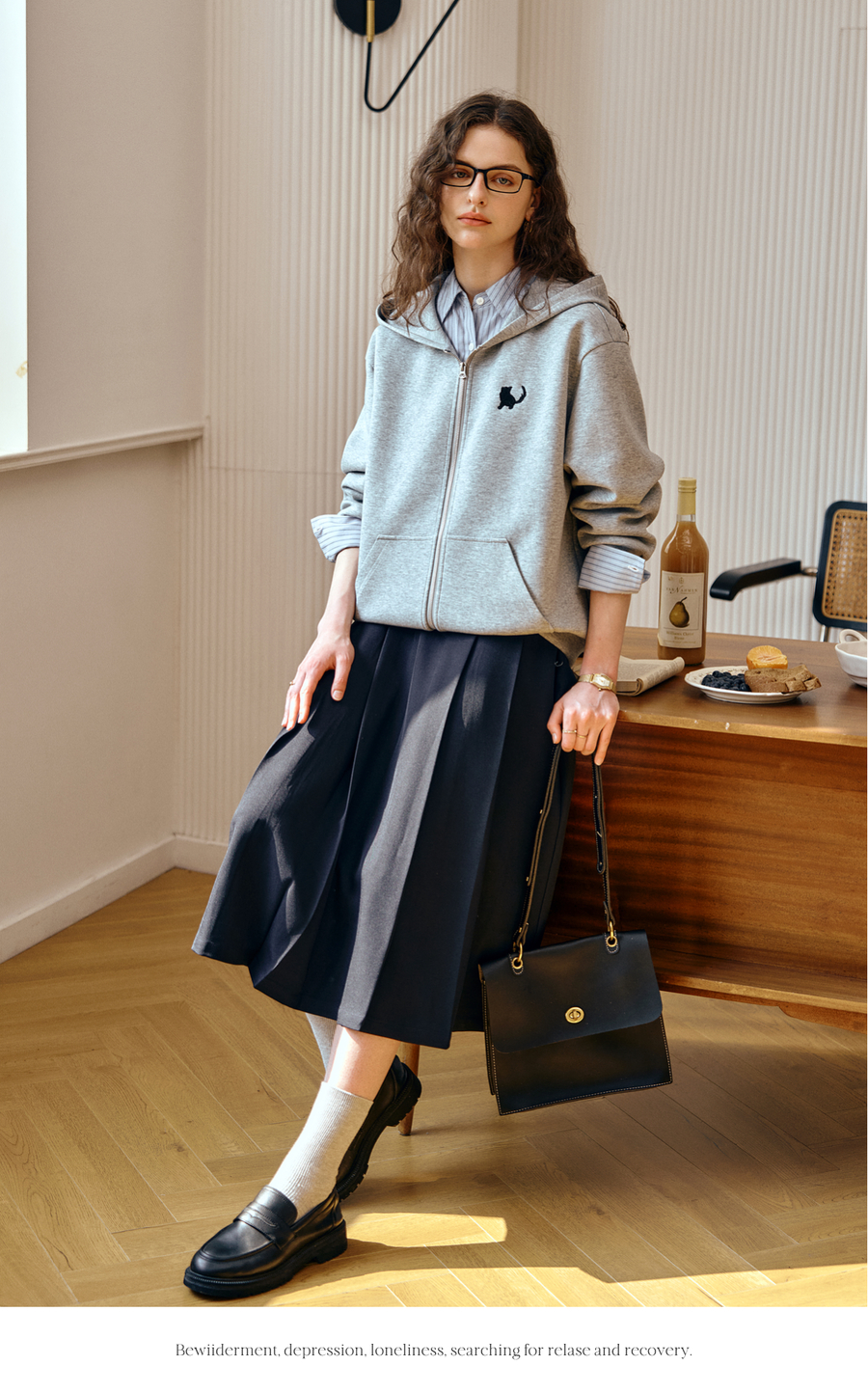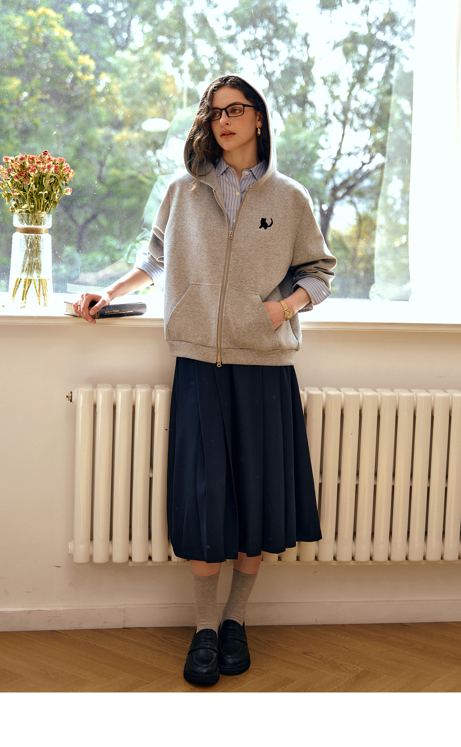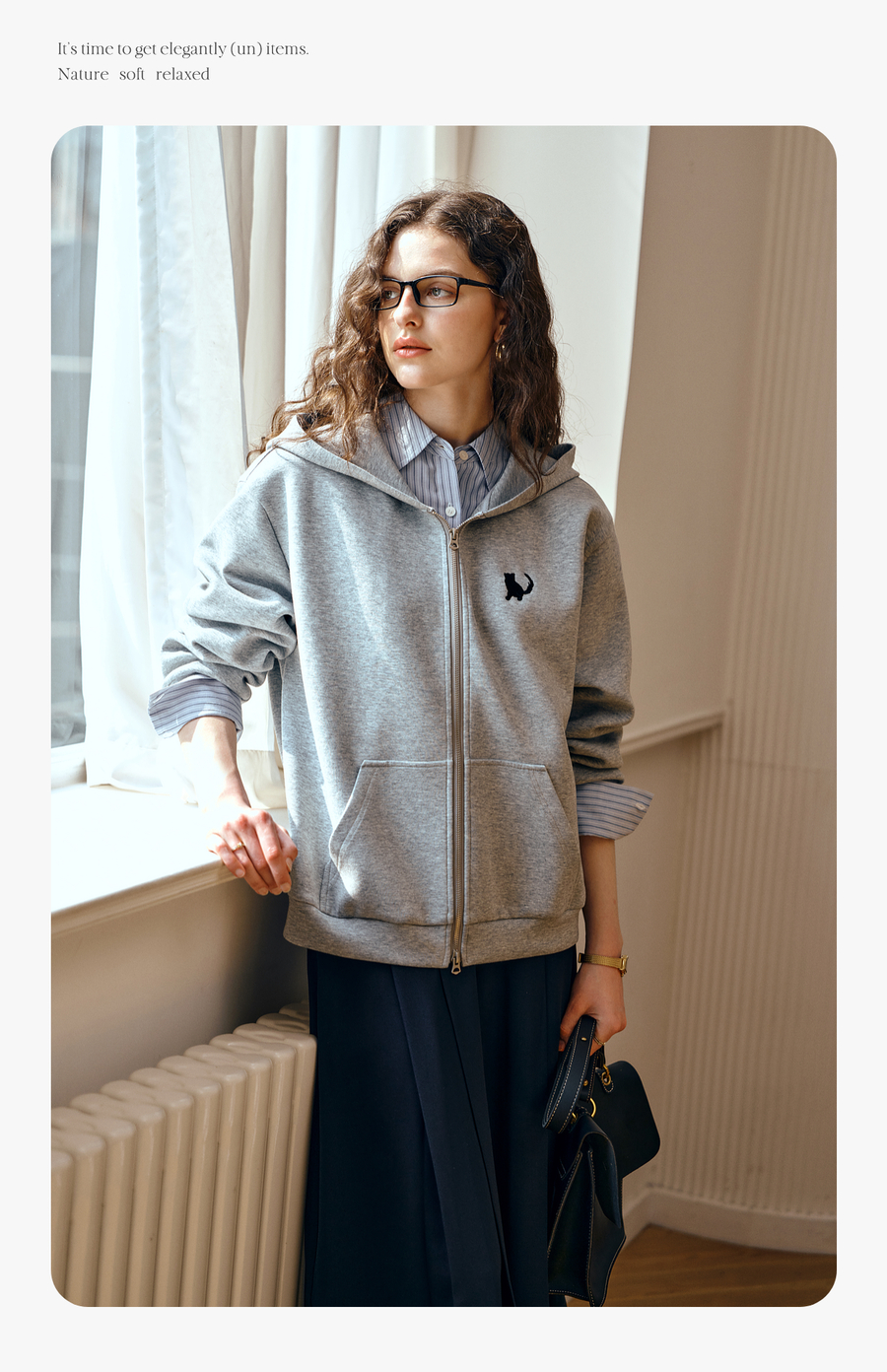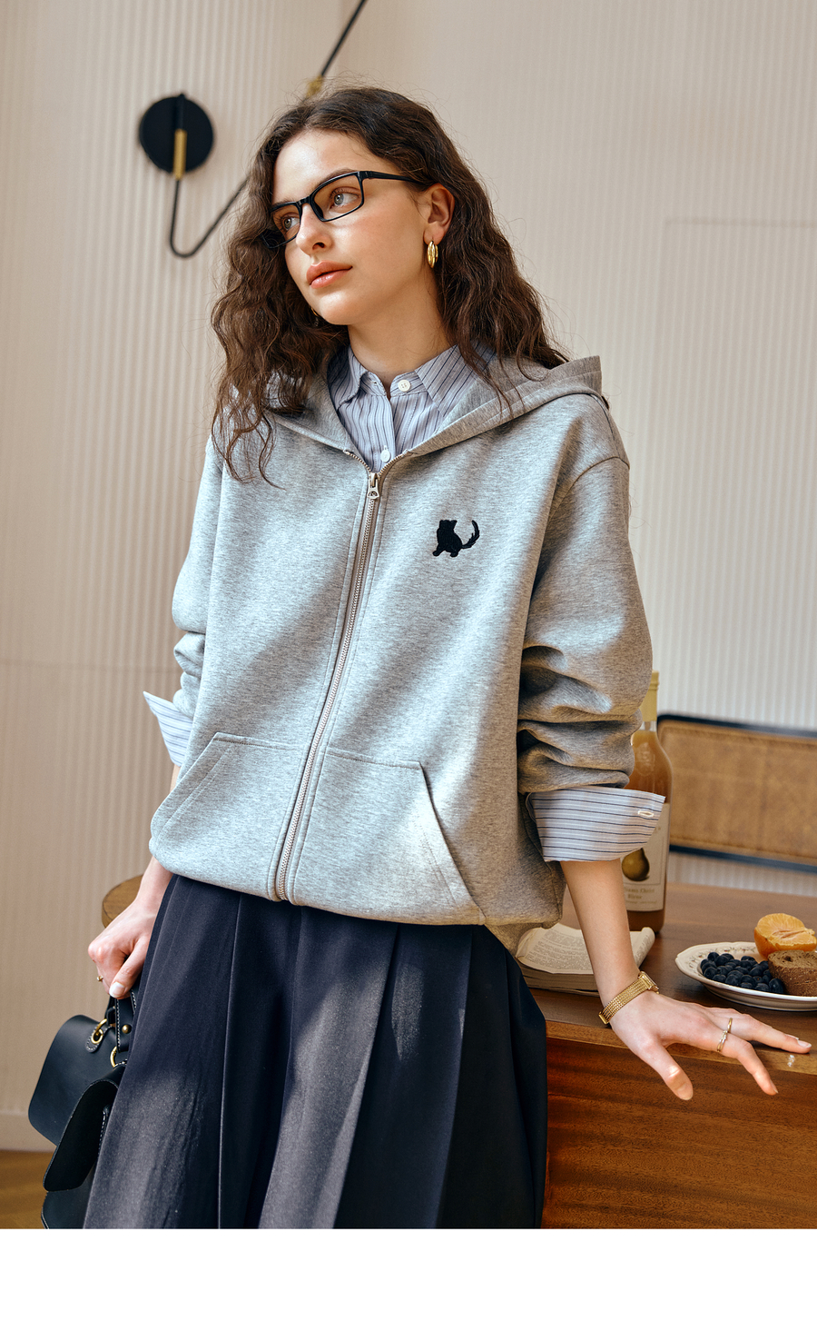 OLrain欧芮儿灰色休闲连帽猫咪刺绣显瘦卫衣外套女秋季2025新款