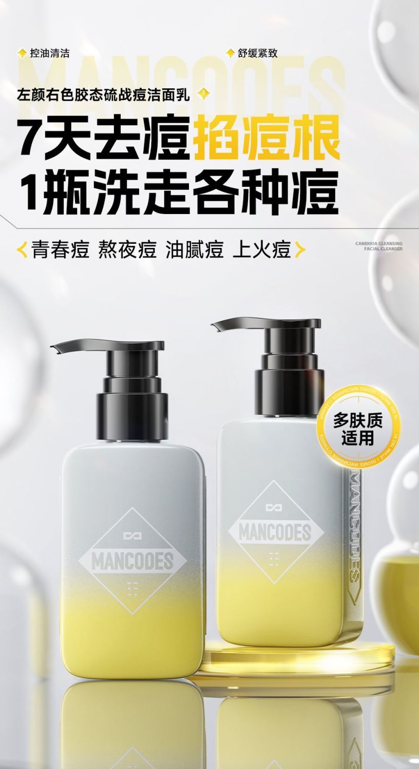 💥买即送‼冰川水💥秒杀‼【到手¥33.3/瓶】左颜右色 微酸祛痘洗面奶150g+微酸洗发水400g+鎏金沐浴露400g 适合油痘肌 沐浴留香