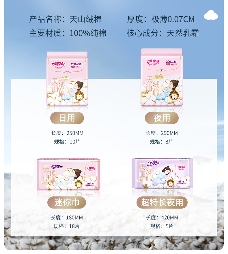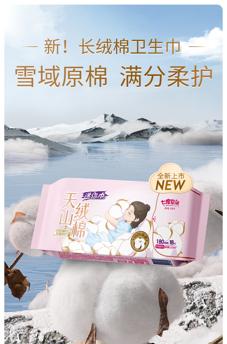 七度空间天山绒棉少女极薄180迷你卫生巾18片