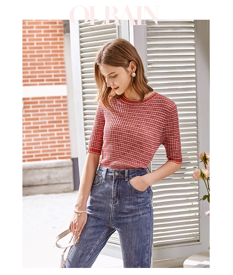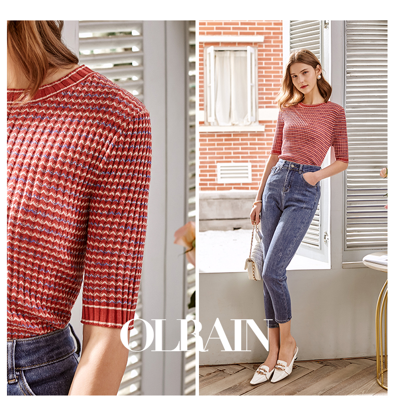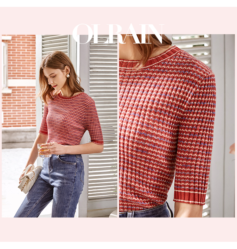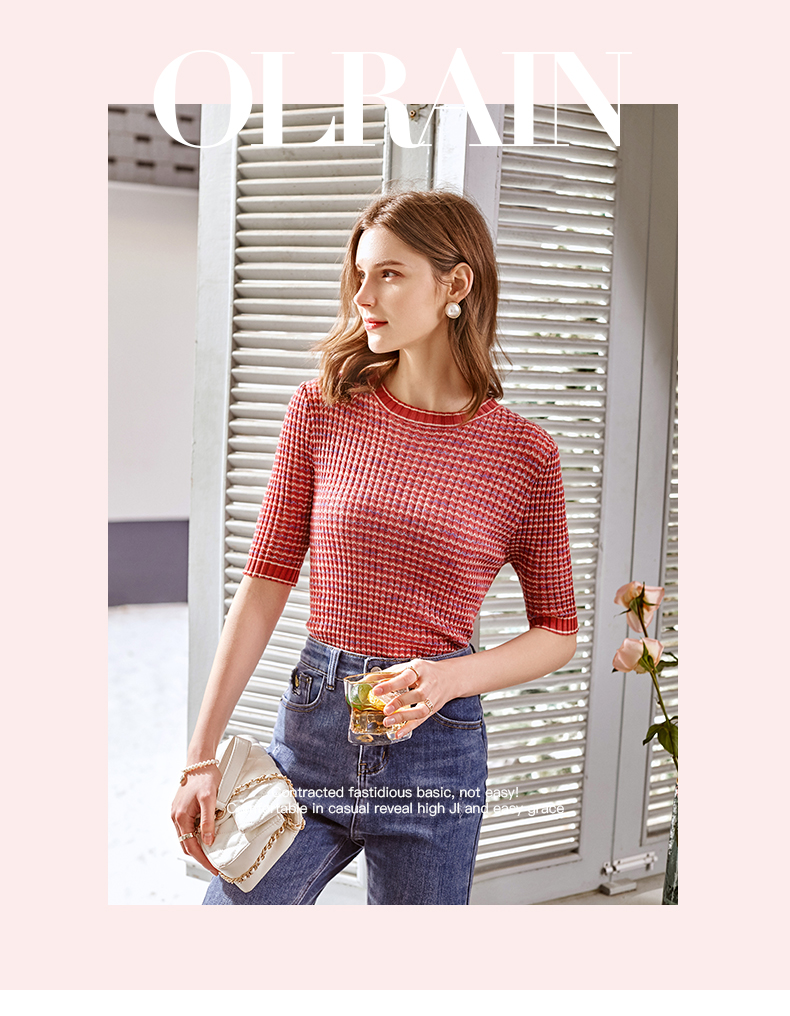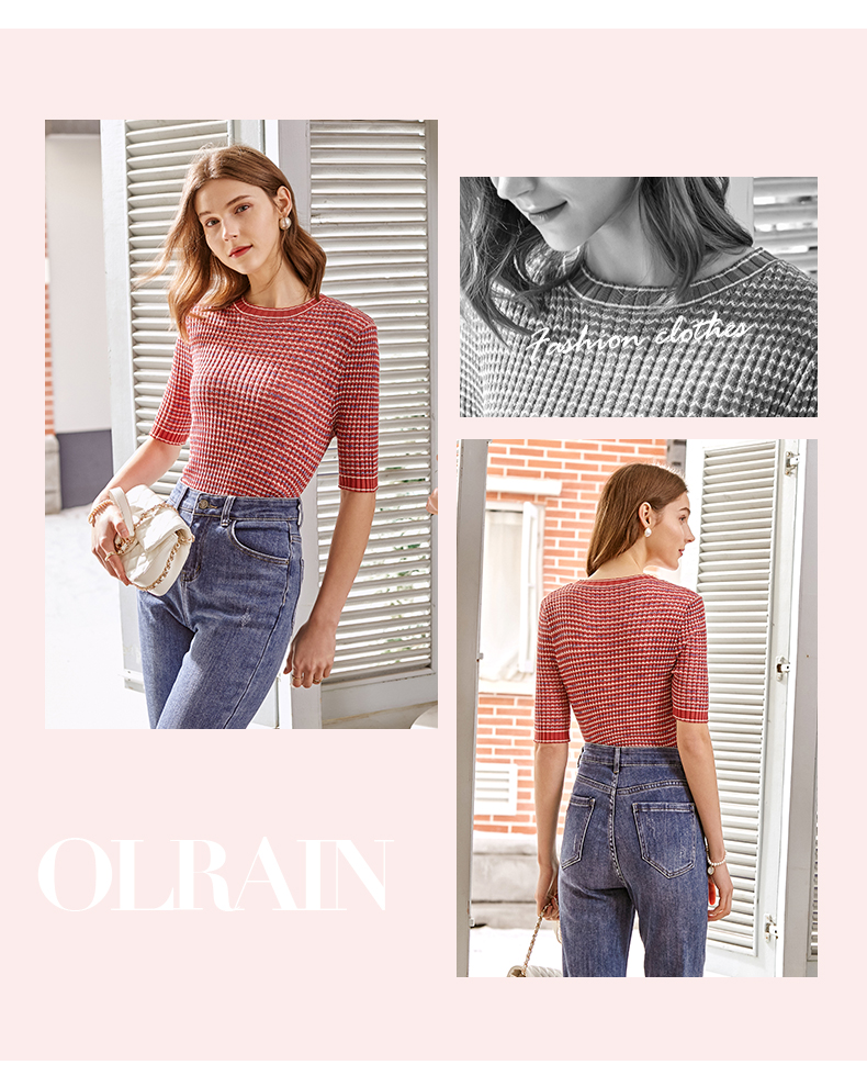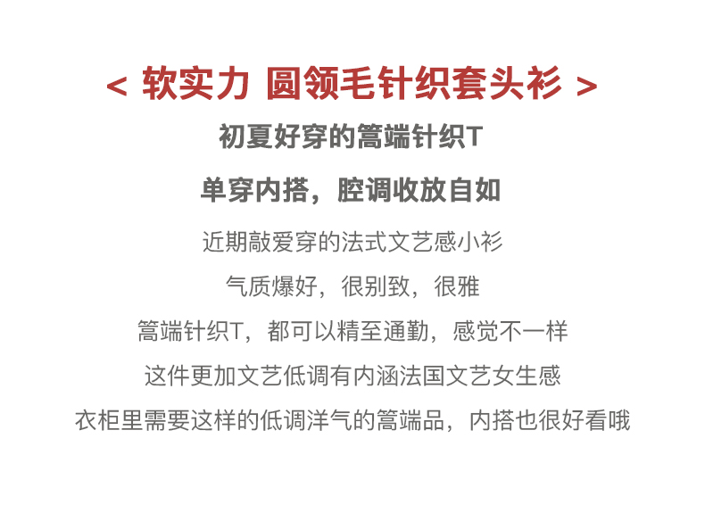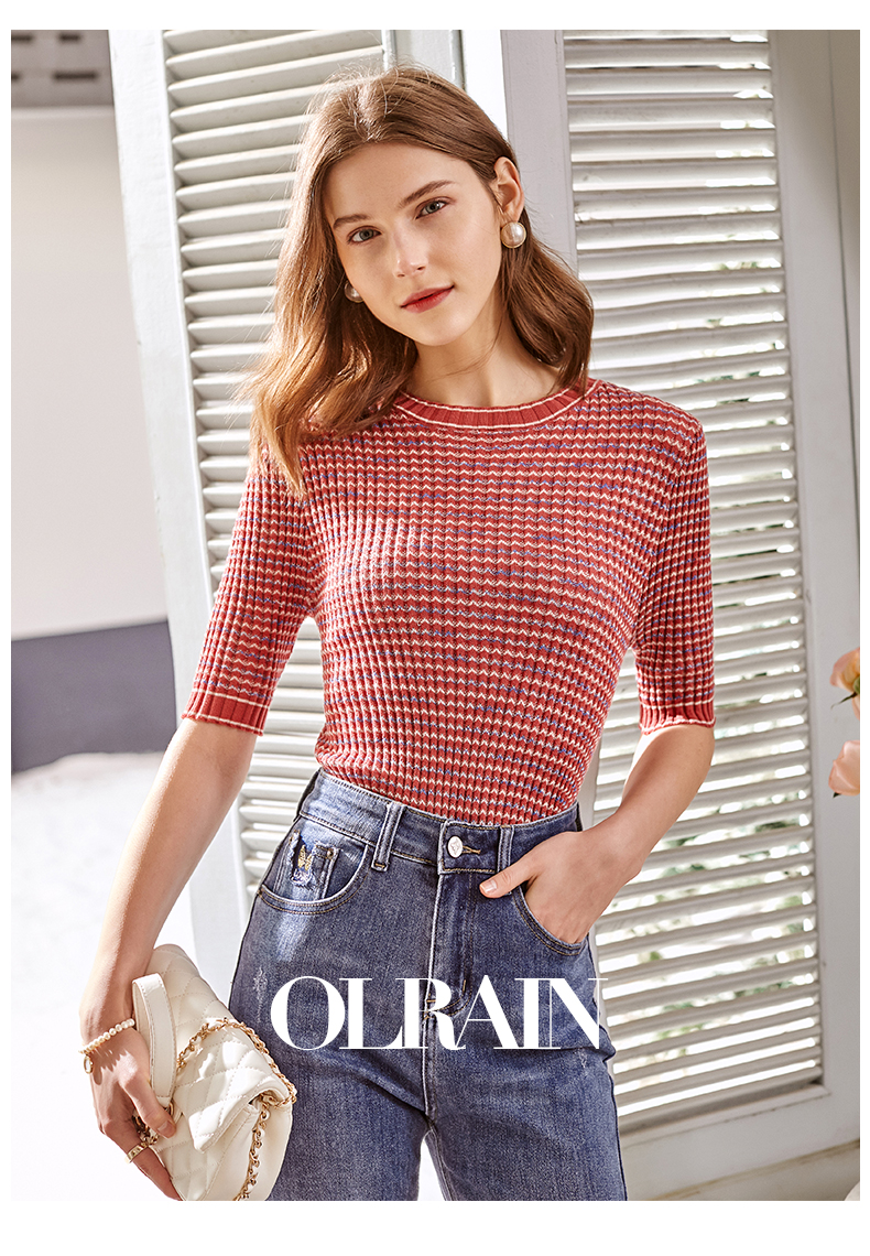 欧芮儿圆领毛针织衫女2021春款修身显瘦气质优雅法式文艺感上衣