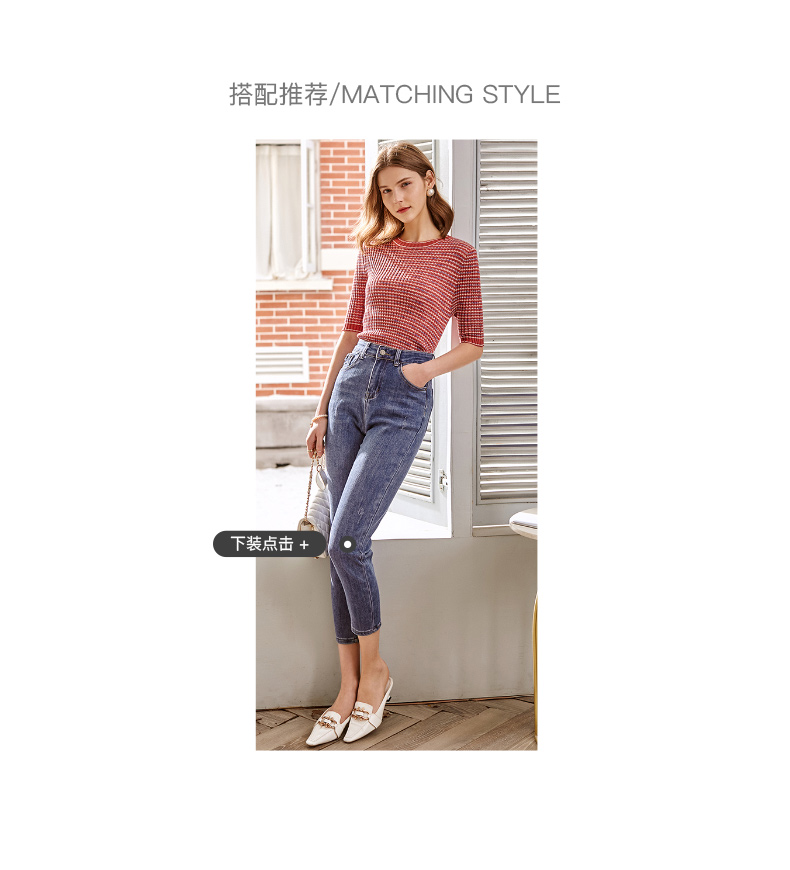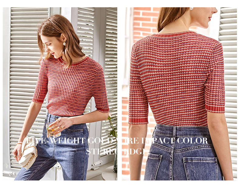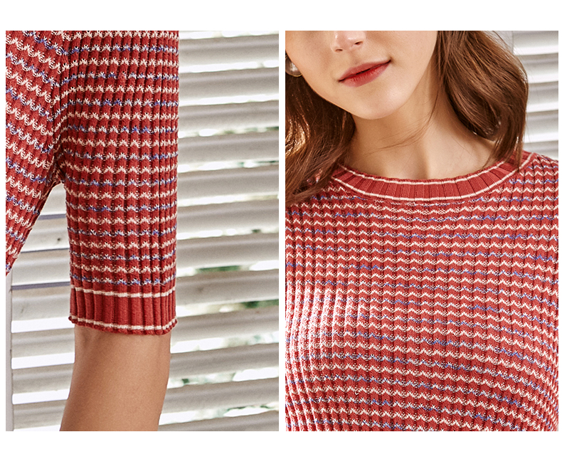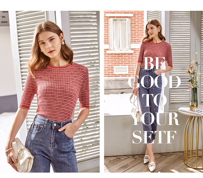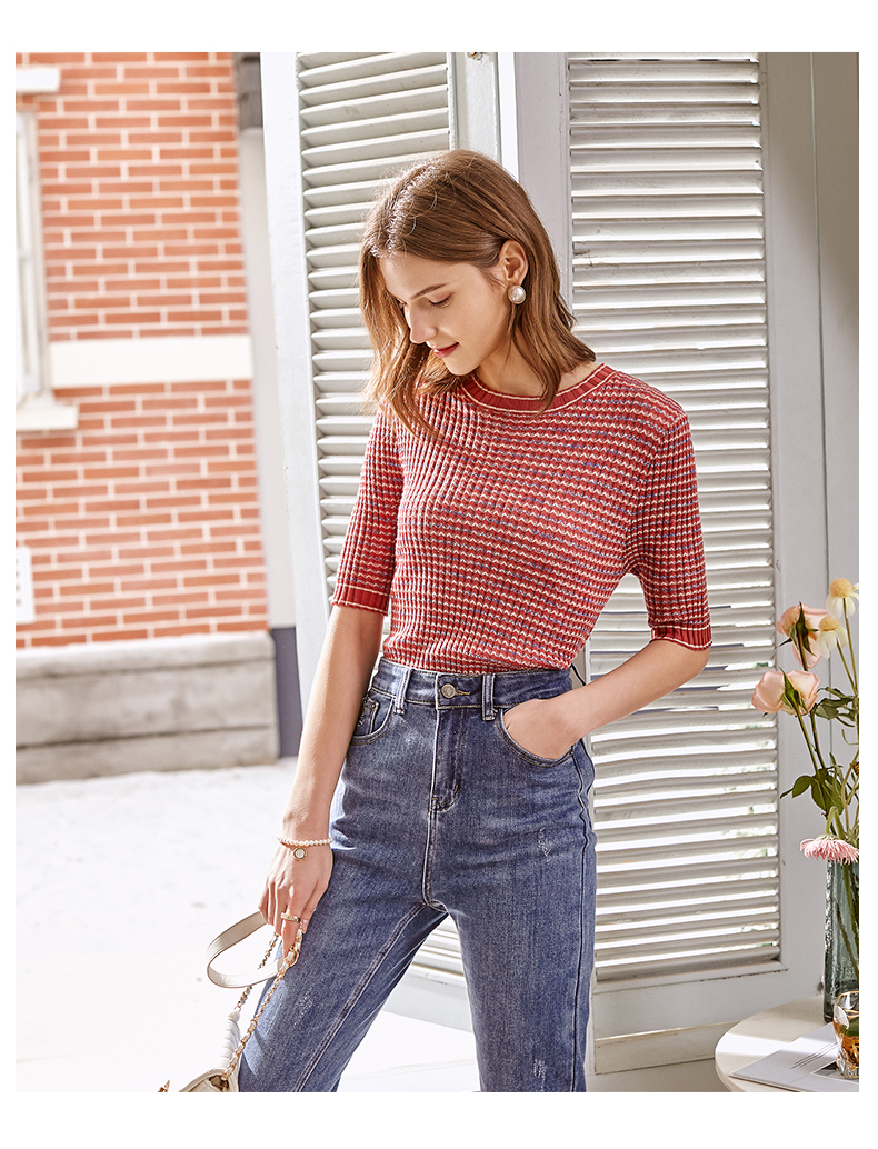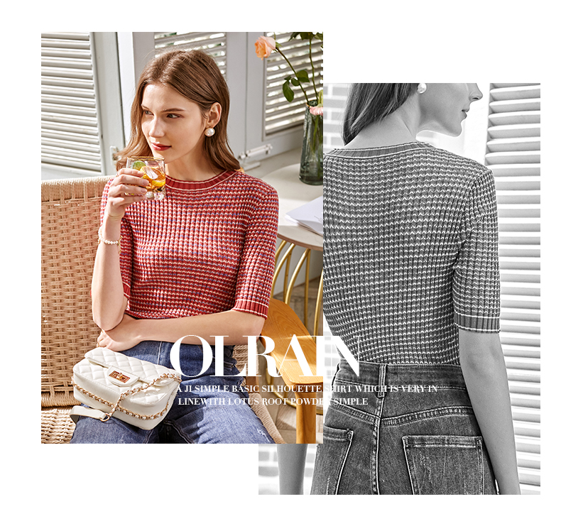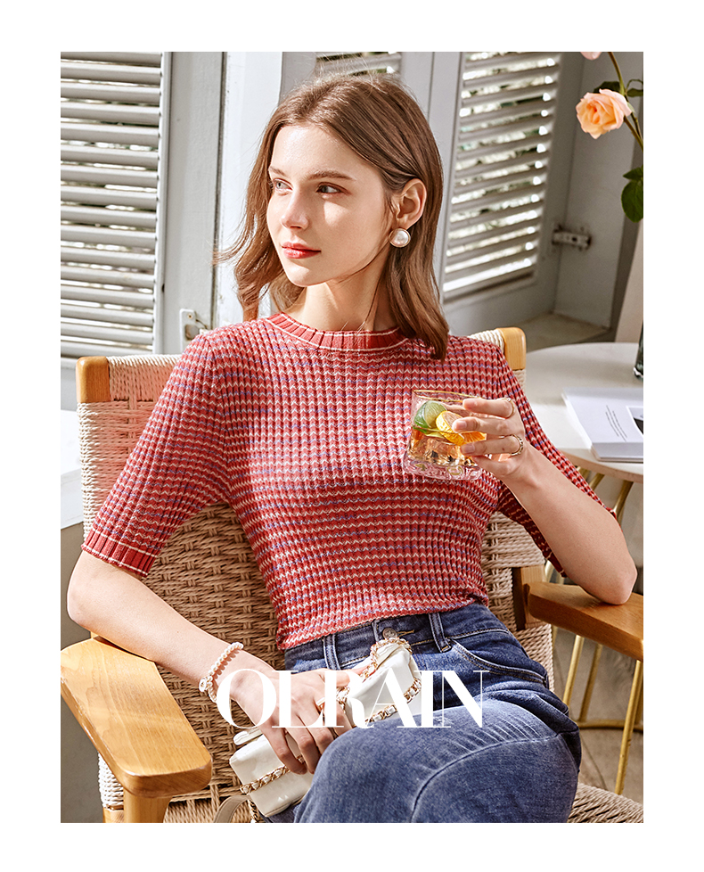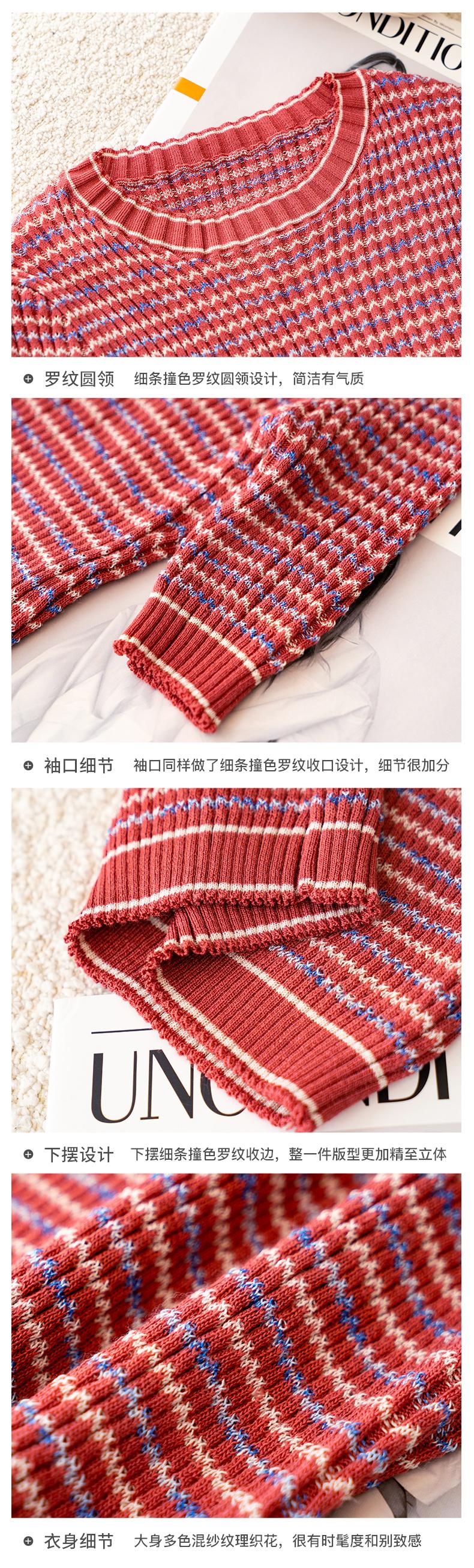 欧芮儿圆领毛针织衫女2021春款修身显瘦气质优雅法式文艺感上衣
