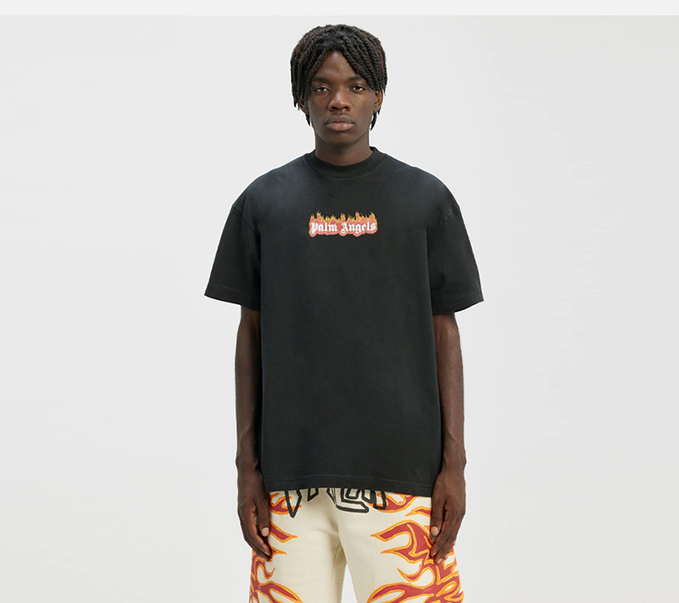 PALM ANGELS 棕榈天使 男士棉质燃烧标志印花圆领短袖T恤 黑色 PMAA072F22JER004 1001